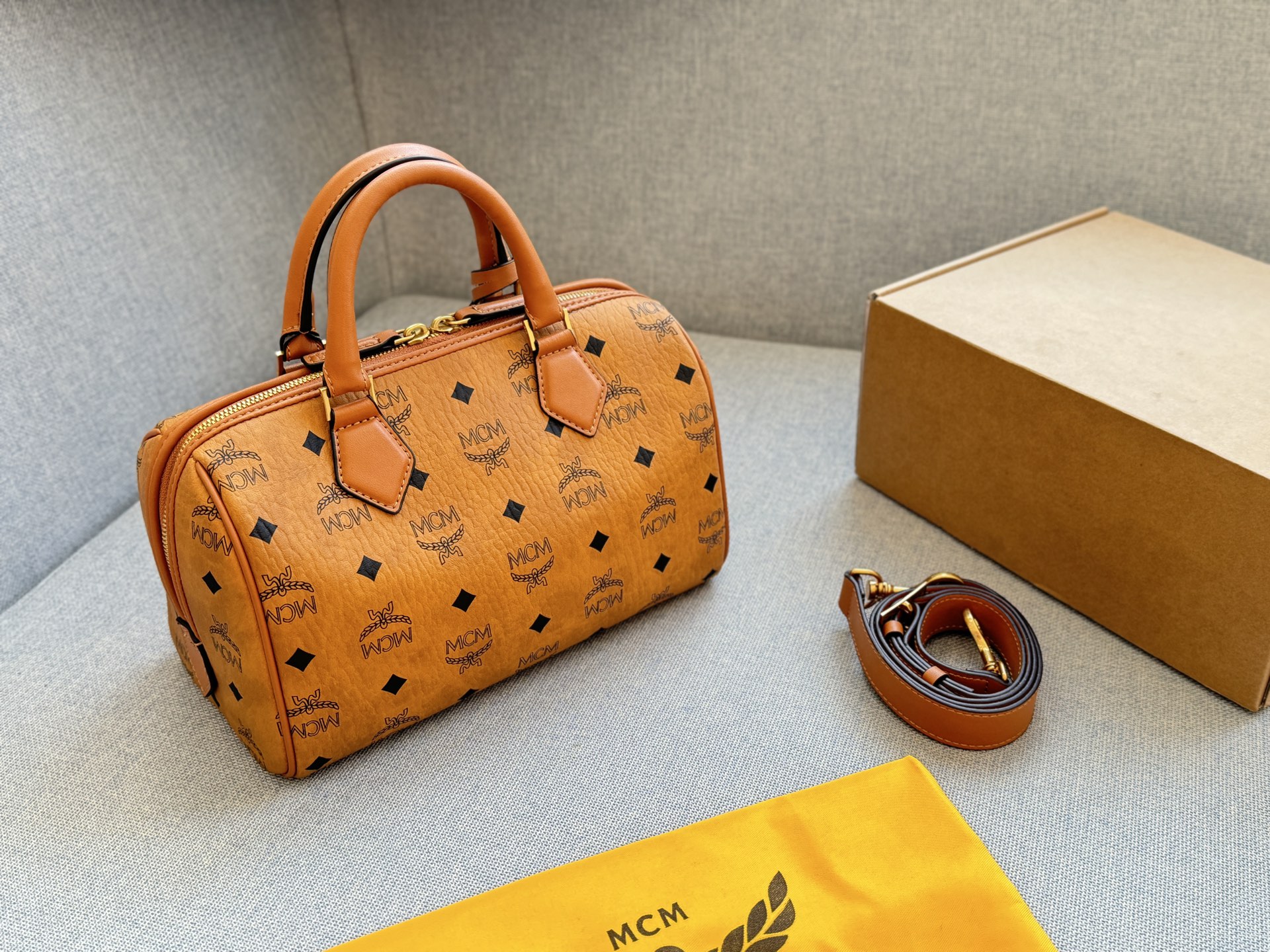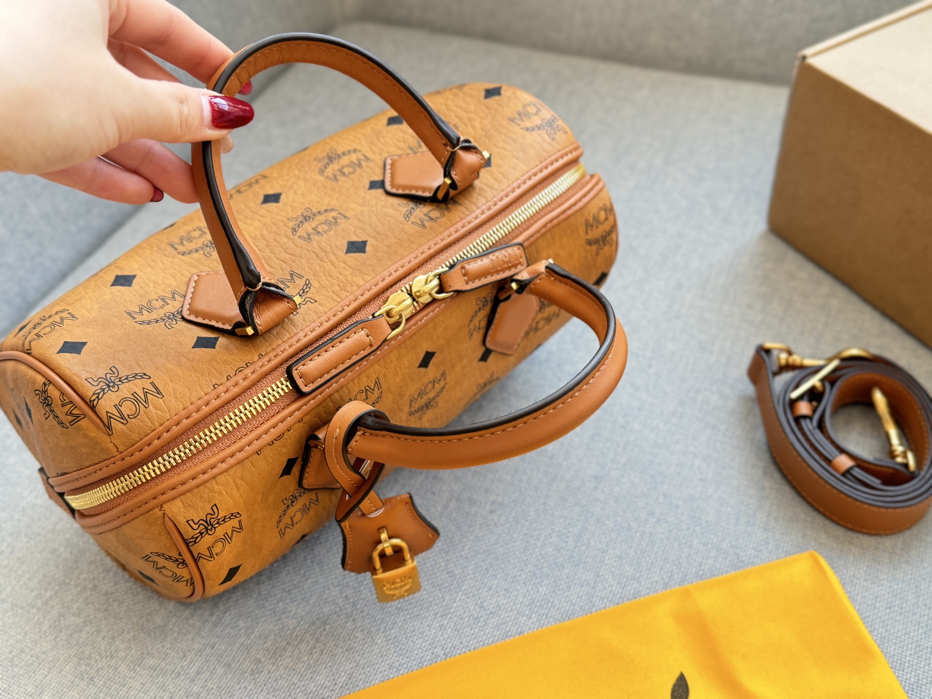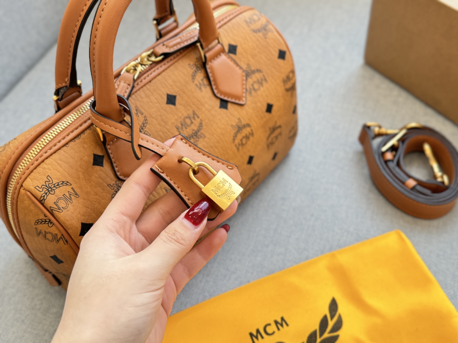 MCM Ella 金锁吊坠 新款 波士顿包单肩斜挎手提包