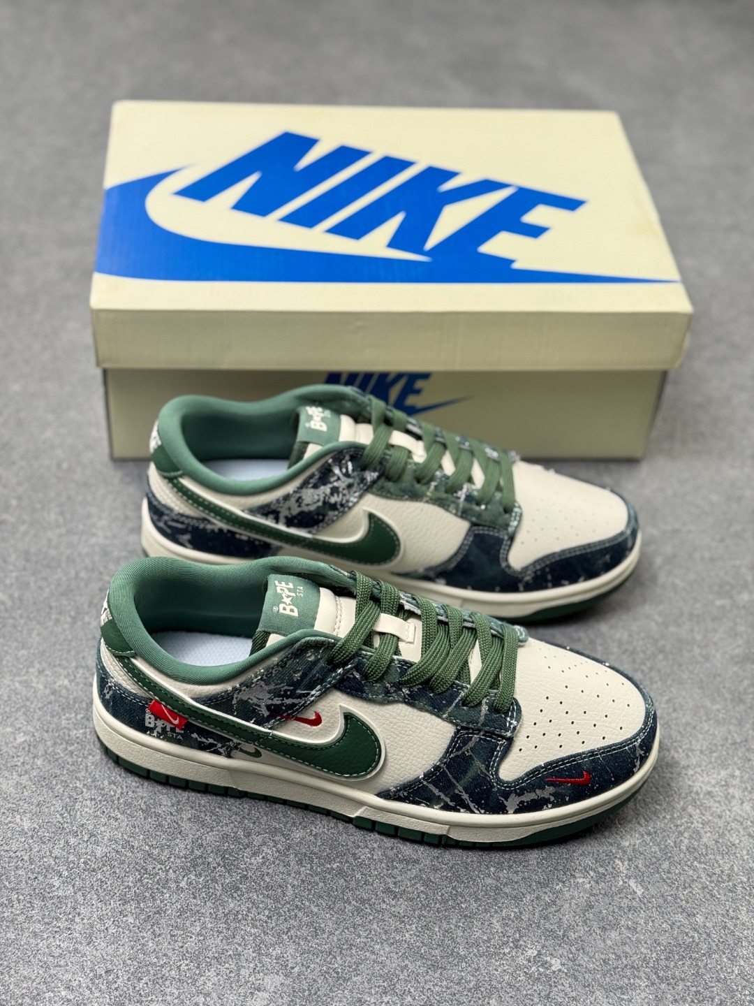 Nike SB Dunk Low BAPE联名 白军绿 周年高端定制 低帮休闲板鞋