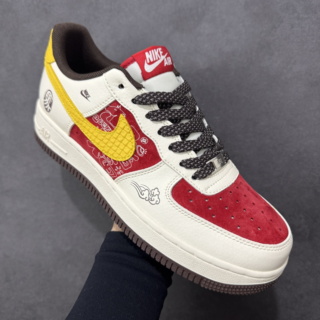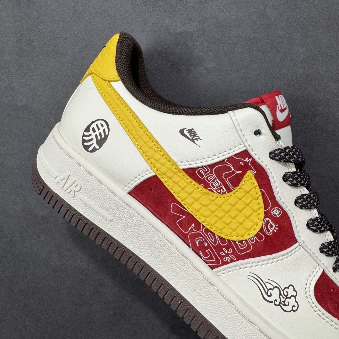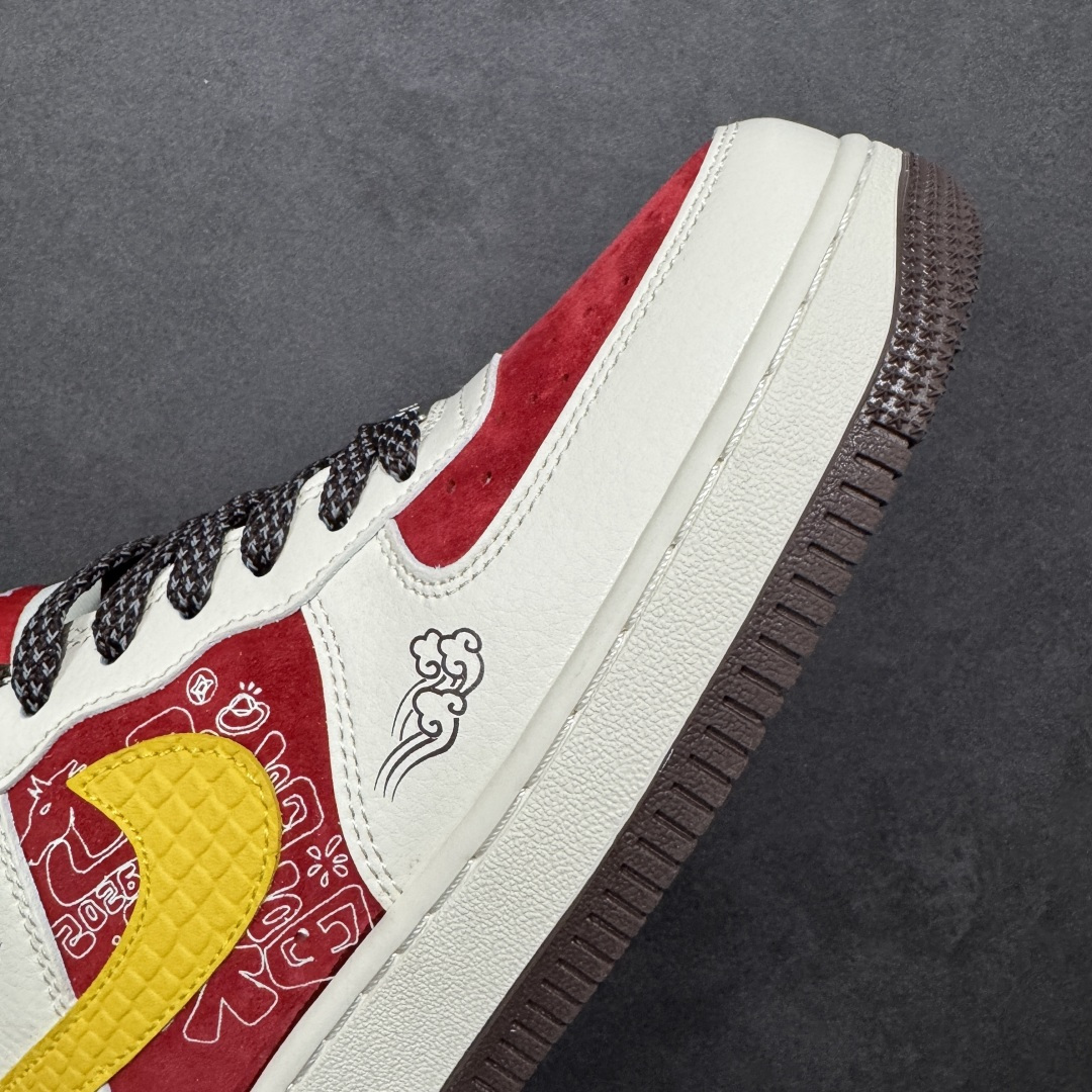 定制版 马年专属AF1太戳心了 红白黄撞色搭配祥云纹样 鞋身的 马 字标识直接点明生肖主题 国风与潮流完美融合 经典气垫中底保证行走舒适度 头层皮料触感细腻 每一处缝线都透着精致 不管是日常穿搭还是新年送礼 都是吸睛又有意义的选择