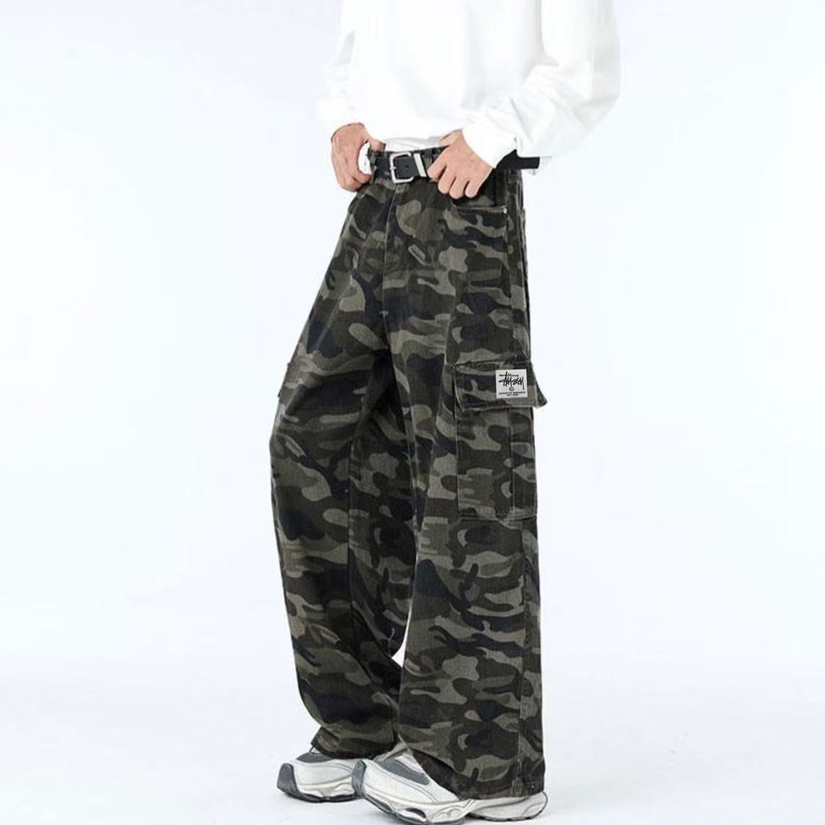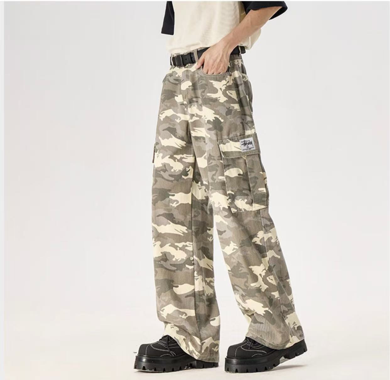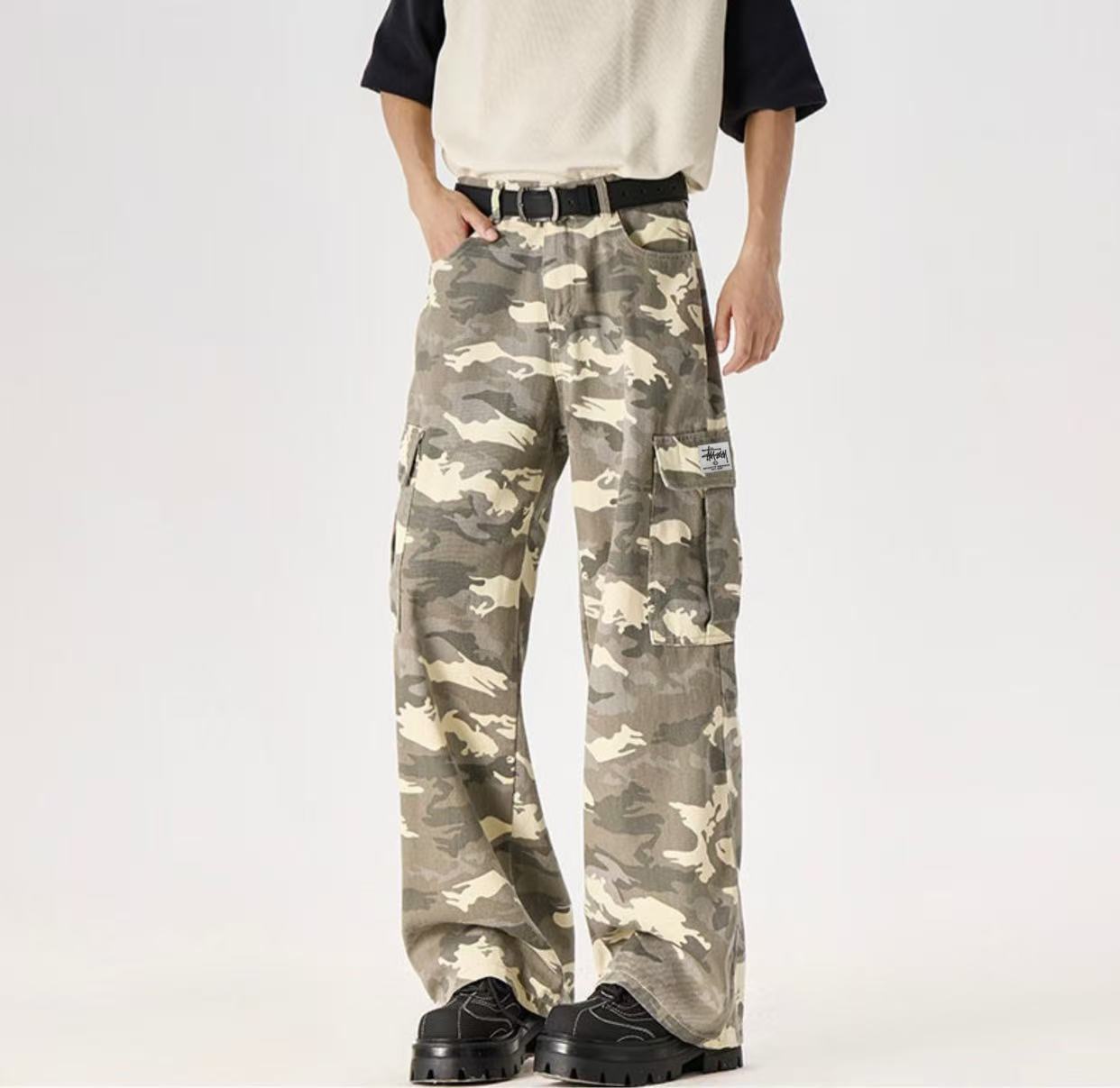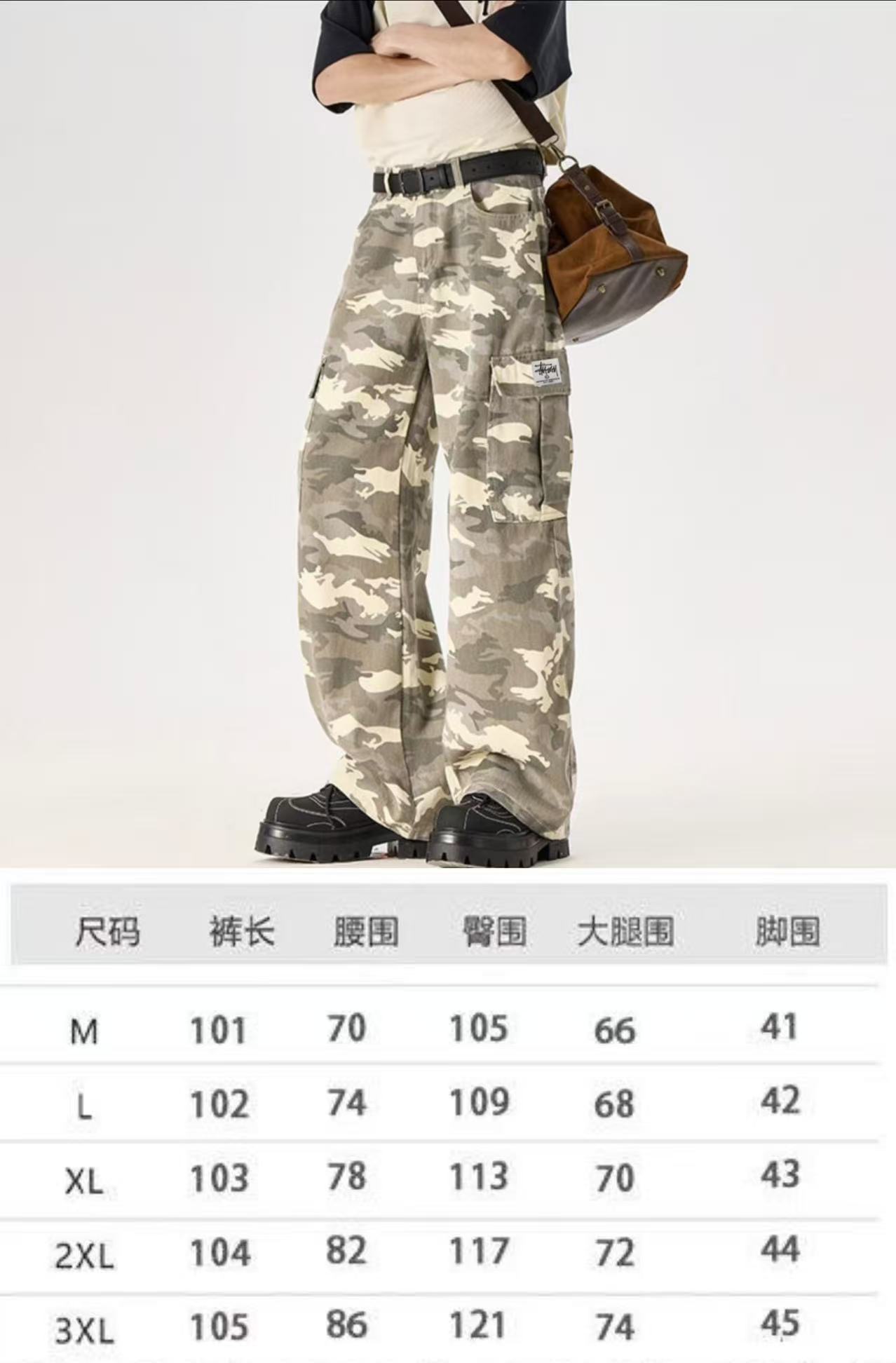 斯图西经典迷彩系列 裤型两侧工装大口袋设计 袋口斯图西刺绣贴标设计 ins 小红书 各大网红上身款 店主强烈推荐 美式宽松版型 上身效果非常酷 男生女生都可以穿