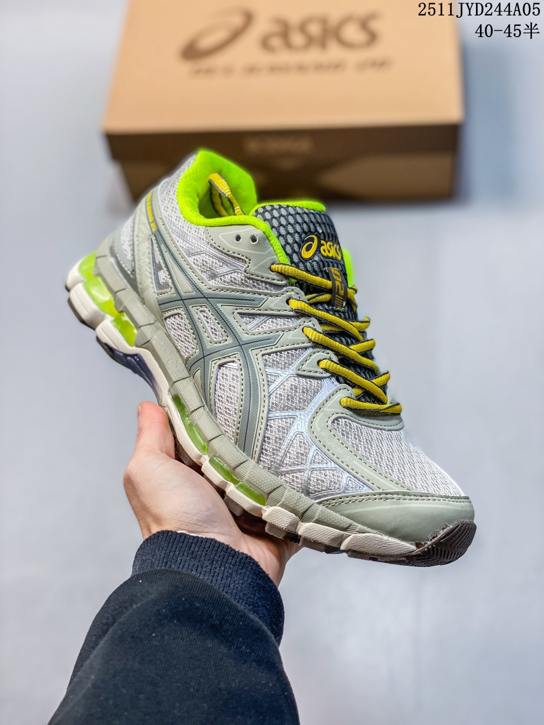Asics Gel Kayano 20 亚瑟士运动休闲透气专业跑鞋 采用工程弹性双层再生针织密度鞋面材质 后跟3D可视GEL缓震乳胶物料 升级FF BLAST PLUS全新缓震中底部位科技材质 外置高耐磨橡胶外底 稳步升级 跑出节奏 11JYD244A05