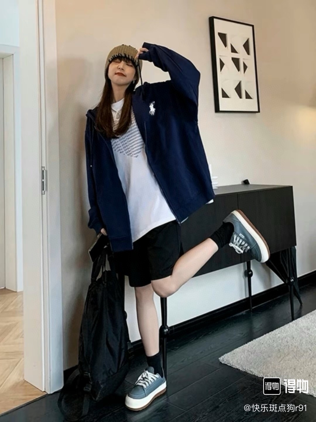 连帽的运动设计 宽松休闲的版型 整体质感非常强 定织定染的螺纹通过图片我们就能感受到它的厚实和质感 做工精致 外贸大厂出货 都是多年的老师傅亲自上手 一切都是高标准 高要求