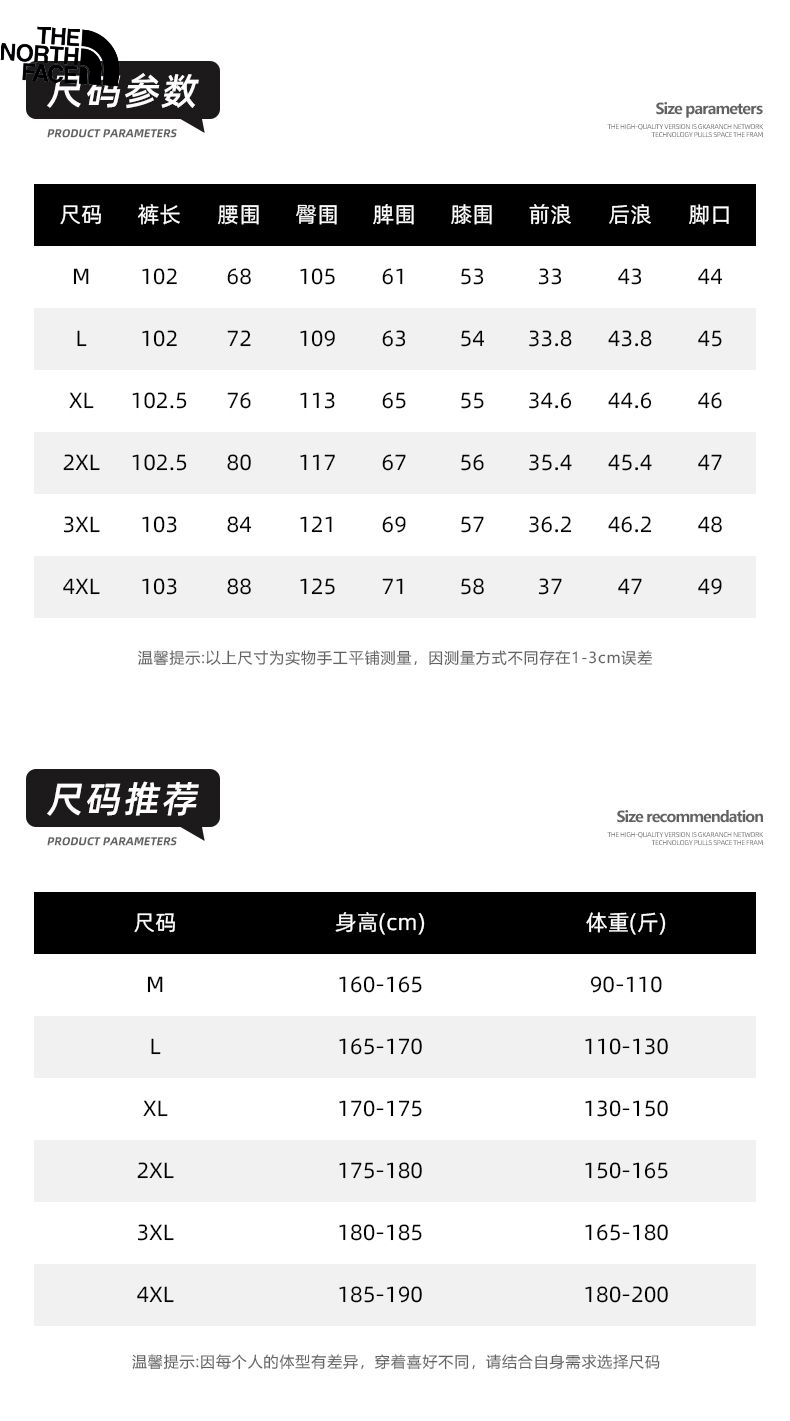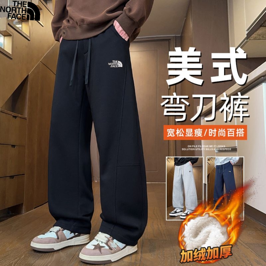 北面The north Face冬季新款 男女同款松紧腰加绒加厚百搭美式弯刀裤 男士加厚休闲裤长裤