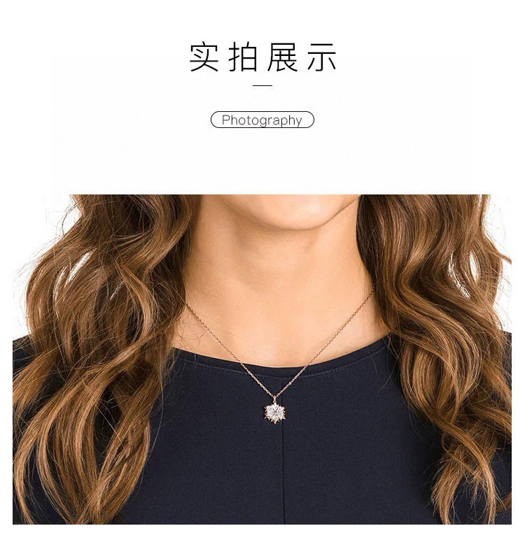 SWAROVSKI施华洛世奇雪花钻石项链 配全套包装 款409 施华洛世奇原厂订单 深圳出口港货 仅此一批 礼物准备好了吗 送女友 简约浪漫的设计 一年四季都可以戴 设计简单不复杂 取一点不失单调 雪花造型设计为炎炎夏日增添了一丝凉意 精致雪花栩栩如生 阳光下blingbling闪 独一无二的雪花 独一无二的美感 绝世美颜 在一波来袭 颜值爆棚 象征优雅及高贵是施华洛世奇首饰的标志 自信 幸运并象征着一心一意 代表珍贵而永恒的爱情 这款时尚迷人的项链 以施华洛世奇的切割面的设计为特色 并将雪花造型提升至另一层次 令人想起菱形在立体饰框两面分别密镶精致闪亮钻石透明仿水晶 富现代感与线条美之余 又与其他首饰巧妙配衬 随附一条饰链 带上它尽显风情 让你在每个场合更添优雅 链长 45CM可调节 颜色 玫瑰金 银色 材质 V金 仿水晶钻石 多种金属润饰