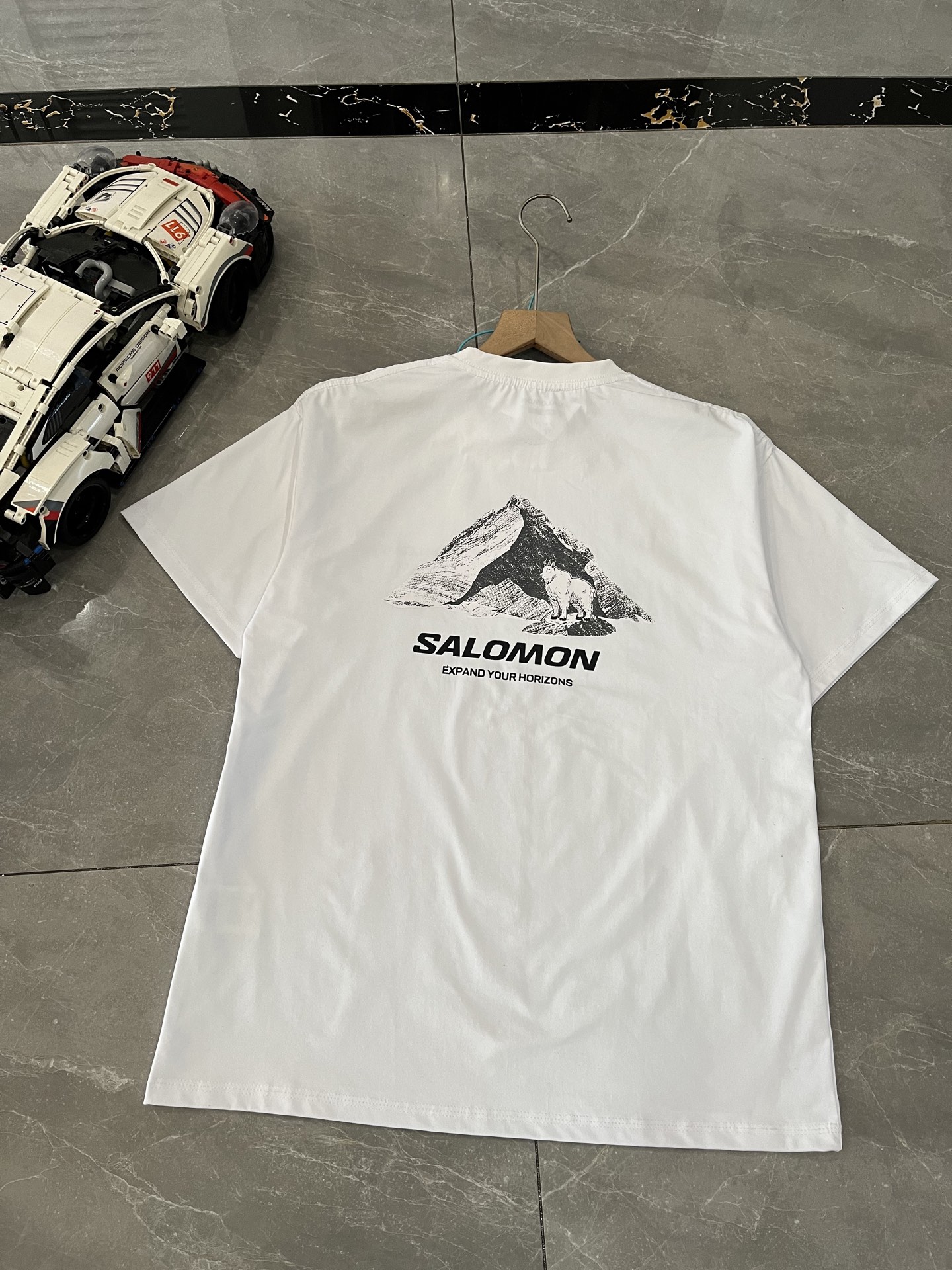 萨洛蒙户外风格短袖 整体设计简洁有力 后背大面积品牌LOGO字母印花 视觉冲击感强 搭配标志性标语元素 辨识度极高 上身自带户外机能氛围