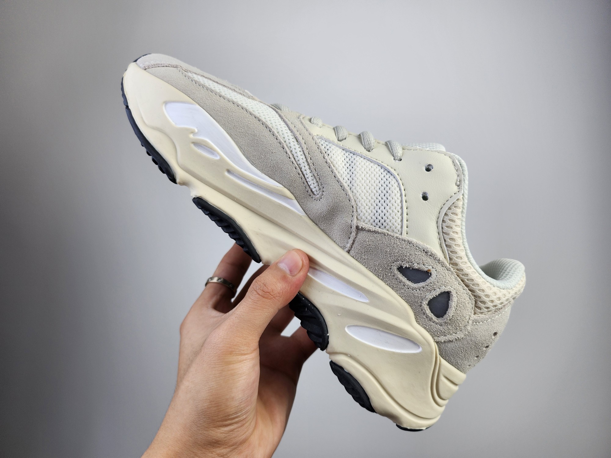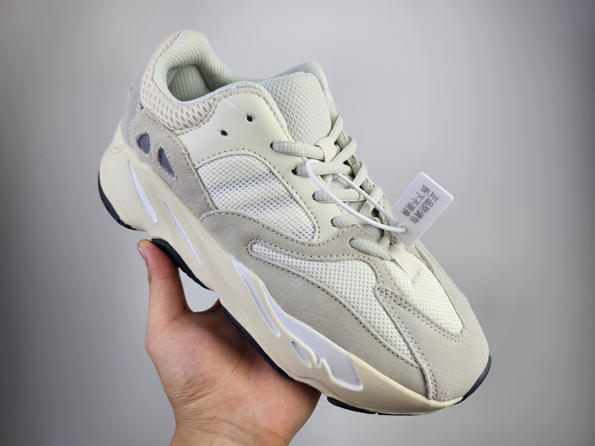 特价真爆 阿迪达斯 Adidas Yeezy Boost 3M反光条身 椰子700 侃爷椰子复古休闲运动老爹鞋 米白 采用麂皮 皮革 网布三种材质组成 鞋面置有反光元素 鞋身非常纯粹 轮廓十分复古优雅 YEEZY BOOST 700的鞋底厚度提升了不少 因为中底藏有全掌Boost科技加持 提供了舒适的脚感 Size 36 40