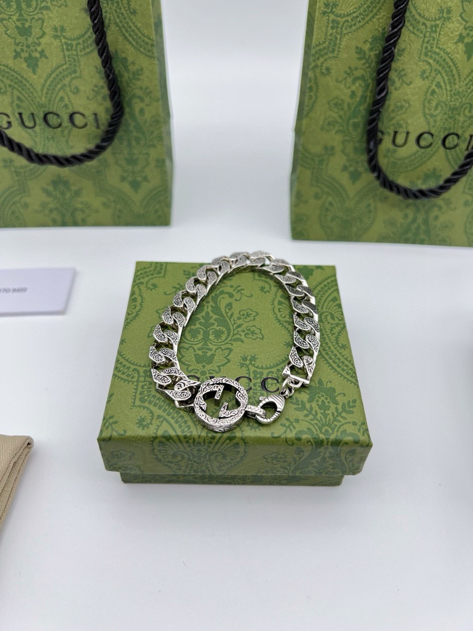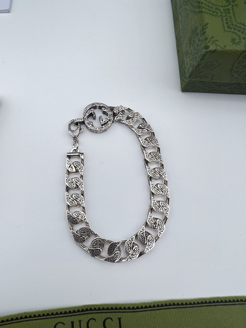 85244378 - Gucci古驰互扣双G花纹手链 泰银版本 肖战同款 别具一格 447046