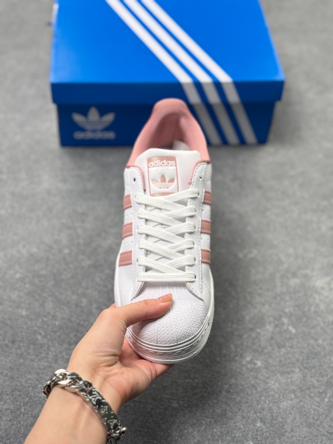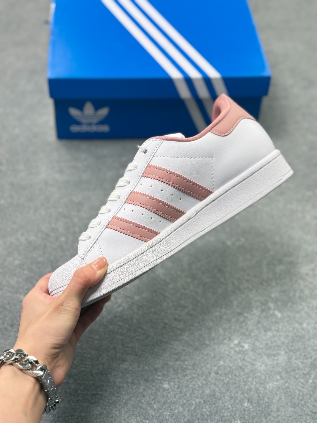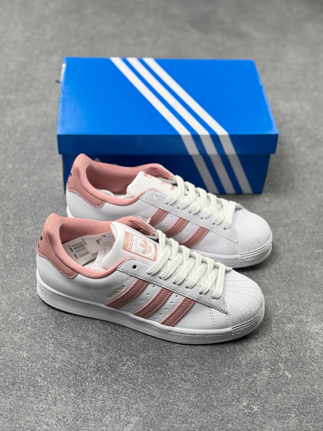 采用软质纤维牛剖革鞋面材质 2020改良全包围鞋垫 正确2020版鞋底模具及扇贝头盖片DD阿迪达斯 三叶草Adidas Originals Superstar 经典贝壳头系列低帮百搭休闲运动板鞋 皮革白草莓淡粉 GY5987 尺码 36 36⅔ 37⅓ 38 38⅔ 39⅓ 40 x41