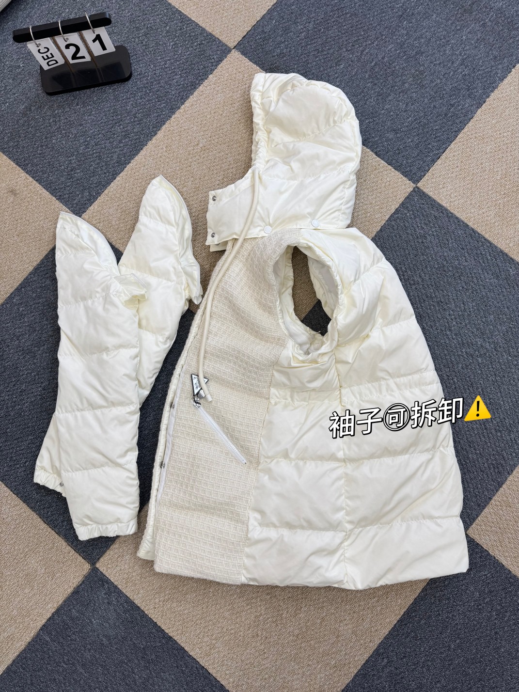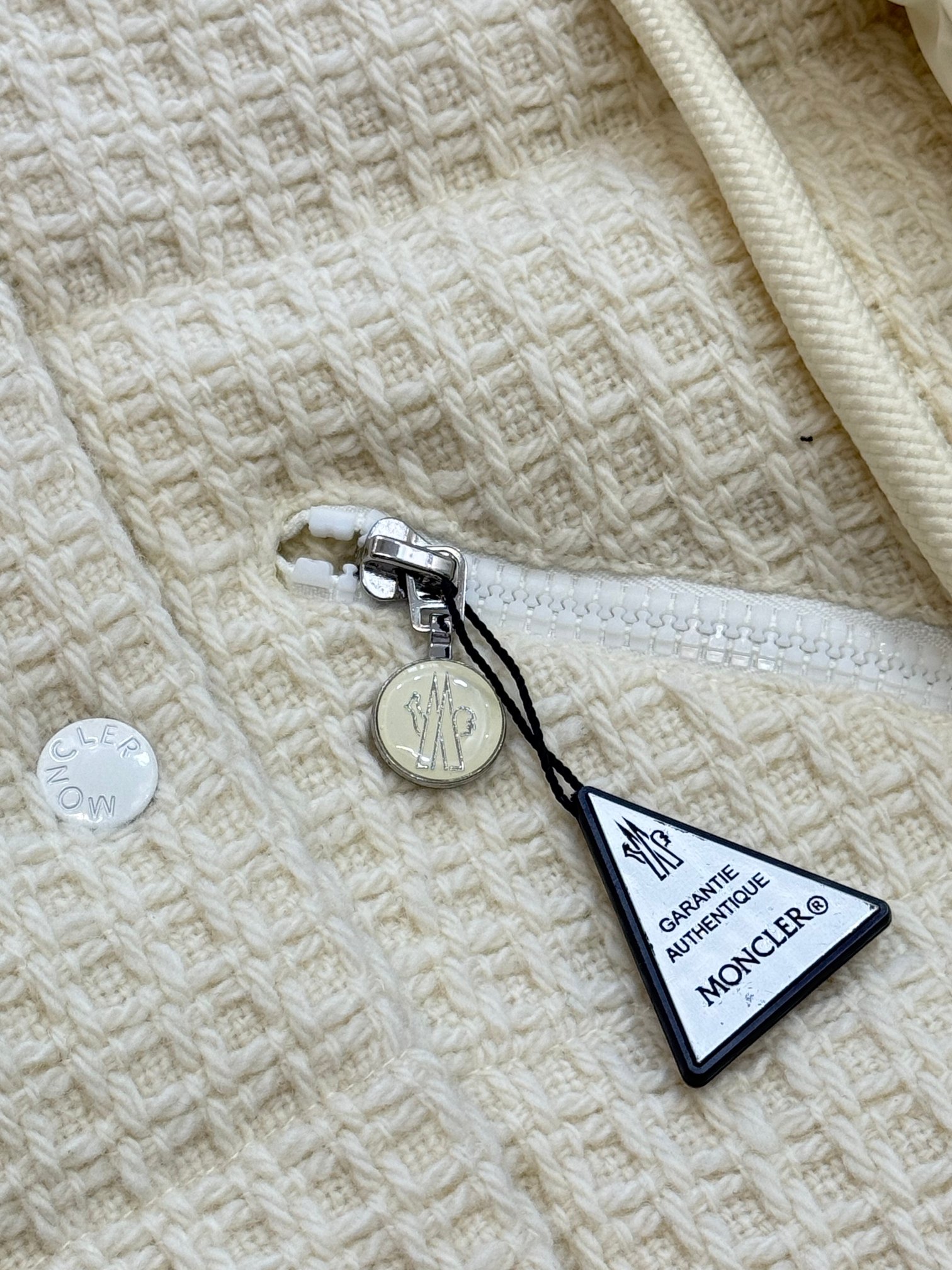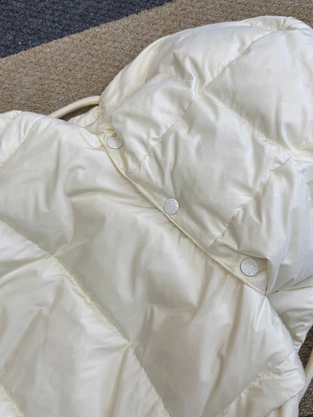 高端货 Moncler 蒙口女士拼接羊毛收腰中长款羽绒服 外贸公司订单货 区别市场货 拼接针织部位100全羊毛成分 帽子 袖口可脱卸 90白鹅绒 充绒量152克 水洗标内带防伪码 颜色 米白色 尺码0 1 2 3