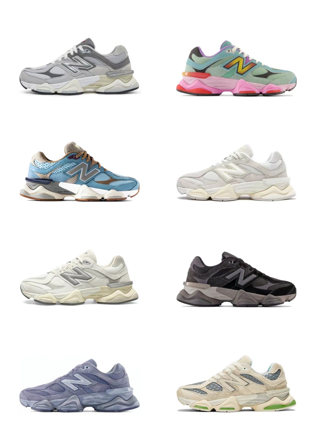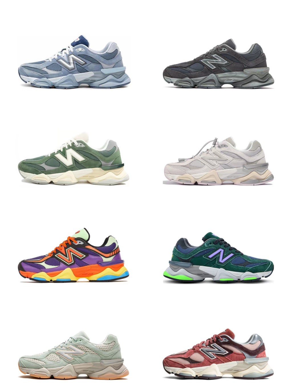 男女鞋真标半码制 采用牛剖革组合网织鞋面材质 4层组合底模 中底嵌入ABZORB缓震科技材料及后跟嵌入TPU装饰条稳固 超火的 多巴胺 配色 全新NB新百伦New Balance 9060 Light Blue Green Navy Pink 系列复古百搭老爹风小象蹄休闲运动跑步鞋 浅蓝亮绿深蓝骚粉 U9060NBN