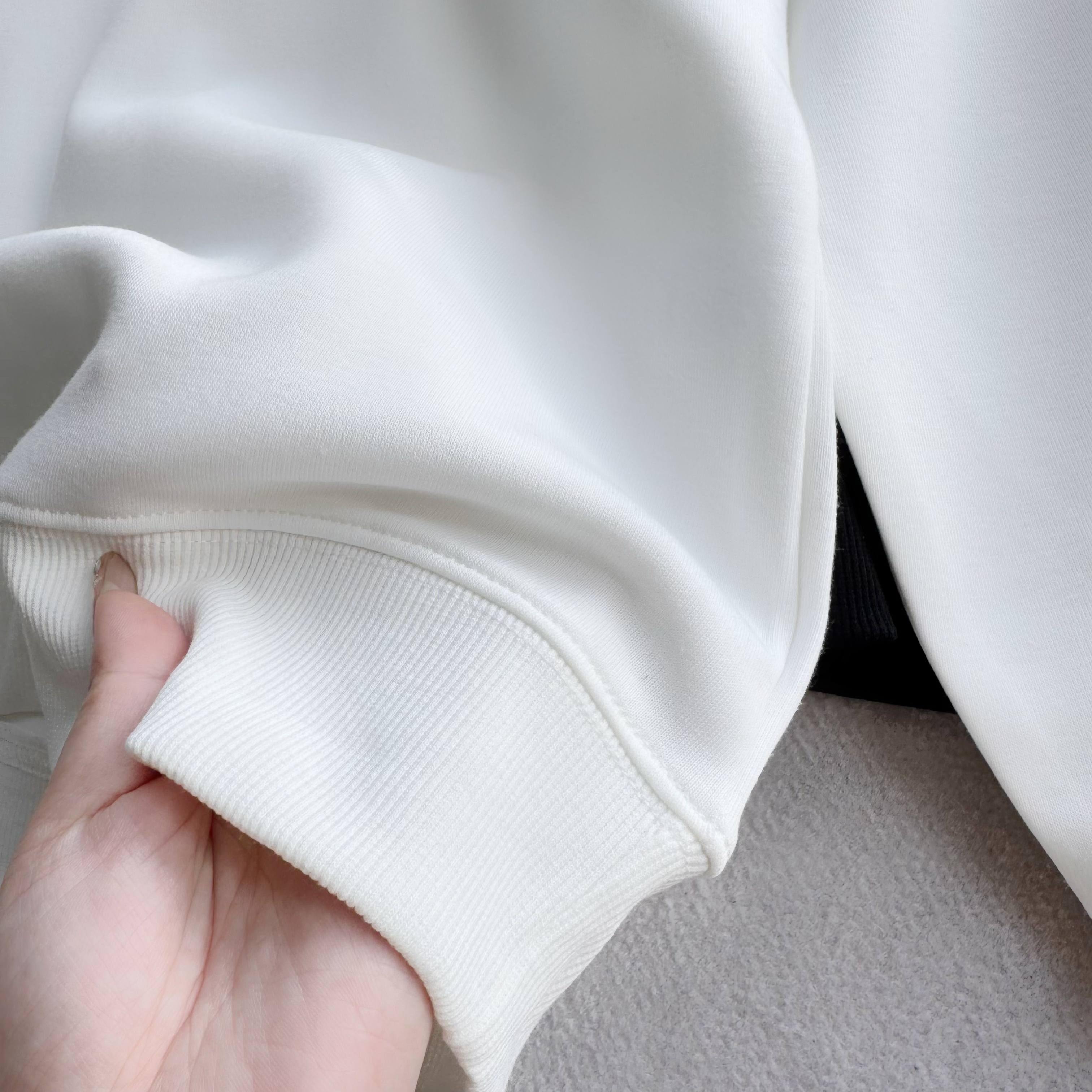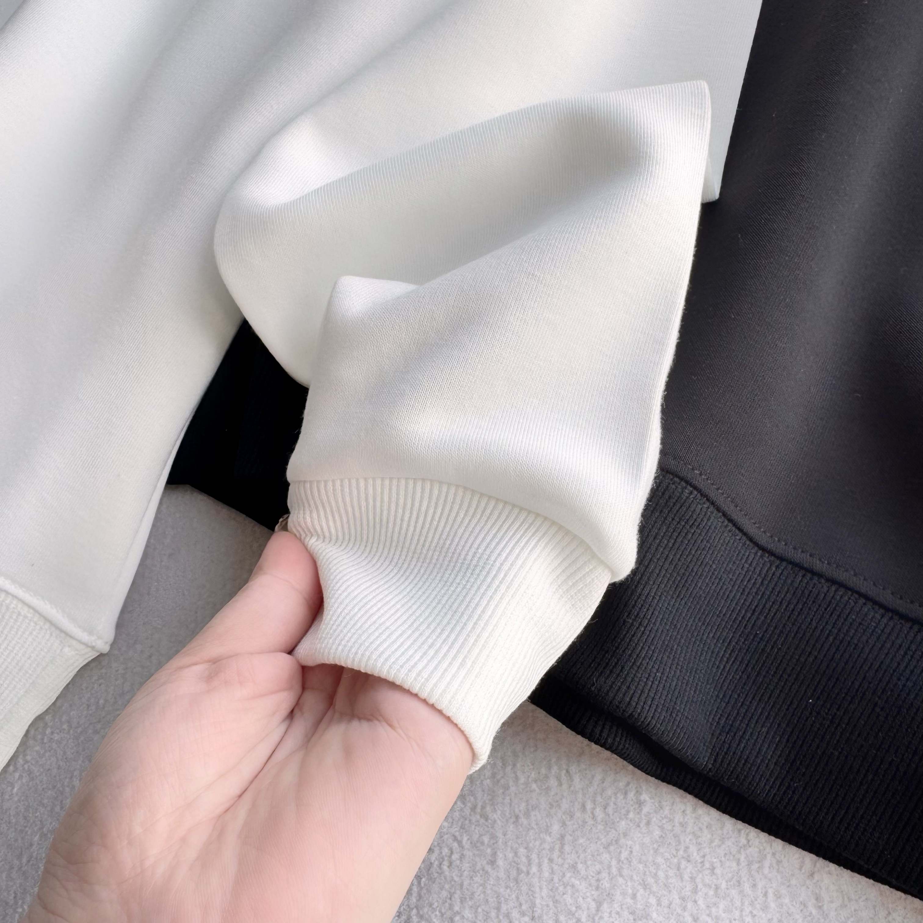 官网同步发售 甄选320g四面弹氧气面料 打造三维立体空间 面料兼具厚度质感与弹性 吸湿透气 穿着贴合不紧绷 舒适有型 领口 袖口 下摆罗纹均采用高密度拼接技术 方便穿脱 舒适升级 宽松版型 基础上配合高端肩部剪裁 勾勒硬朗线条 不失质感格调 领口固形压条 有效保持颈部线条流畅 下摆双排车缝线做工精细 细节精致 提升穿搭质感