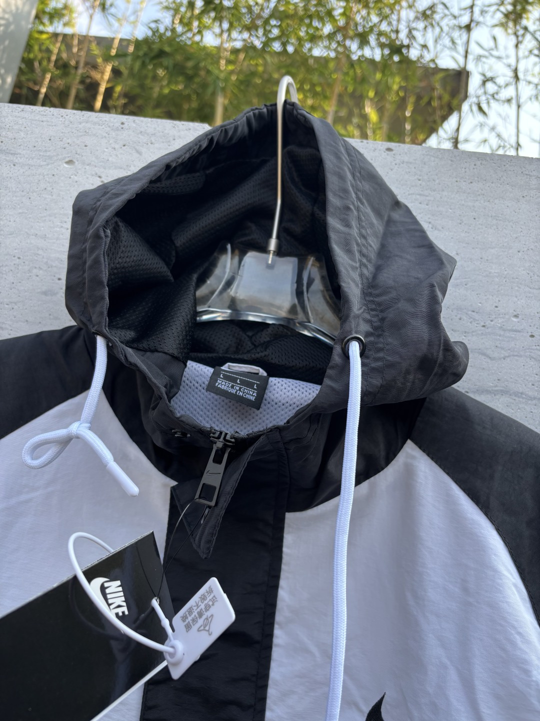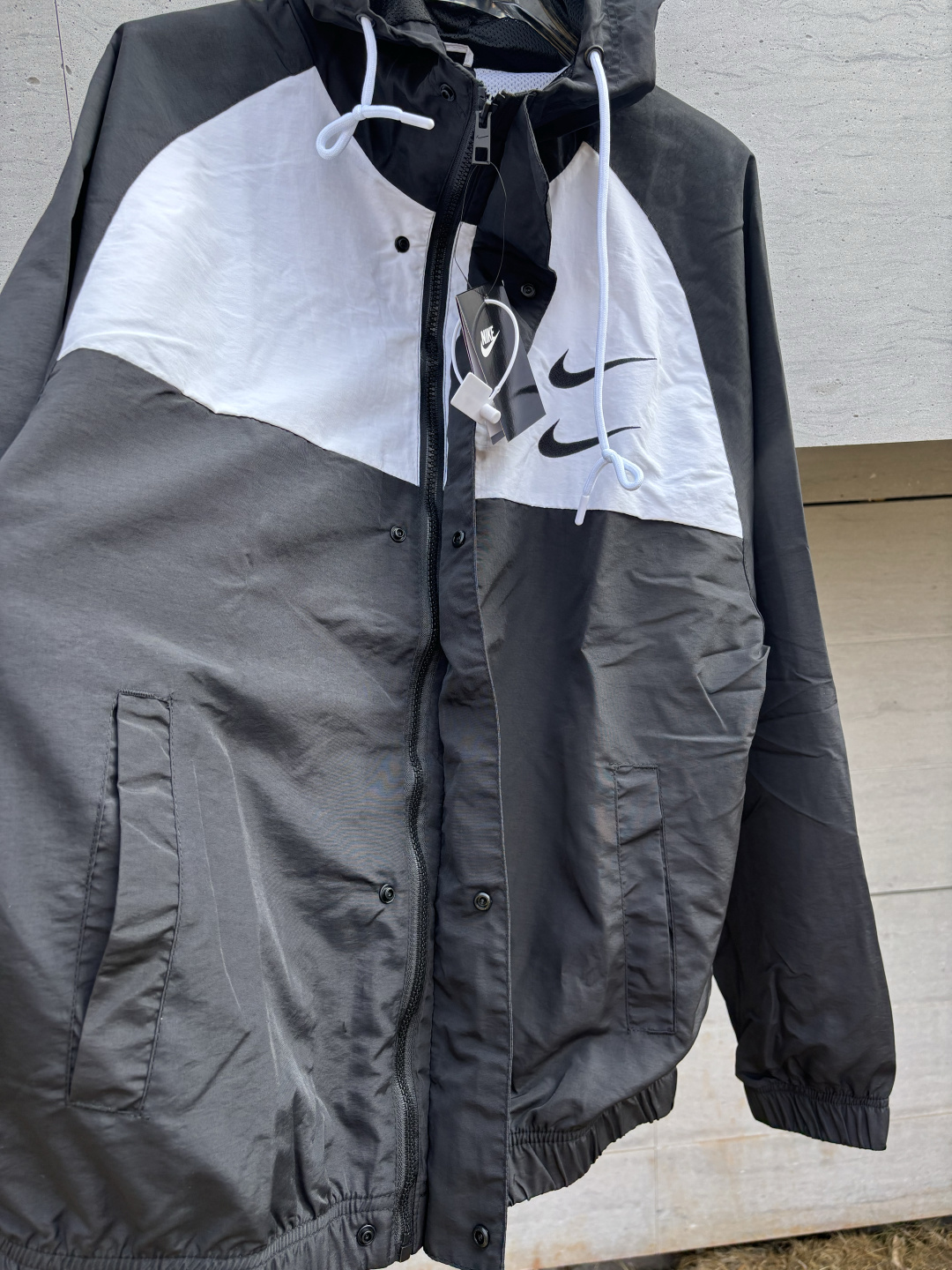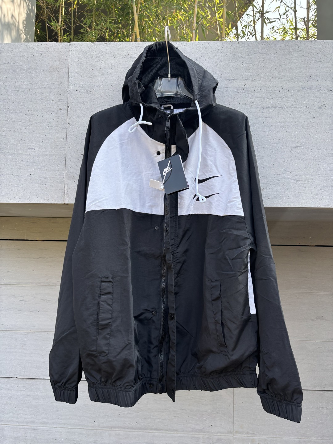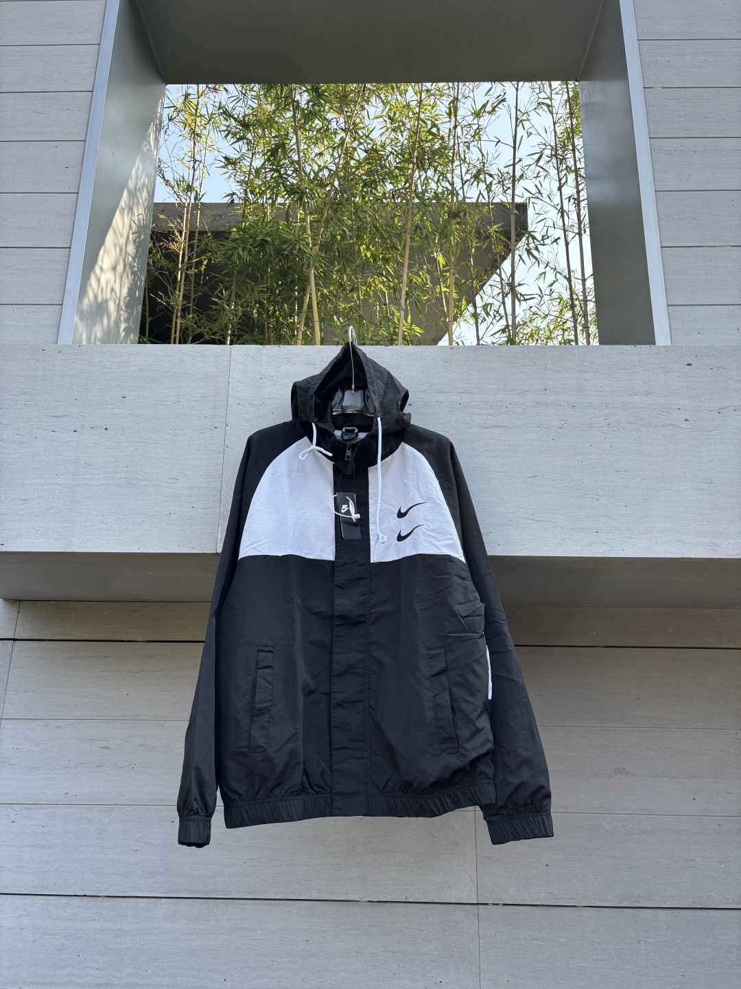 𝗡𝗞双勾𝗕𝗜𝗚 𝗦𝗪𝗢𝗢𝗦𝗛拉链款夹克黑灰 春秋潮牌运动风衣情侣大LOGO薄款休闲连帽刺绣透气拼接外套 实用的一款打球必备外套 此款无论是版型 还是面料都绝对无可挑剔的
