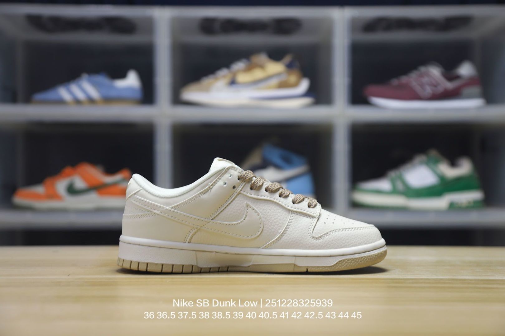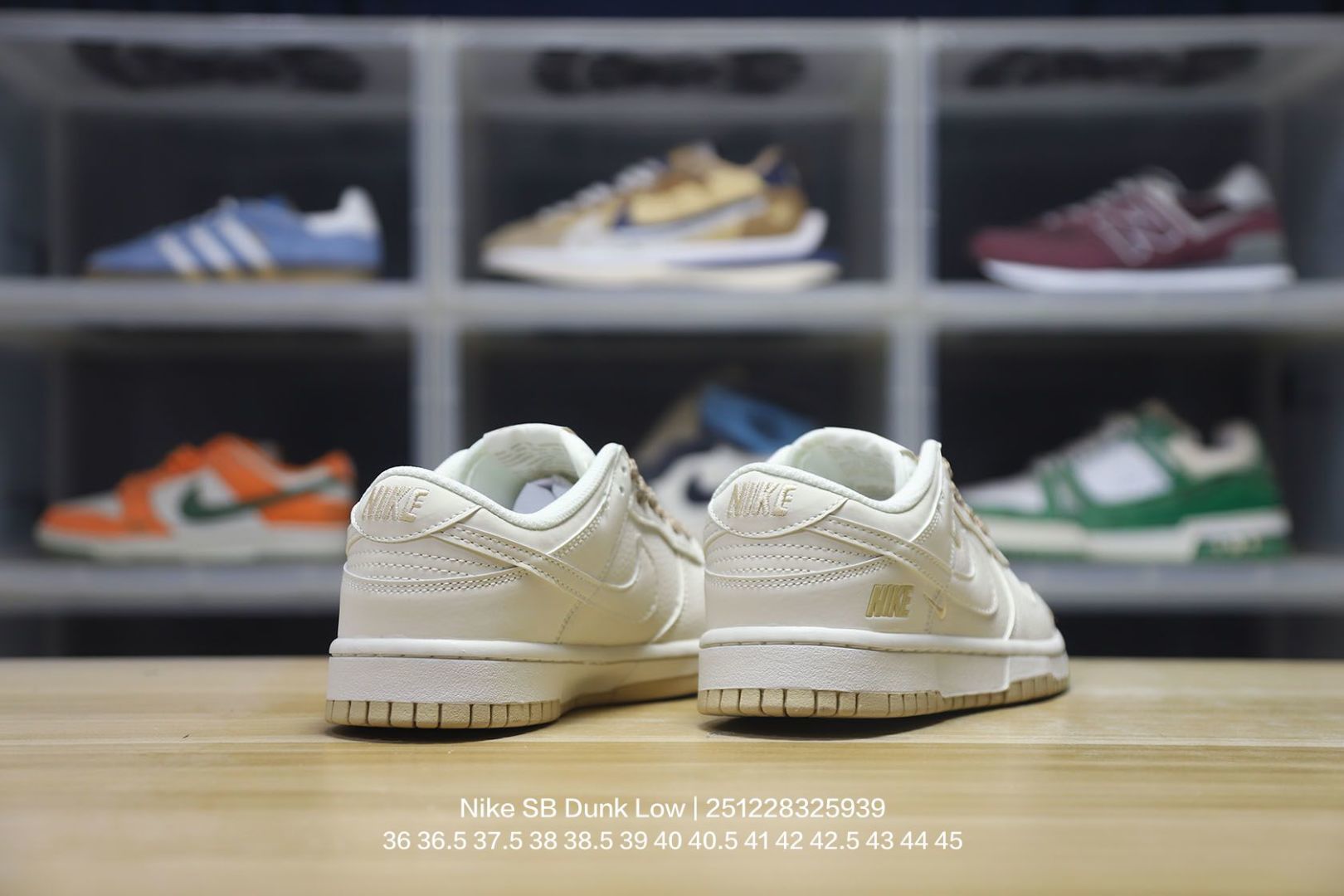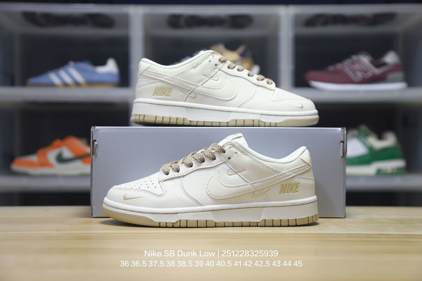 Nike 耐克 男女鞋真标半码制 全新2021版更新数据窄楦翘头版型 采用软质荔枝纹牛剖革鞋面材质 大厂水平严控清洁度 缜密拉帮中底布 鞋垫嵌EVA缓震物料及背胶 全新窄版翘头耐磨橡胶大底耐克Nike SB Dunk Low NIKE 扣篮系列低帮休闲运动滑板板鞋 皮革米白浅灰NIKE四钩反光