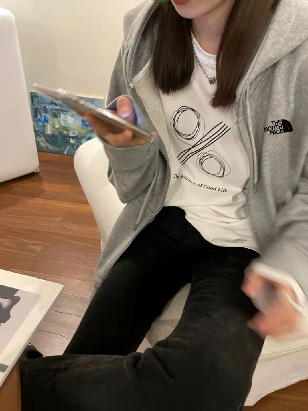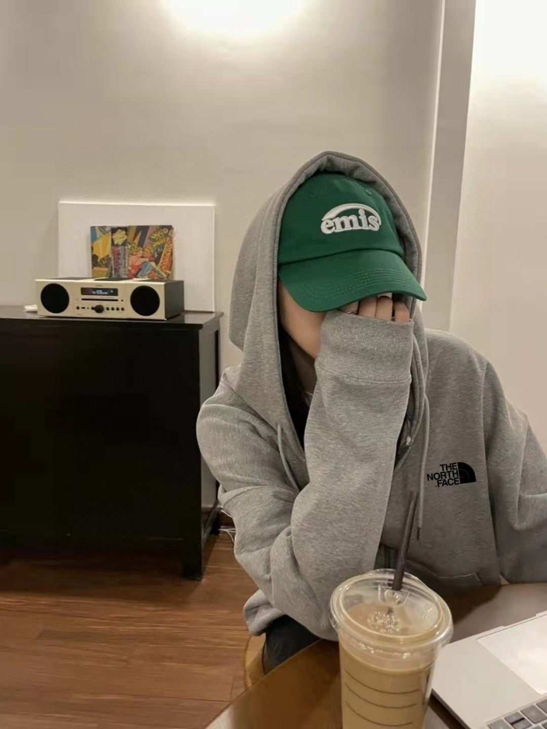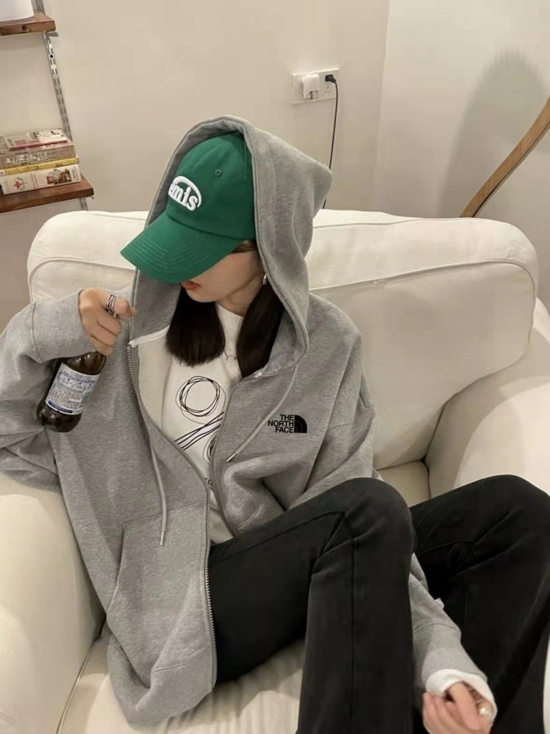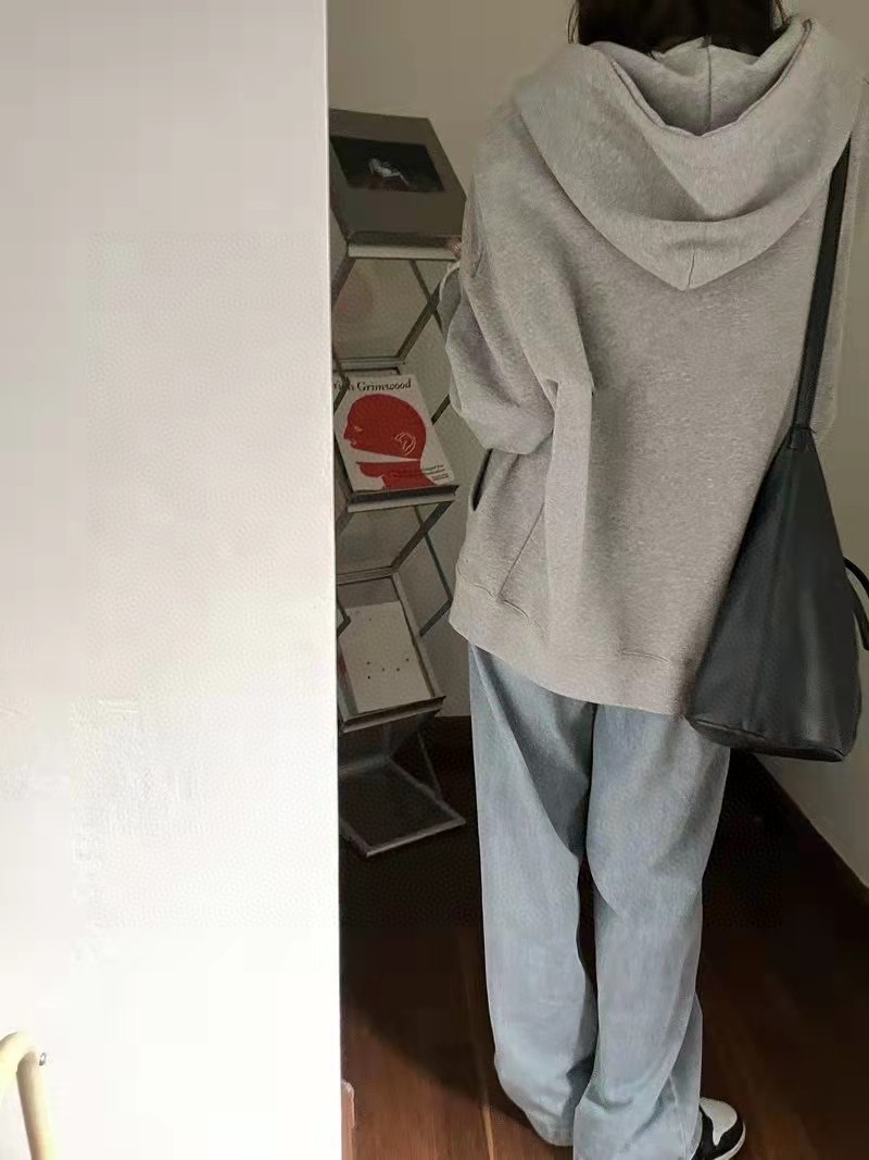 北面The North Face简约百搭落肩宽开衫卫衣连帽外套灰色情侣款