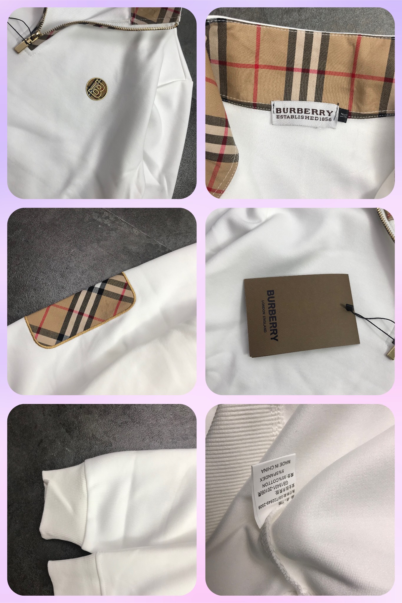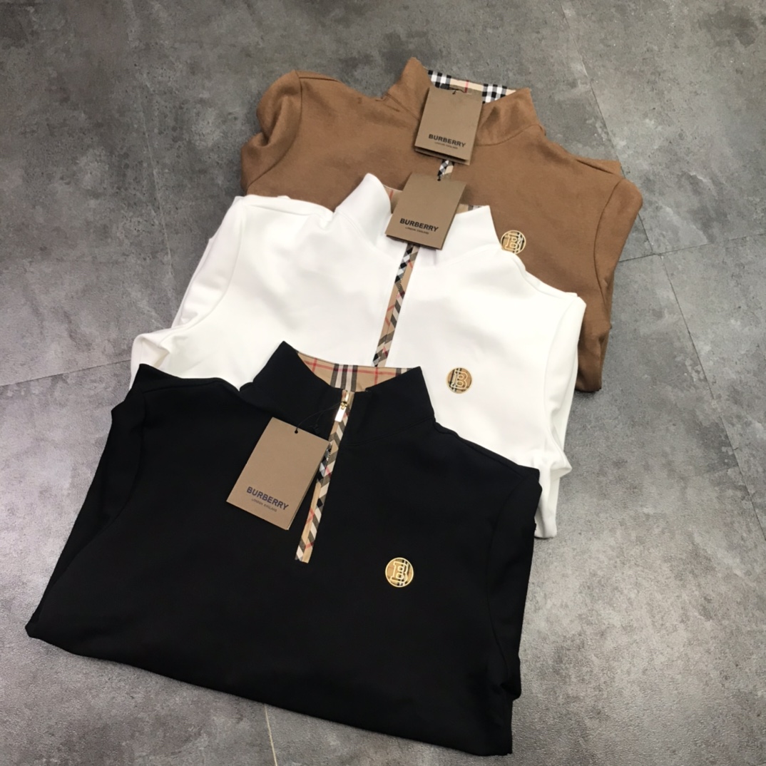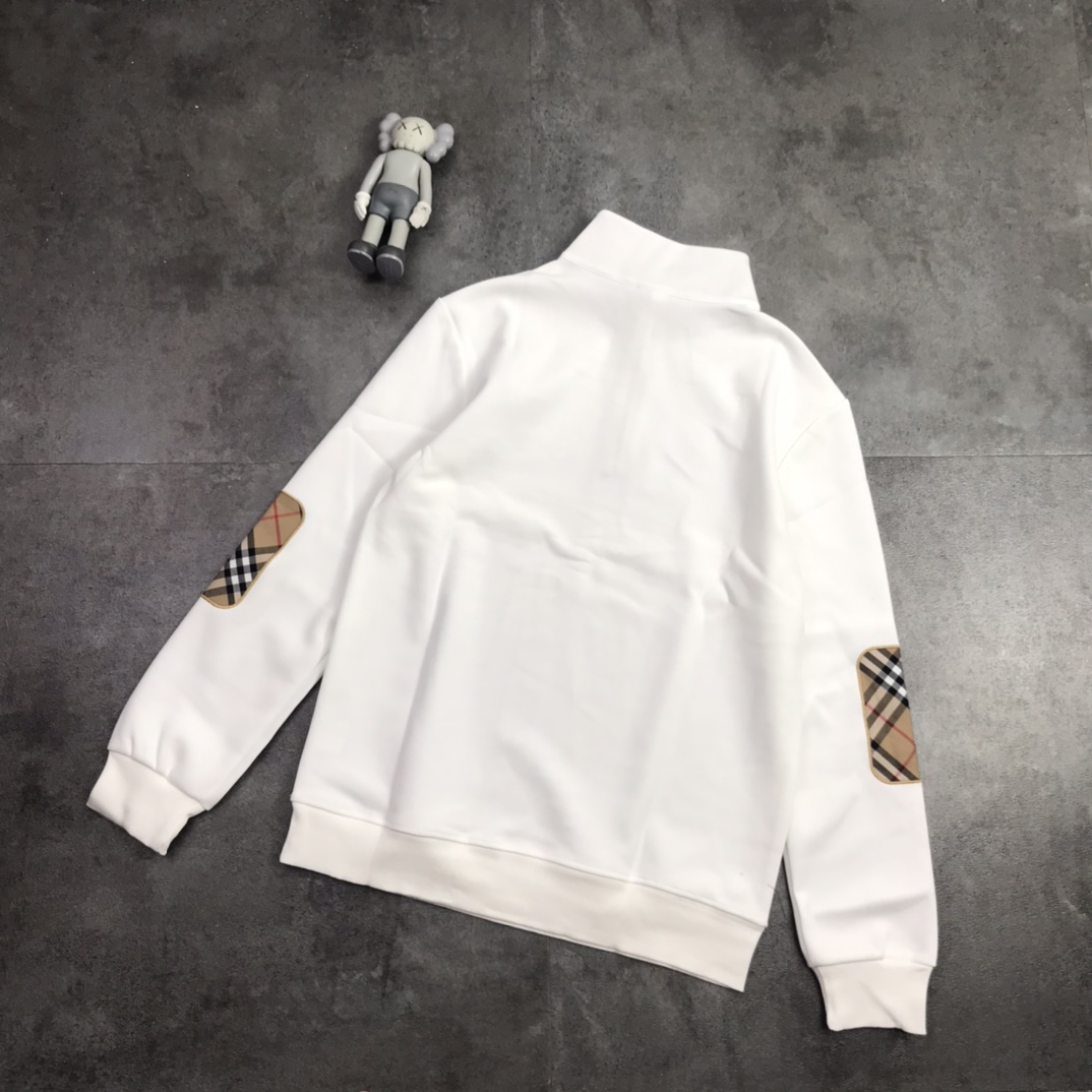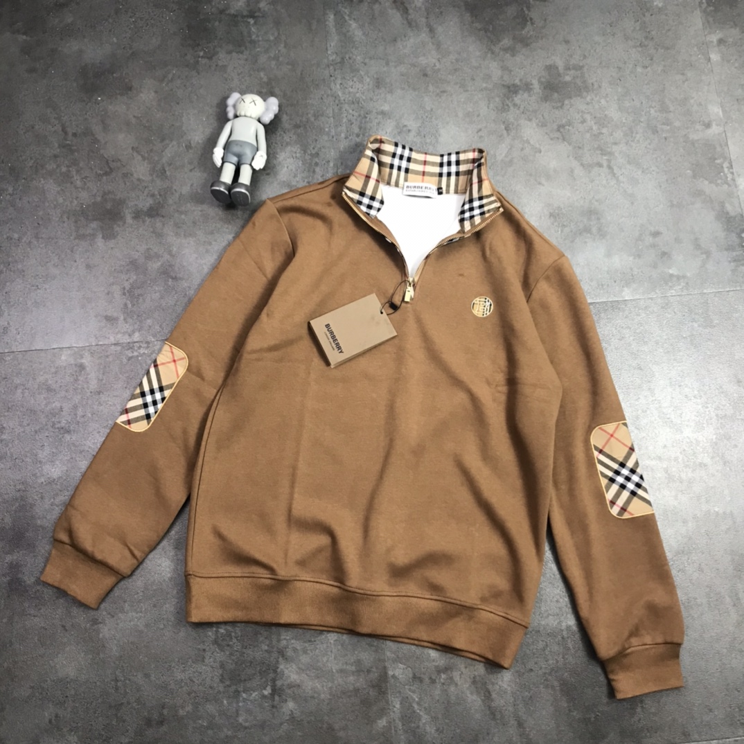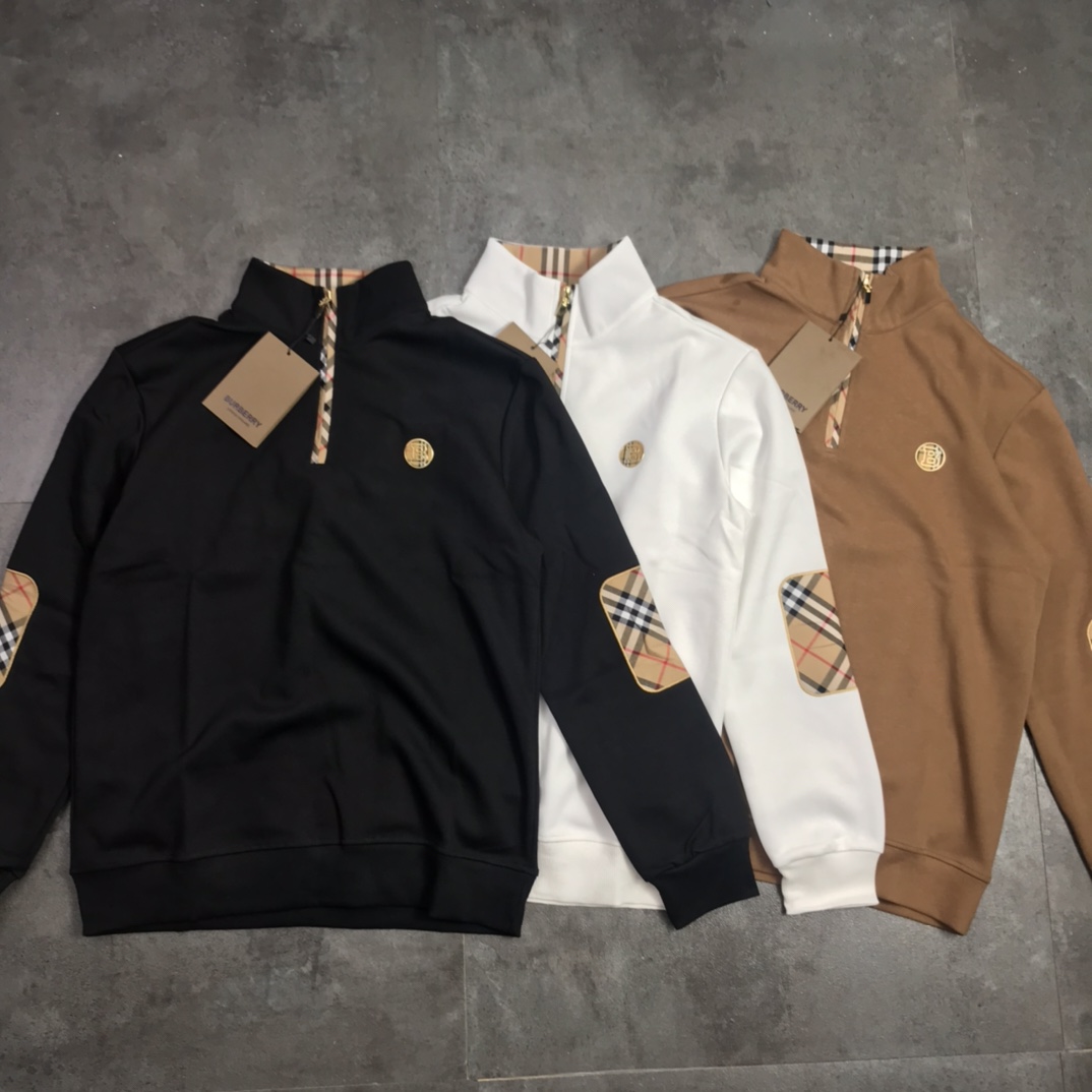 版本好货 巴宝莉胸前burberry字母 B格子印花logo 情侣款男女同款圆领半开拉链套头长袖卫衣男身女神打底衫标准版型青年立体裁剪袖接拼