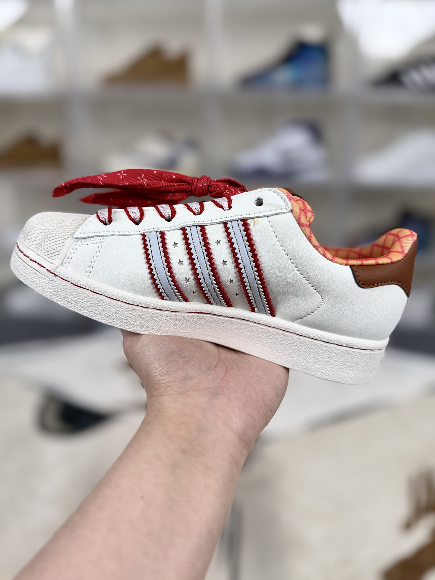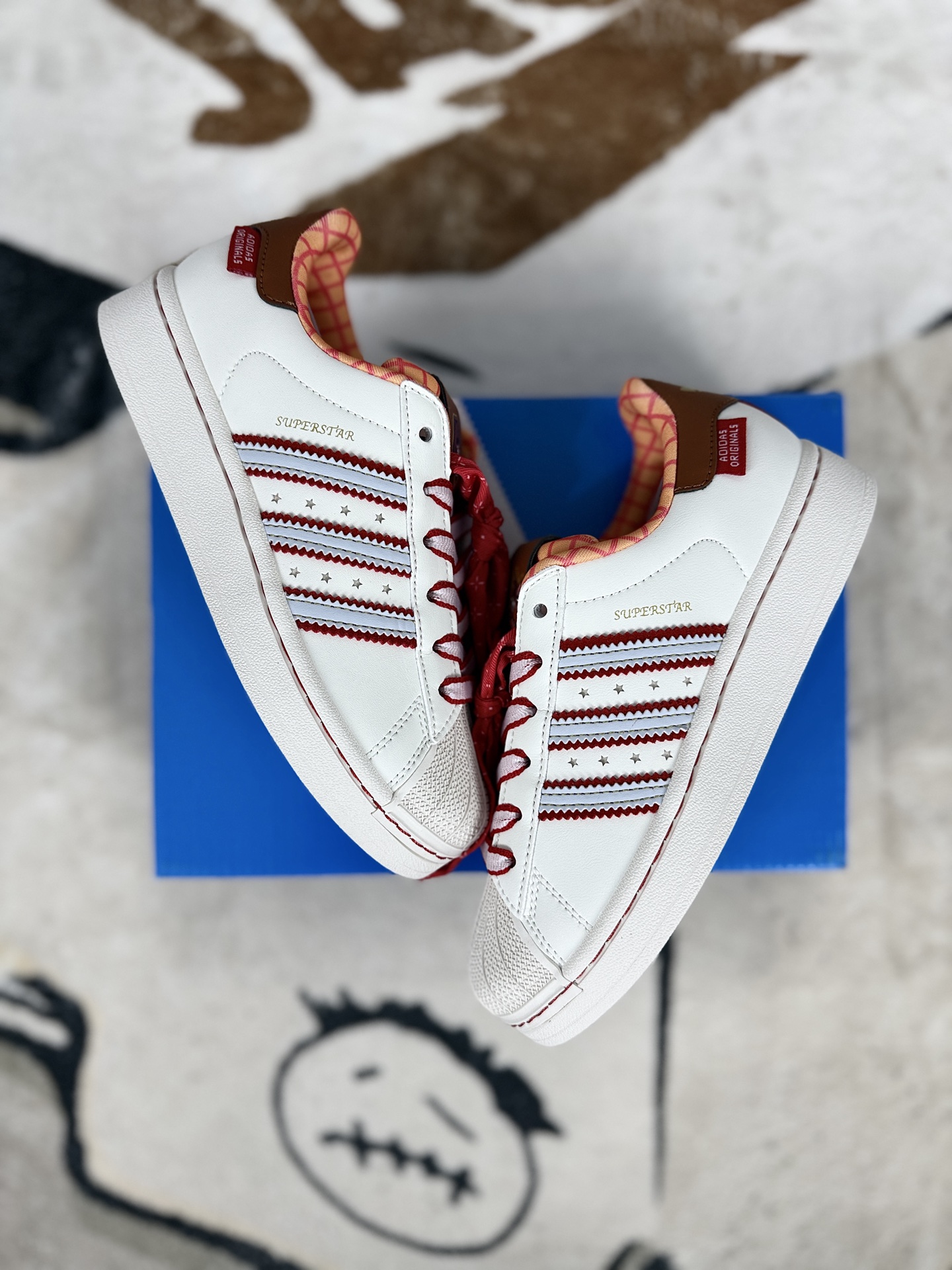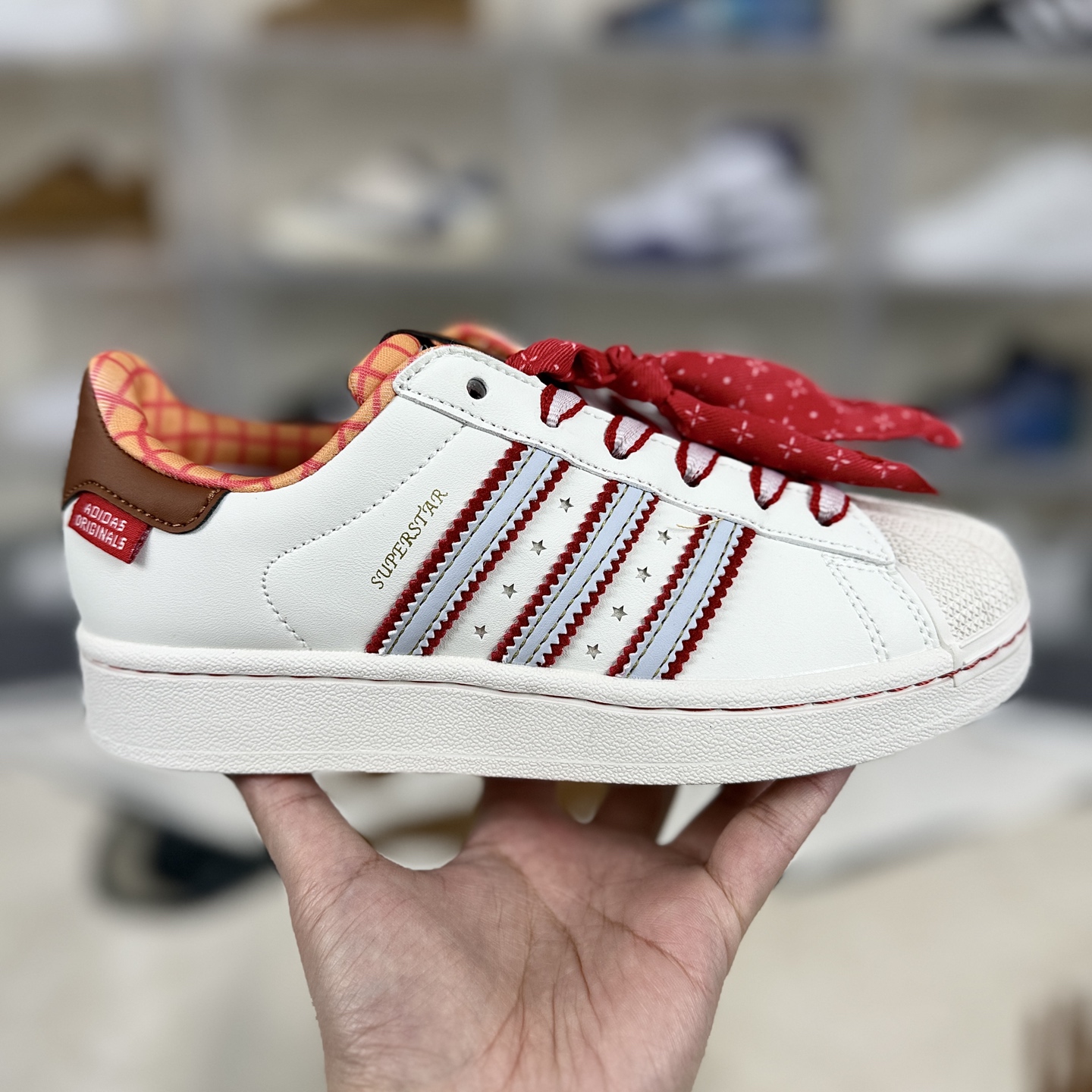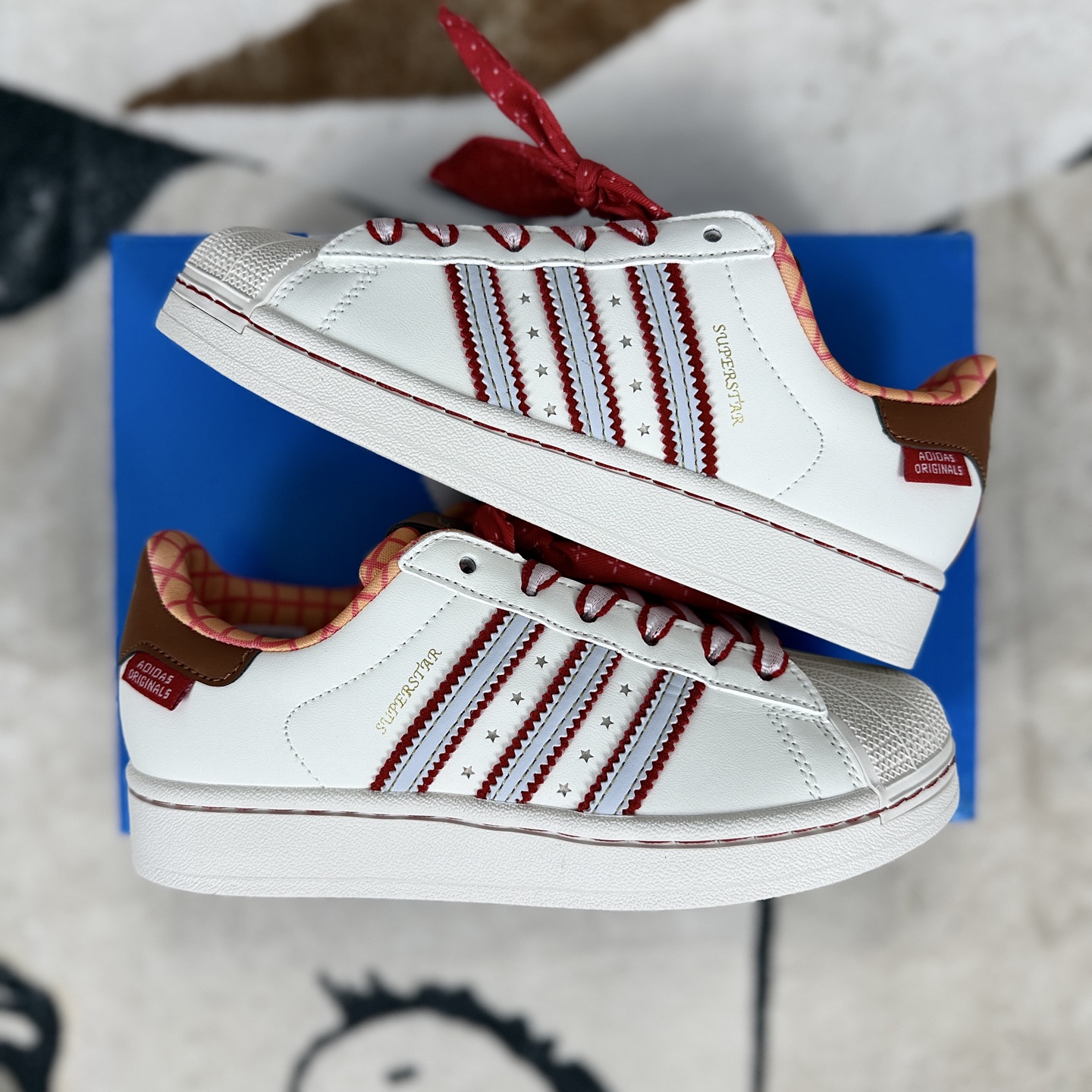 Disney 迪士尼 x adidas originals Superstar 2 百搭舒适 防滑 低帮板鞋 女款 米白红