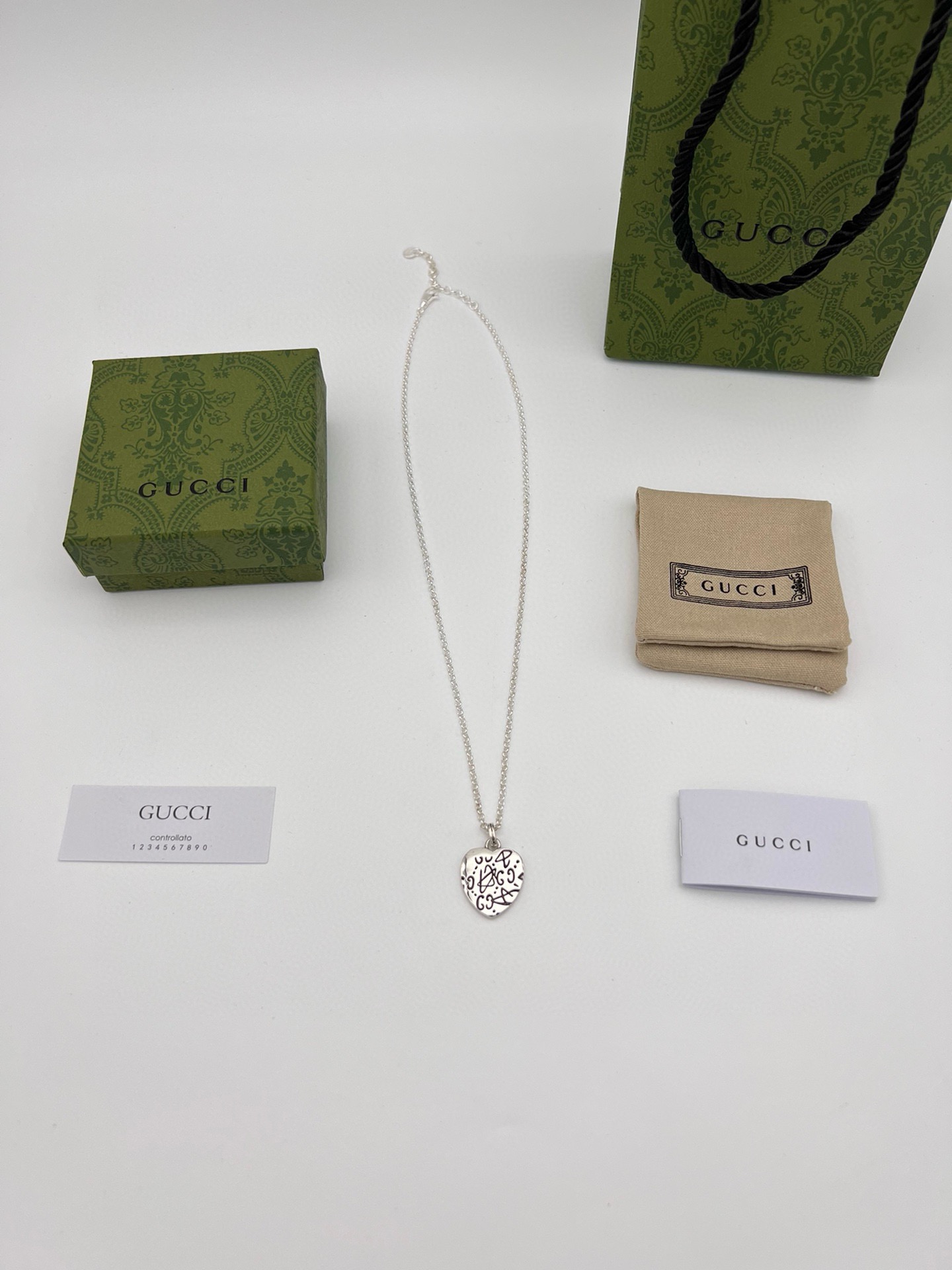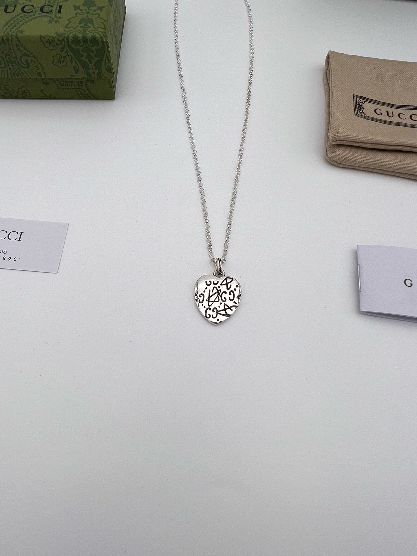 Gucci 刻花爱心吊坠