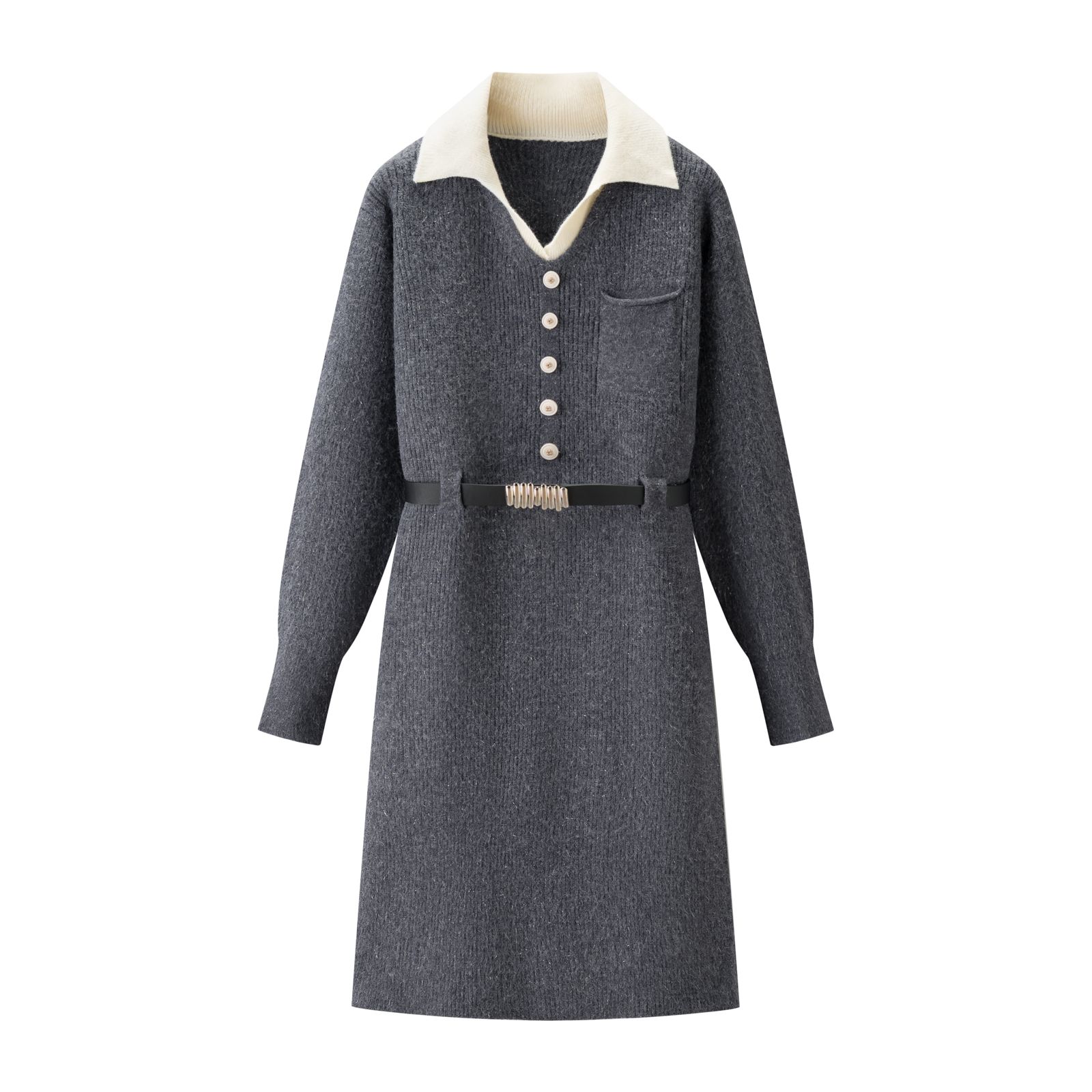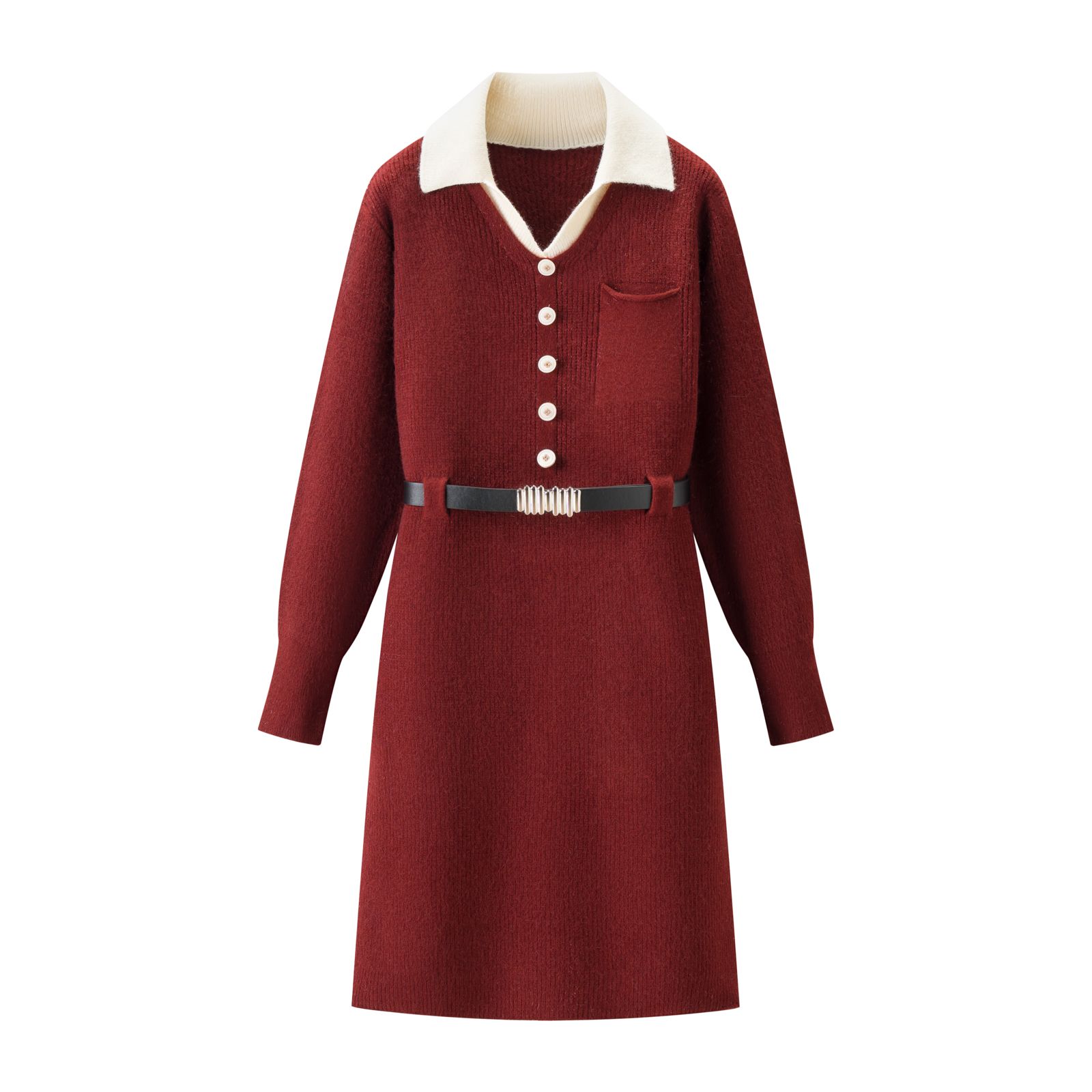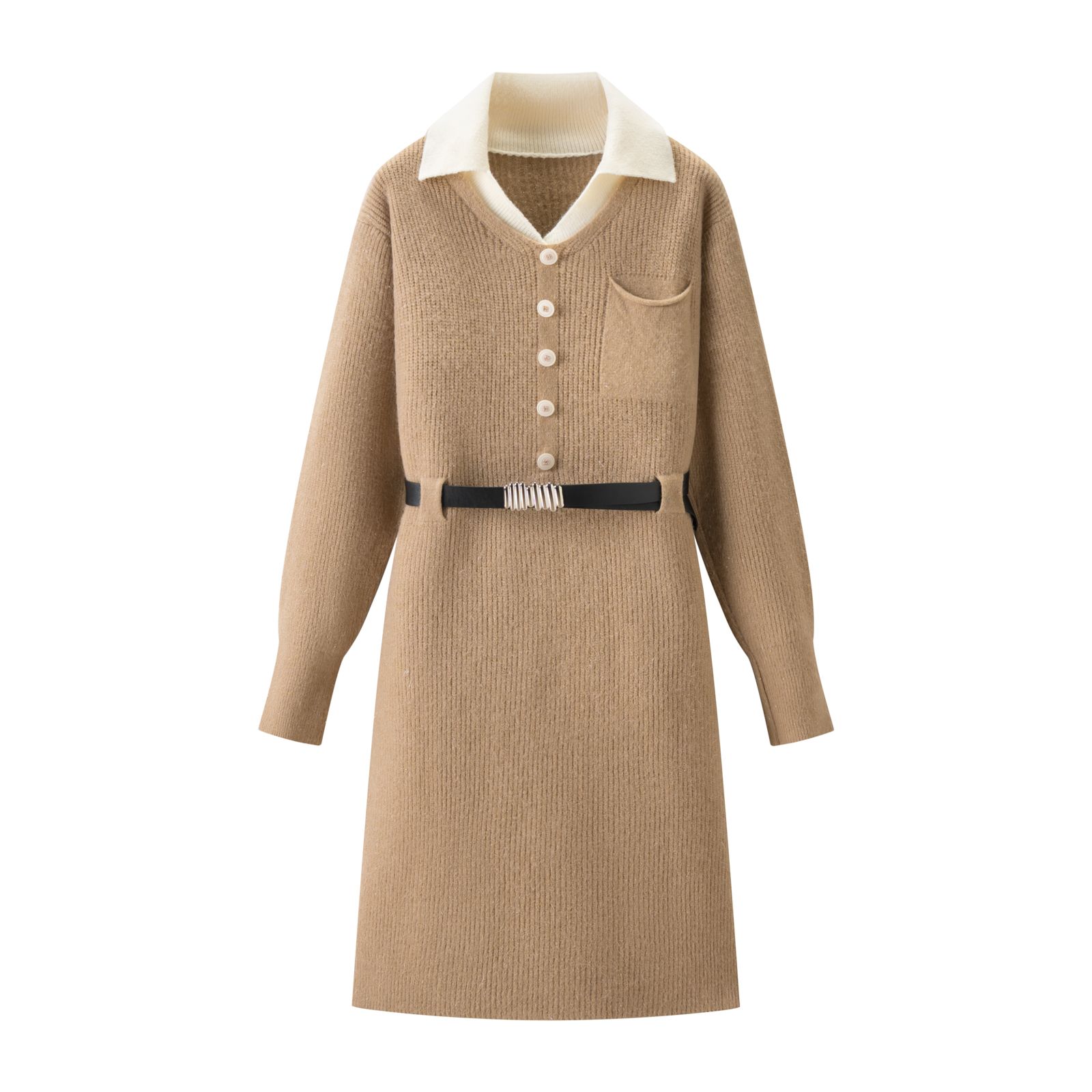 110169308 - 批设计感假两件翻领针织腰带连衣裙小个子显瘦打底毛衣连衣裙女 387745