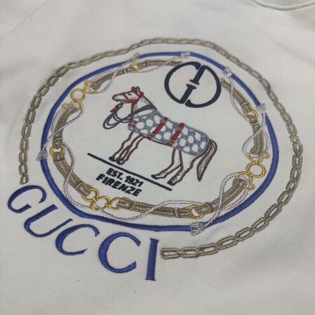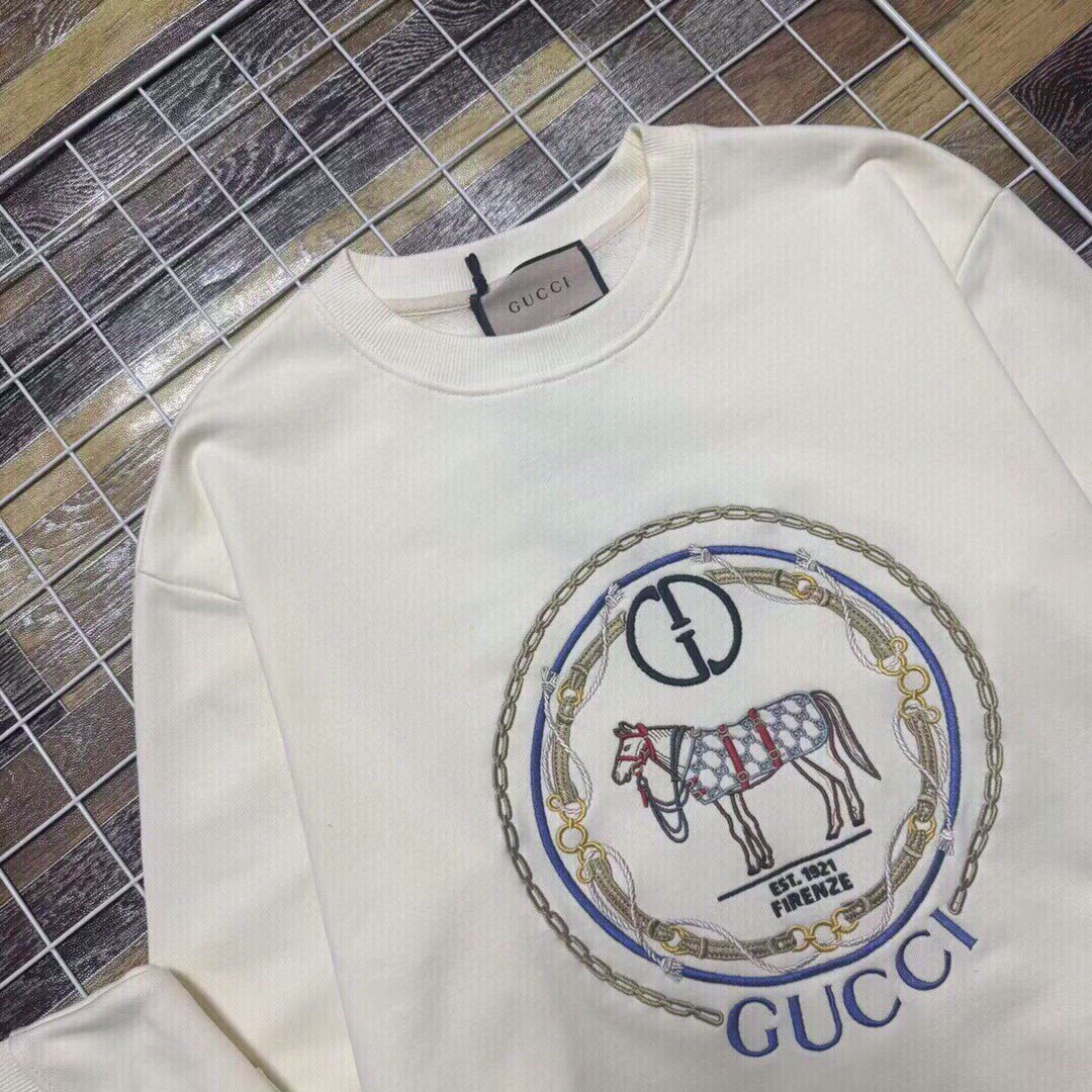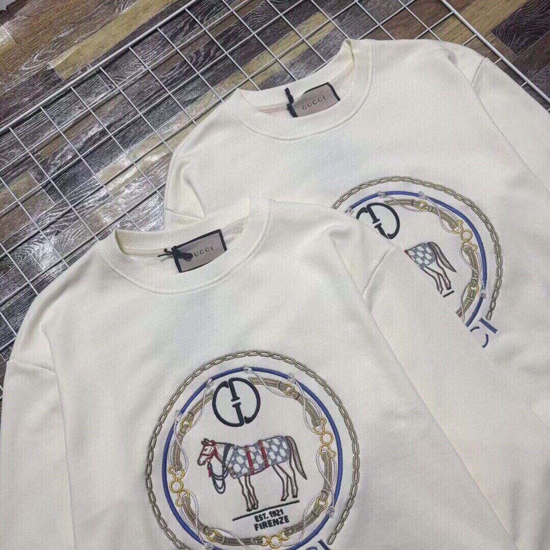 新款上新 跑量高版本独家定制版本GUCCI 古驰经典基础七彩刺绣互扣双G标马术刺绣男女情侣款全棉圆领长袖卫衣 面料 定制原版480 克38只双纱全棉面料 经过预缩工艺 单件重量达480克以上 面料不会再缩水起球掉色等现象 工艺 原版双针车线跨缝工艺 走线工整不歪 区别市面小加工厂单针走线 压线工艺 刺绣效果立体饱满 色牢固高不易脱落