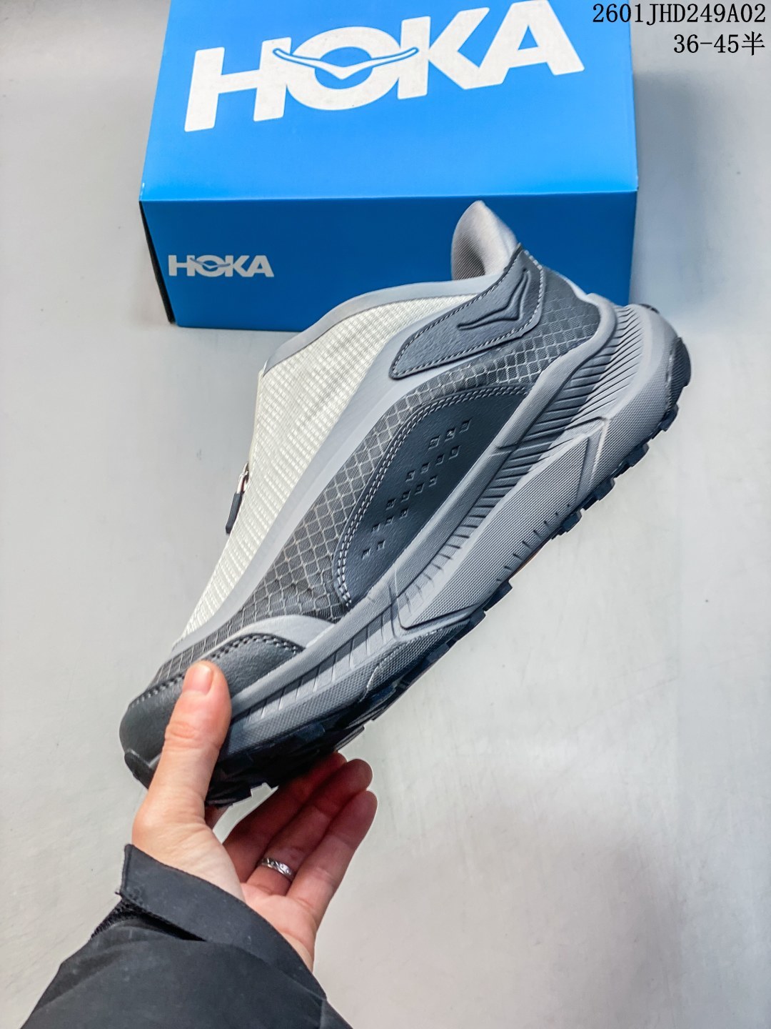 新品公司级 HOKA ONE ONE PROJECT TRANSPORT 舒适 防滑耐磨 低帮 生活休闲鞋 男女同款 这双鞋也是HOKA提倡环保主义的一双鞋款 中底和外底都使用了部分天然的原材料 环保理念值得点赞 Project 作为Hoka Transport的特别版本 与Transport共用相同的中底配置 鞋面的有所改变 鞋面采用了防撕裂的鞋面 精致肌理感提花 轻盈透气 鞋头和跟后处加有醒目反光条 夜行增加警示作用户外夜间穿着也更安全可靠 鞋子采用了快速鞋带扣 拉链设计造型百搭 穿脱更加方便 超轻泡棉中底 用30 甘蔗纤维为原材料 轻盈提供持久的缓冲 嵌入式鞋床 采用类似赛车座椅的桶式结构 基于不同跑步爱好者的特点进行微调 将双足固定于中底之上 外底采用了 VIBRAM ECOSTEP NATURAL 橡胶沿袭一贯的品质 抓地力和性能高标准橡胶采用90 以上的天然成分 100 的天然色素均源自植物和生物农副产品生产工艺过程未使用溶剂或化学品更环保 hoka户外鞋 hoka 潮流户外鞋 宝藏户外鞋子分享