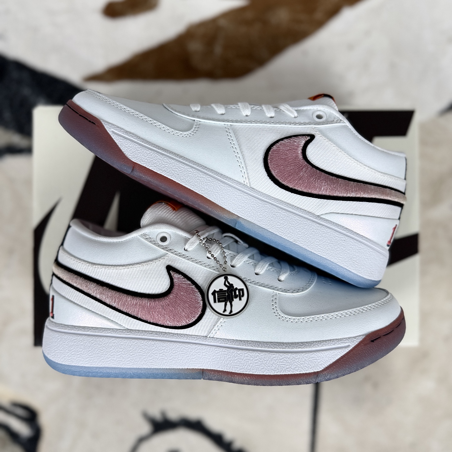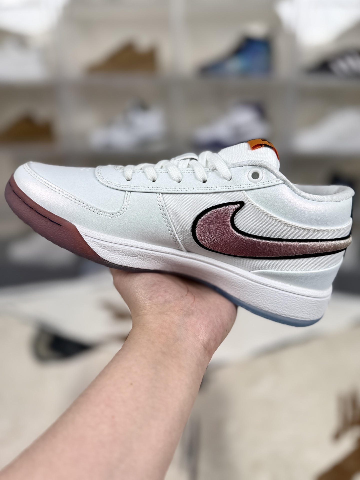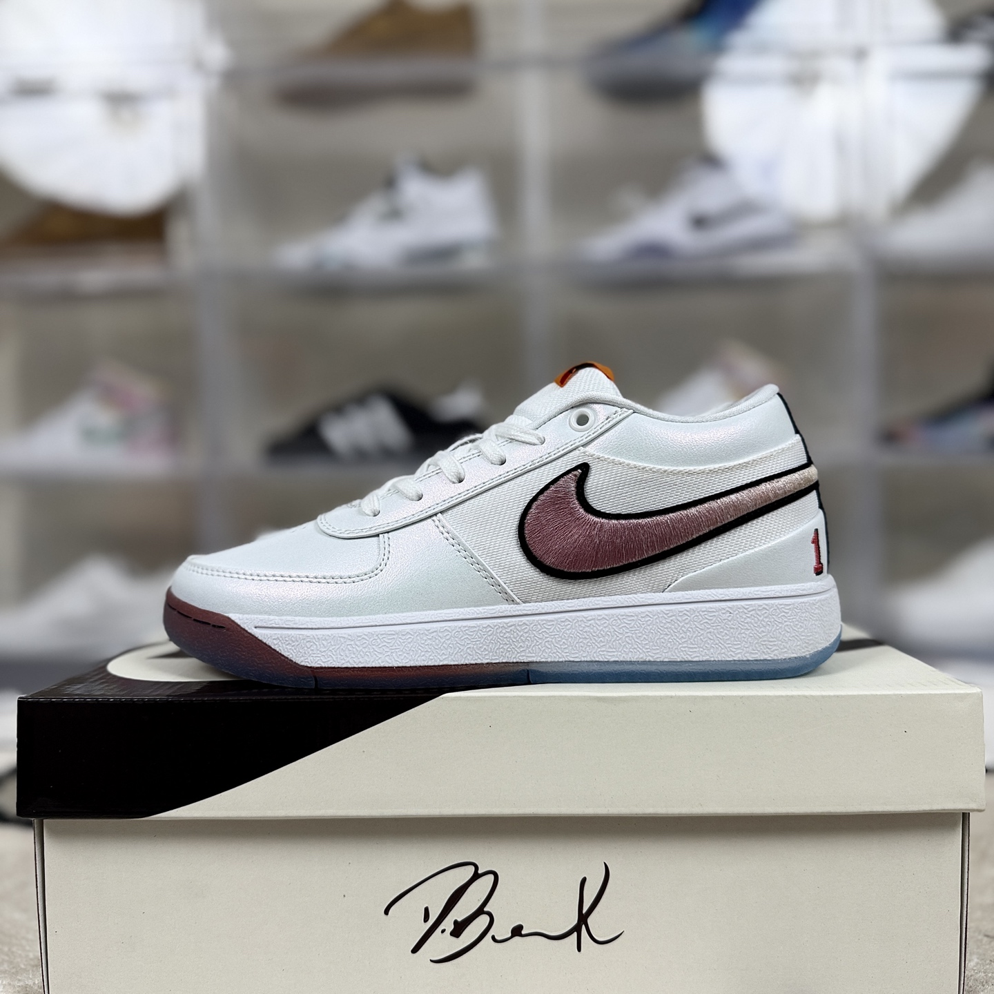布克一代篮球鞋的外观设计灵感来源于经典鞋型如Nike Air Force 1 Nike Blazer和Air Jordan 1 成功融合了复古与现代元素 鞋面主要采用牛皮革 牛剖层革和织物材质 搭配超厚海绵鞋舌填充 带来自然舒适的包裹感 麂皮鞋面质感出色 尽显低调奢华 全掌Cushlon泡棉与后掌Zoom气垫的组合 为脚部提供柔软而不泄力的支撑 后掌较厚 重心整体偏高 带来稳定的步伐 XDR橡胶轮胎外底 耐磨耐用 确保在各种地面上都能稳定前行 经典的人字纹外底设计 在干燥场地上的抓地力表现出色 鞋带的传统设计与充实的鞋舌 整体鞋型搭配得当 拉紧鞋带后包裹感优秀且不会出现掉跟现象 后掌的马蹄形Zoom气垫提高了缓震极限 使得用户在进行高空跳跃和投篮落地时能够获得足够的缓冲 许多用户赞赏其出色的外观设计和为穿搭带来的多样化选择 同时 兼顾实战性能和时尚外观的设计定位 也让布克一代成为年轻人中颇受欢迎的球鞋