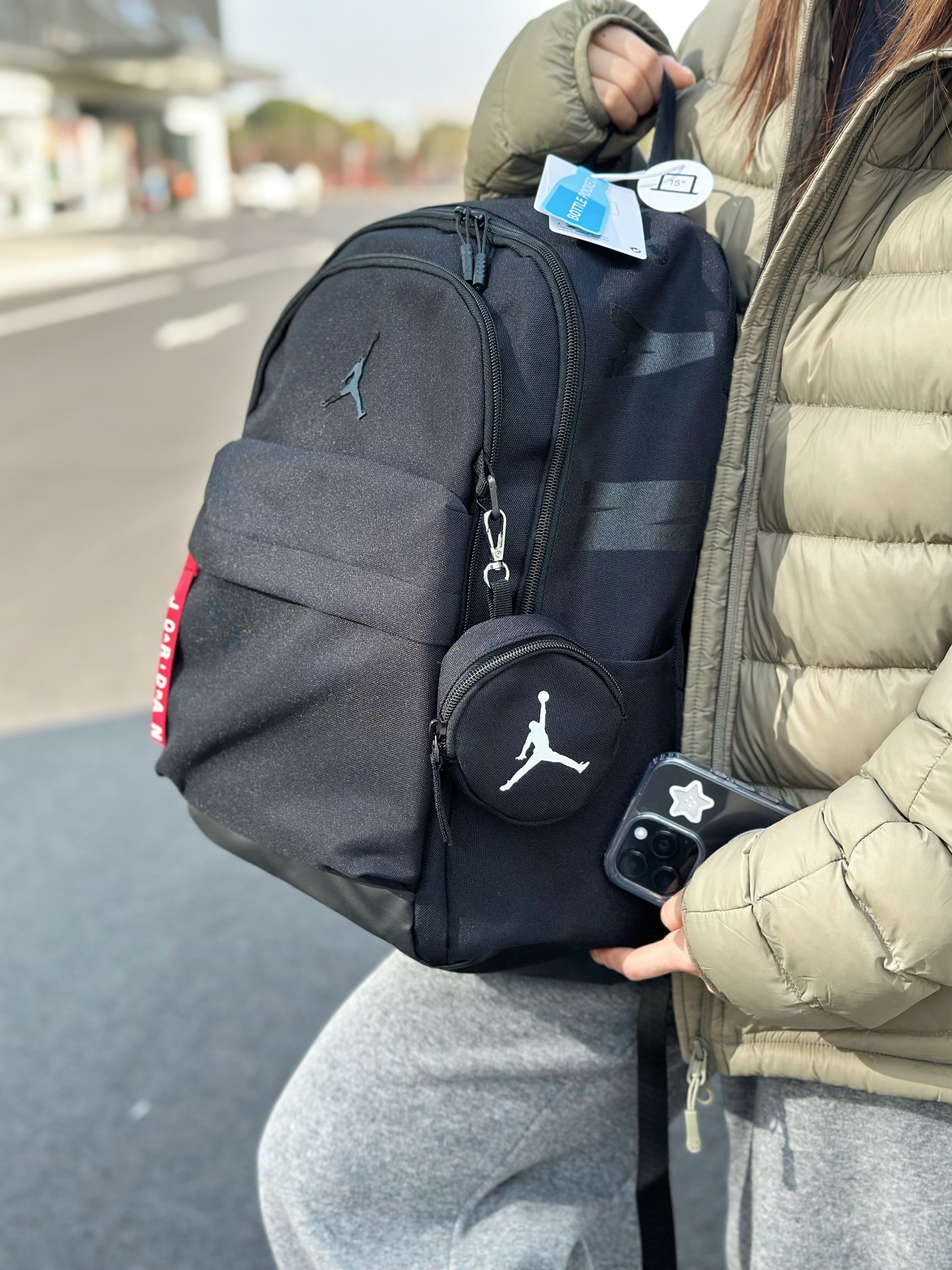 高版本立体标 耐克乔丹织带字母logo高版本双肩包单肩包学生书包男女同款 质量超级好 内置多个储物隔层 包包背垫超级柔软 上身背着特别舒适 给你一个不一样的背包体验 经典无须多说 运动达人首选 颜色 黑色 尺寸 高43 长30 厚15