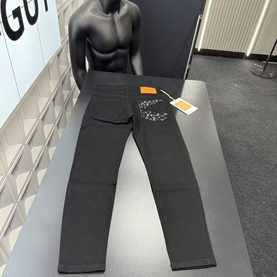 此款售后不停 秋季热销款推荐Lv路易威登口袋印花刺绣字母牛仔裤 三标齐全官网一致 放大看细节原相机实物拍摄