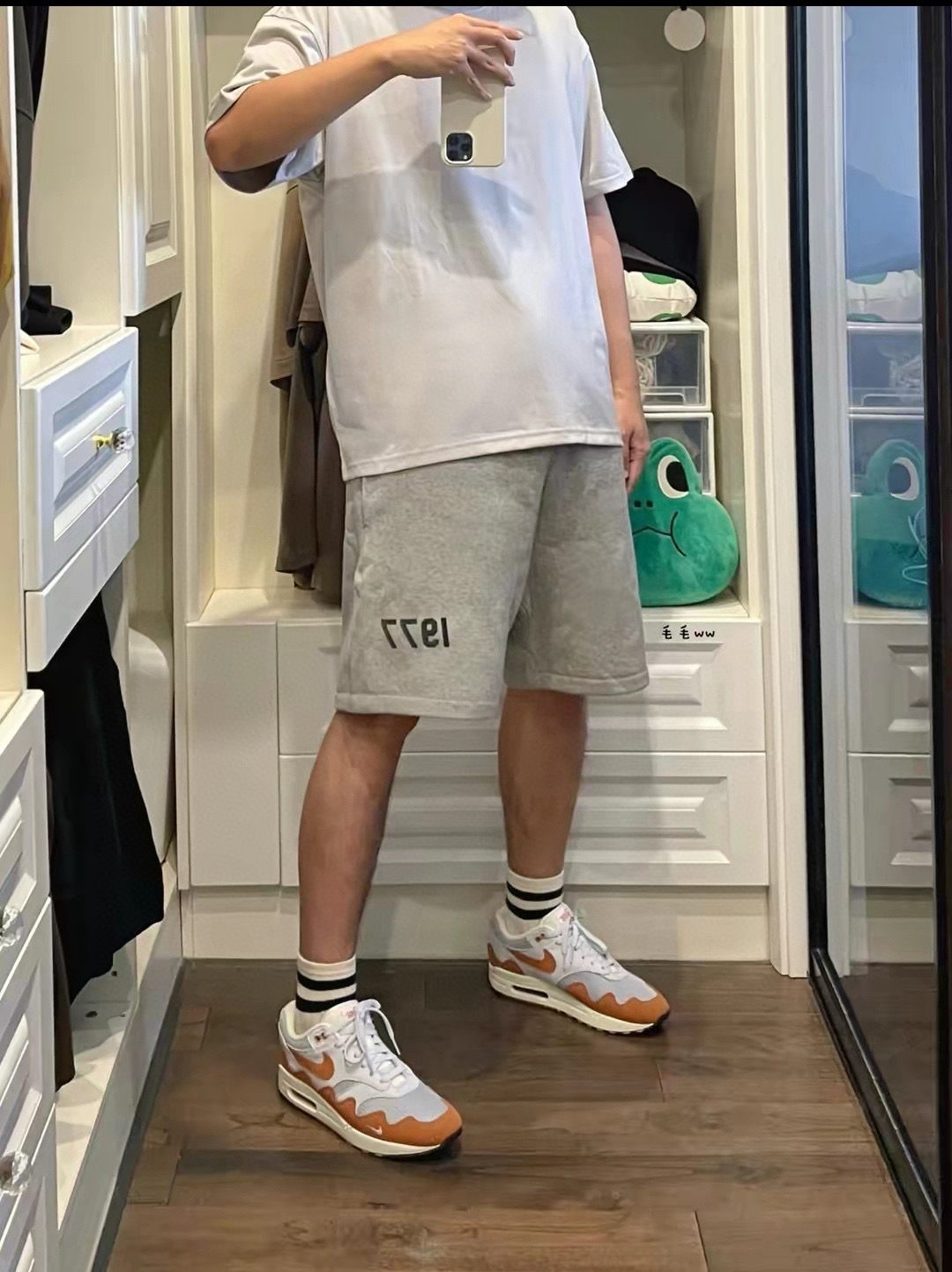 爆款模特图Fear of God Essentials 1977系列 SS22 Shorts Iron 数字植绒徽标系绳运动美式重磅休闲短裤 男款