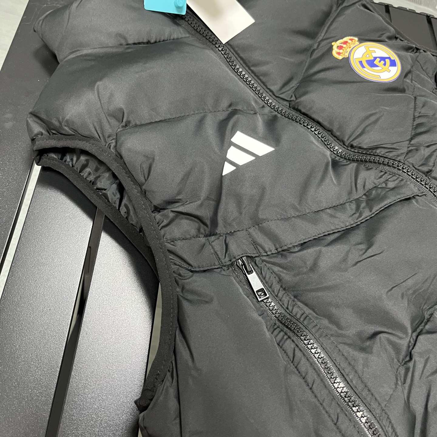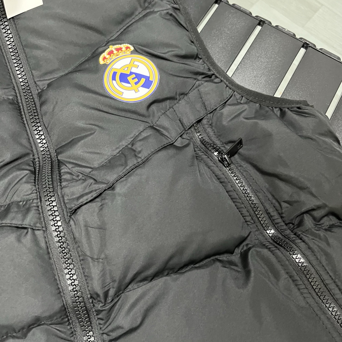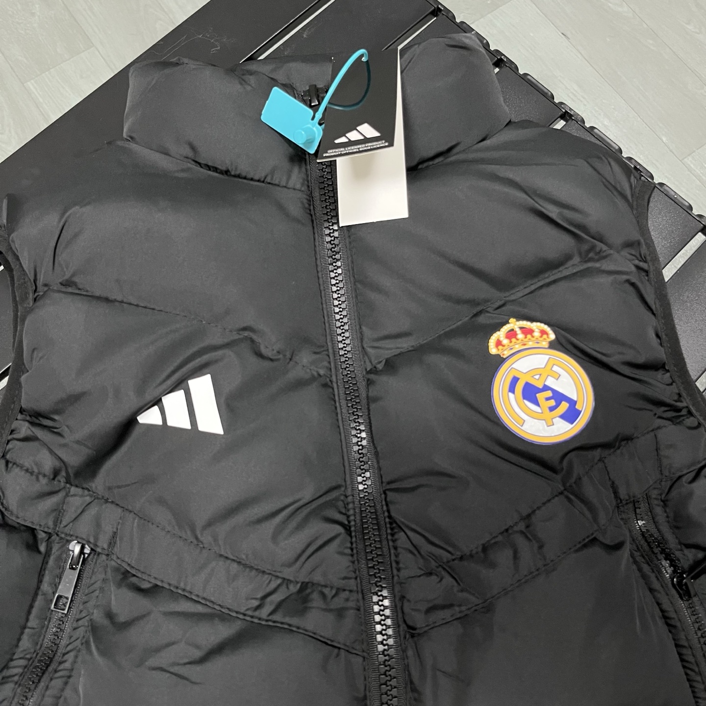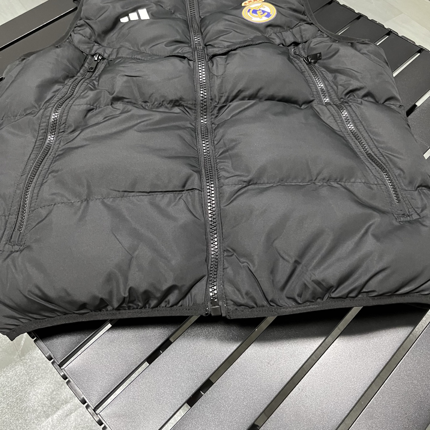 上新 得物品质 现货现发 阿迪达斯 皇家马德里 adidas originals Real Madrid Winterized 皇马训练系列 徽章印花立领修身拉链马甲 立领无袖 马甲 长拉链大口袋 厚实 蓬松保暖马甲 三标齐全 纯色运动休闲立领羽绒棉马甲 羽绒棉服 男款 灰色 黑色S 2XL