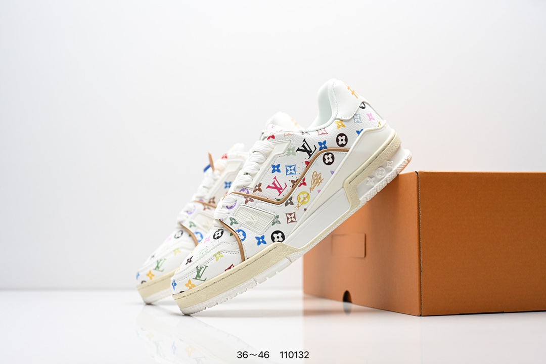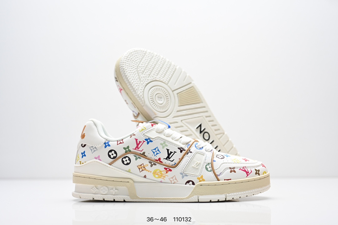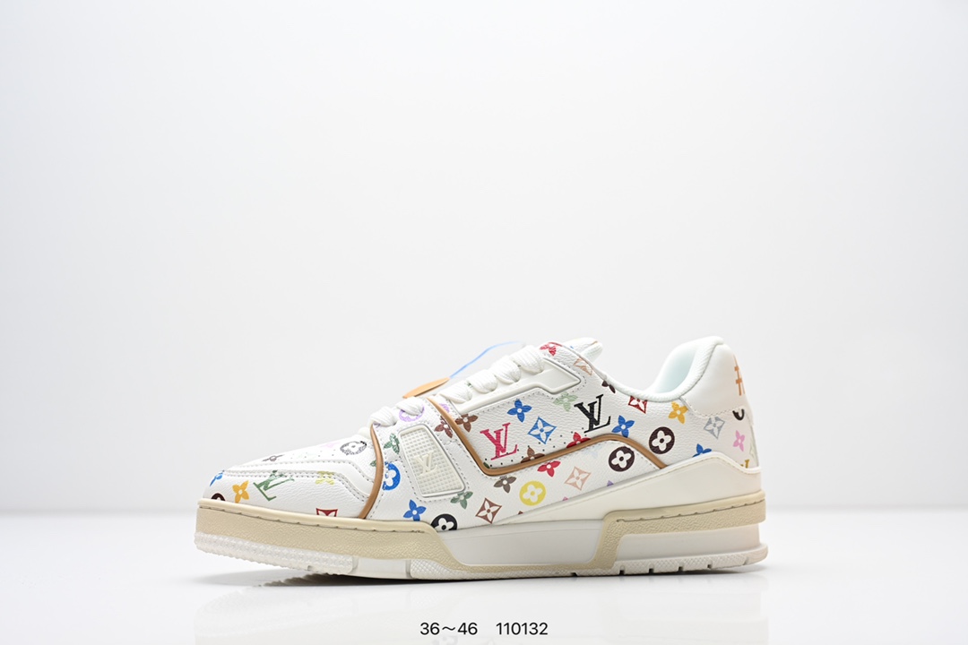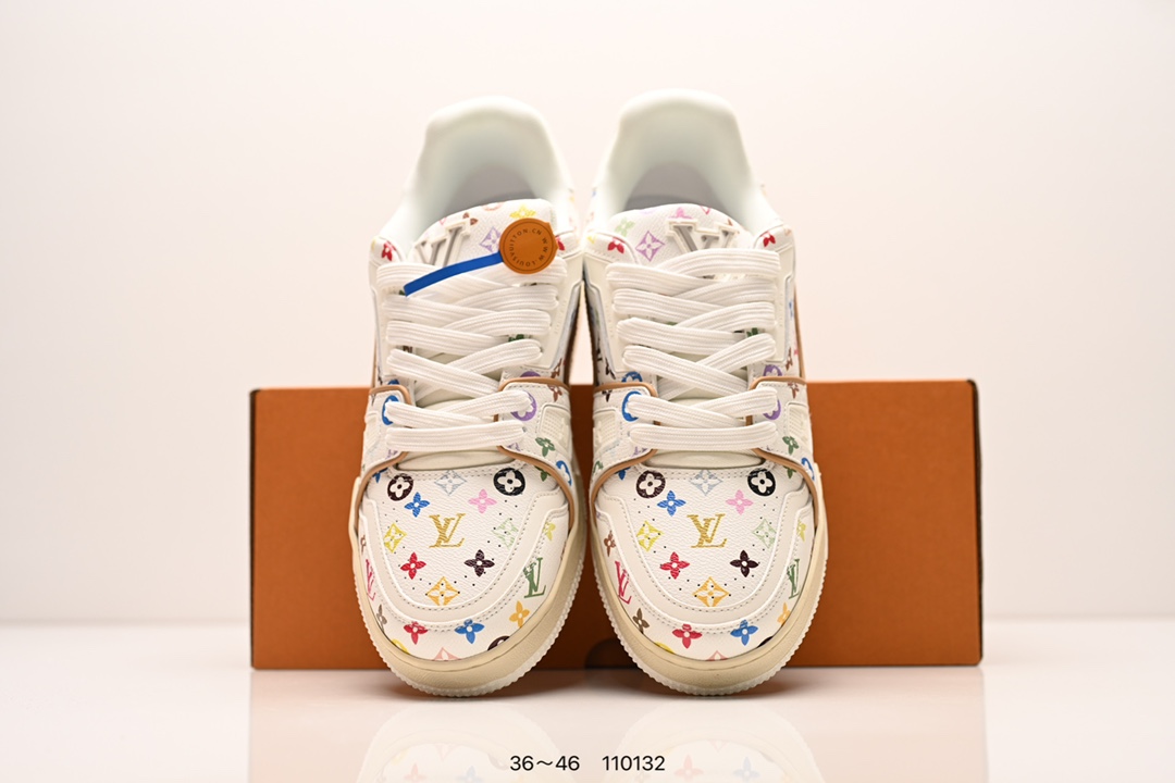 Louis Vuitton 路易威登 村上隆 白 广东原产高性价比 采用皮革鞋面材质 内里小羊皮打造及去味海玻璃脚垫 空胶工艺 外置耐磨橡胶大底全新LV路易威登Louis Vuitton Remarque Low经典低帮系带休闲运动百搭板鞋 类型 男鞋