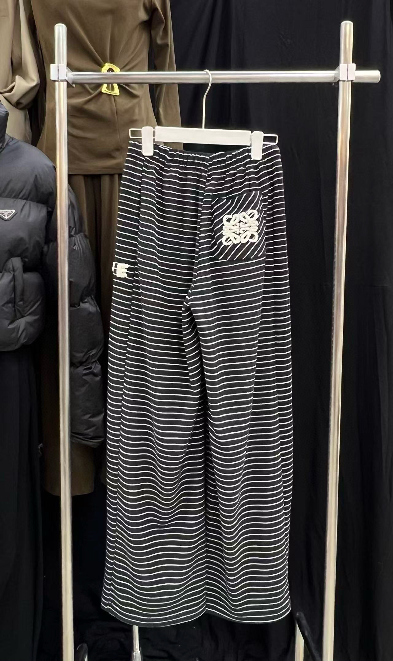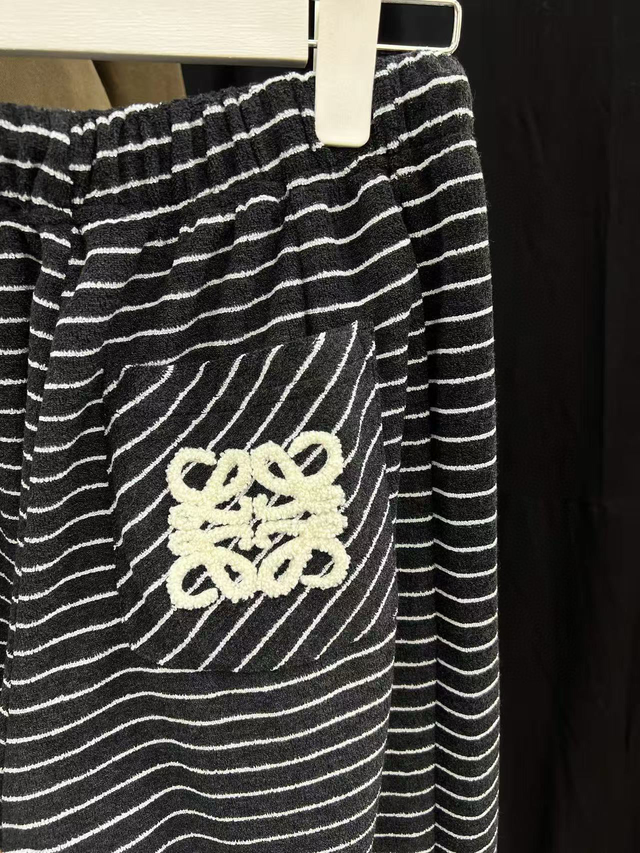 Loewe罗意威字母logo立体毛巾绣花抽绳松紧腰条纹休闲裤长裤