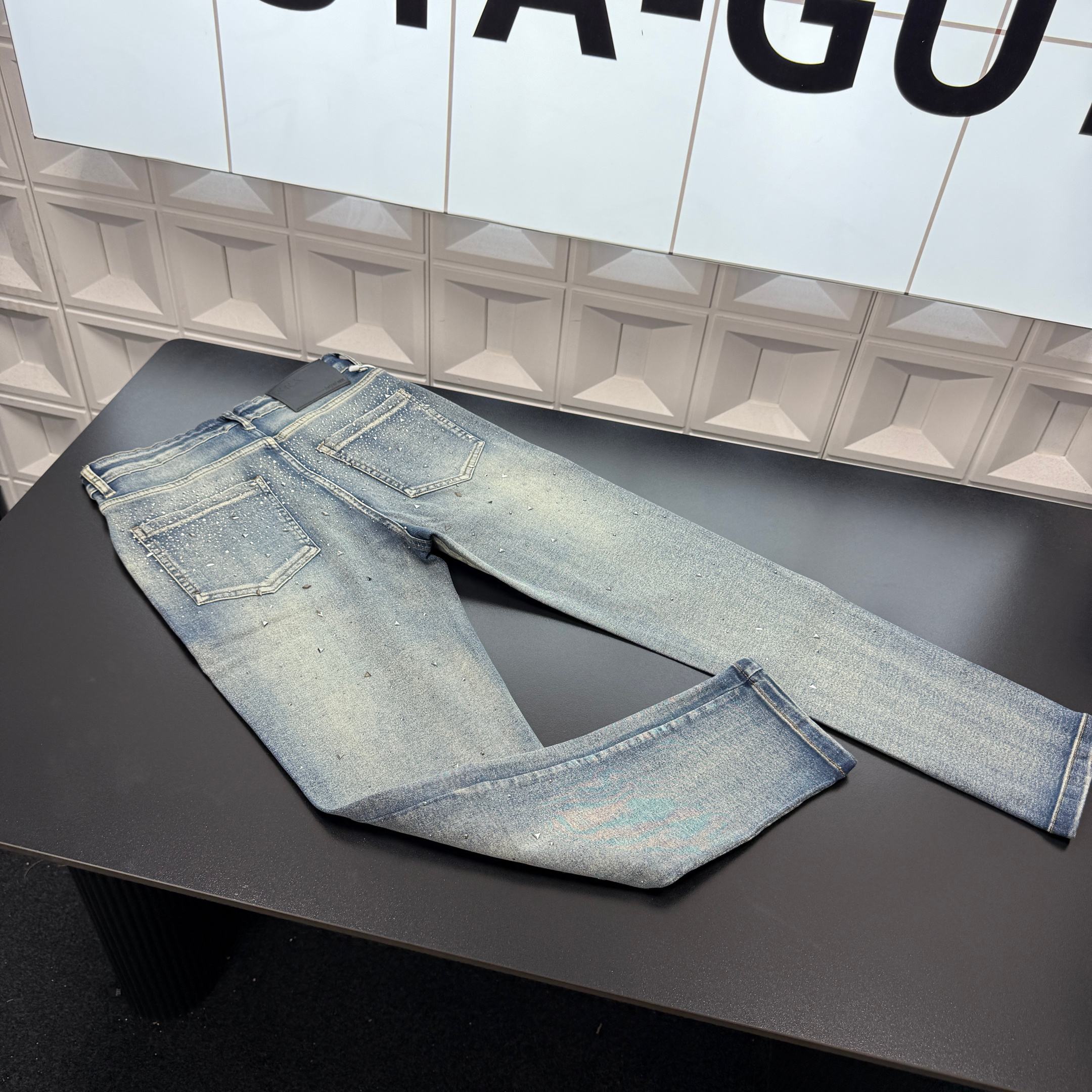 冬季热销爆款网红博主推荐款原创爆款潮牌牛仔裤 前后满印烫钻铆钉水洗牛仔裤 三标齐全官网一致 放大看细节原相机实物拍摄 颜色 水洗蓝 尺码 L 4xl L 80 105斤 XL 105 120斤 2XL 120 140斤 3XL 140 160斤 4XL 160 180斤