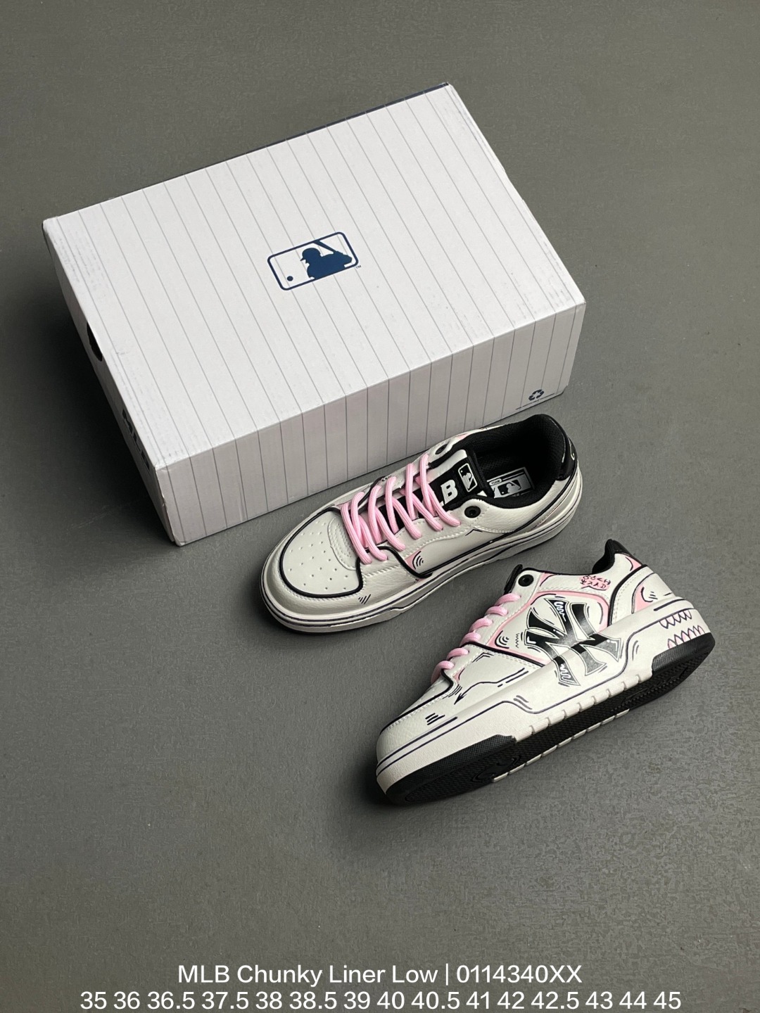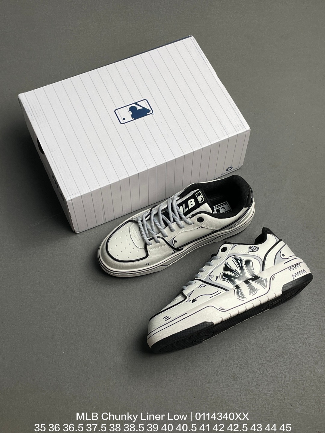 MLB 韩国F F旗下运动品牌 高密度5cm厘米外增高轻质发泡中底组合耐磨橡胶外底片学院穿搭爆款 Korea韩国限定 联乘美国榄球洋基队New York Yankees x MLB Chunky Liner Low 学长鞋系列低帮老爹风轻量增高厚底百搭休闲运动板鞋