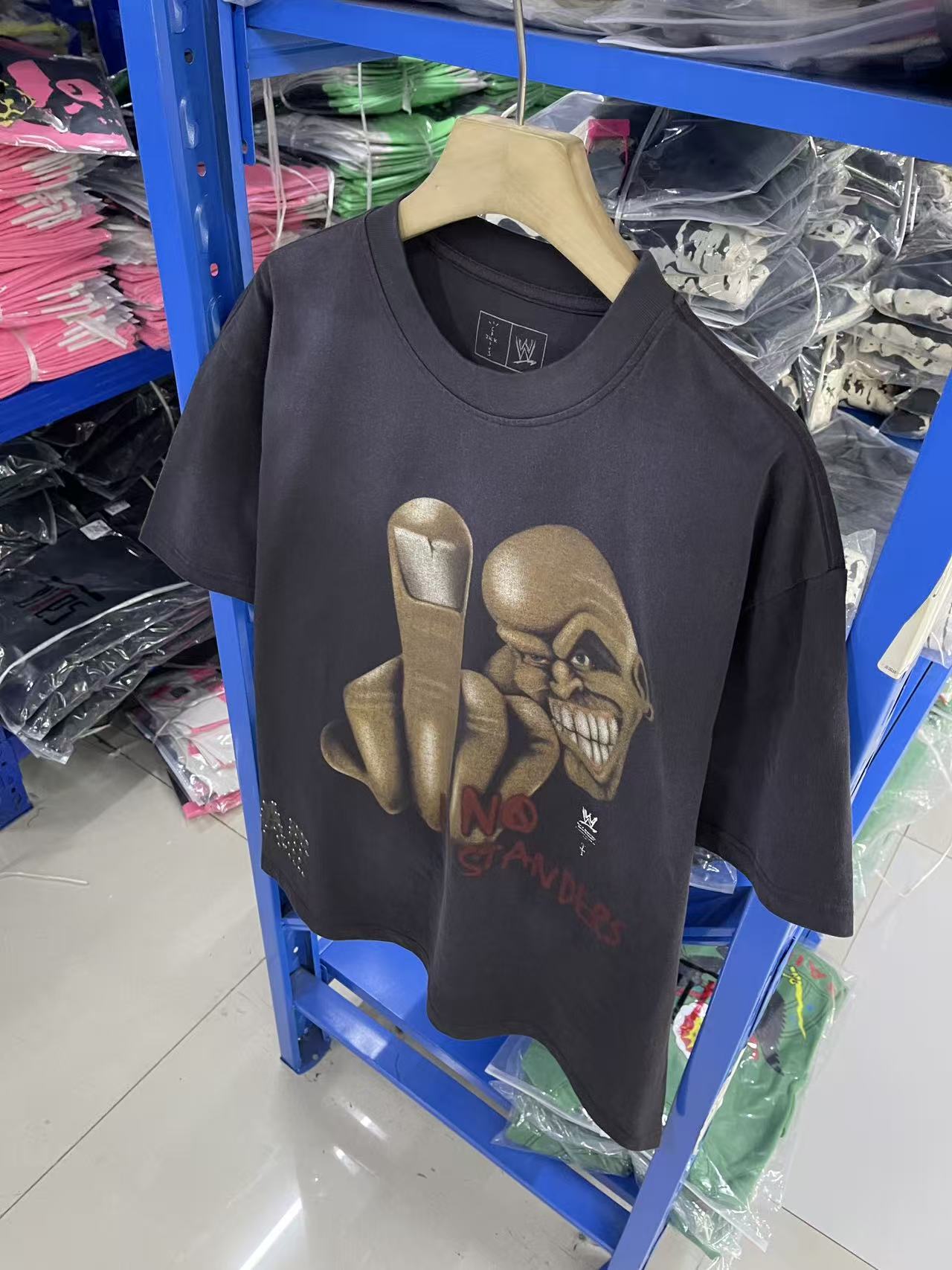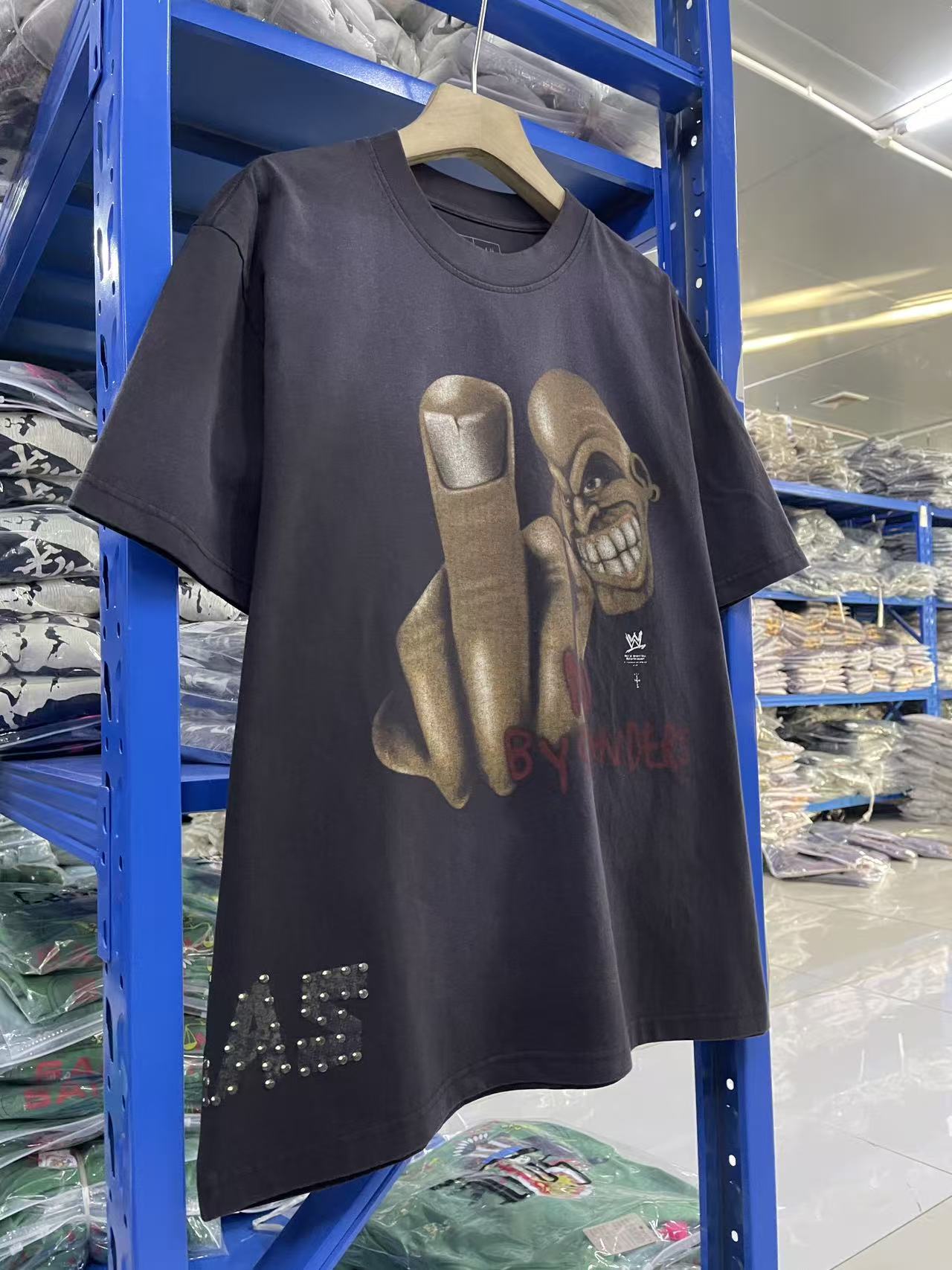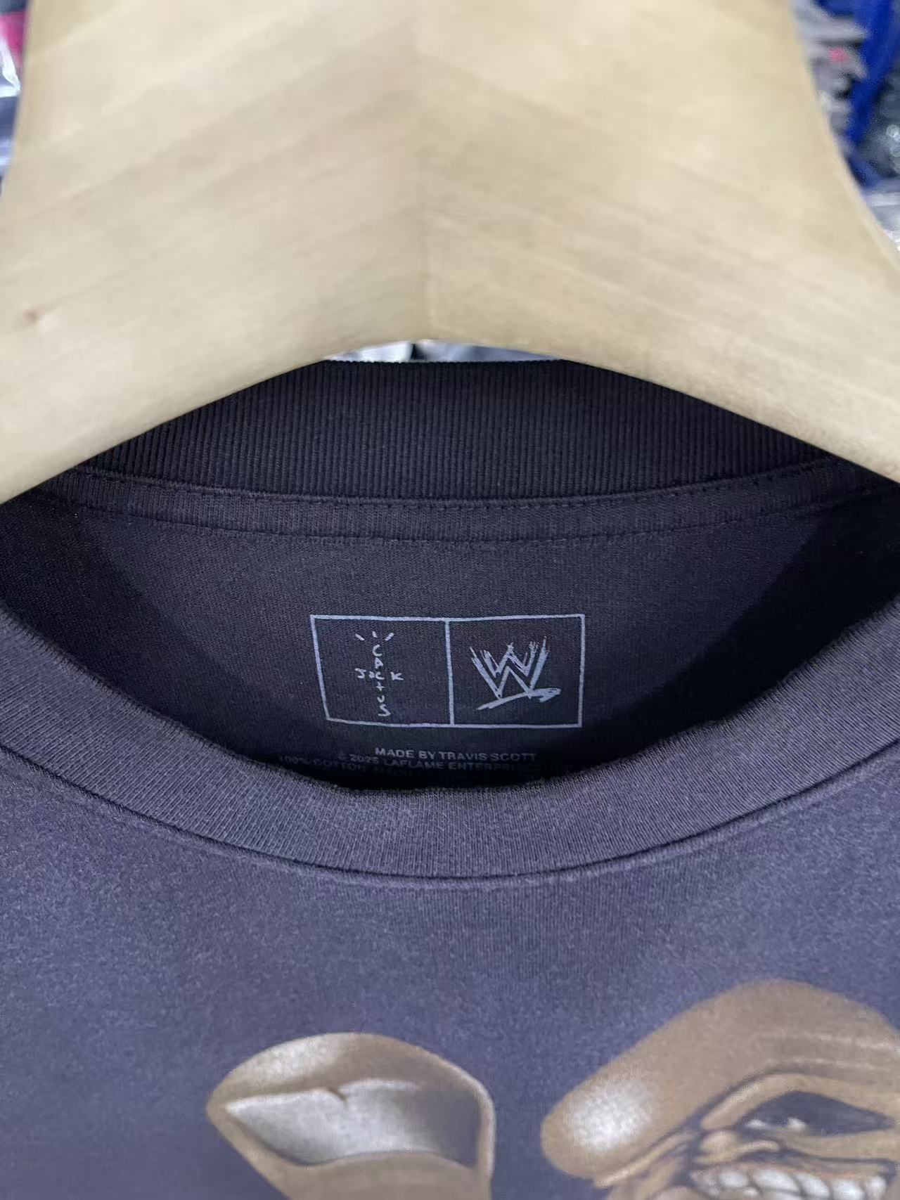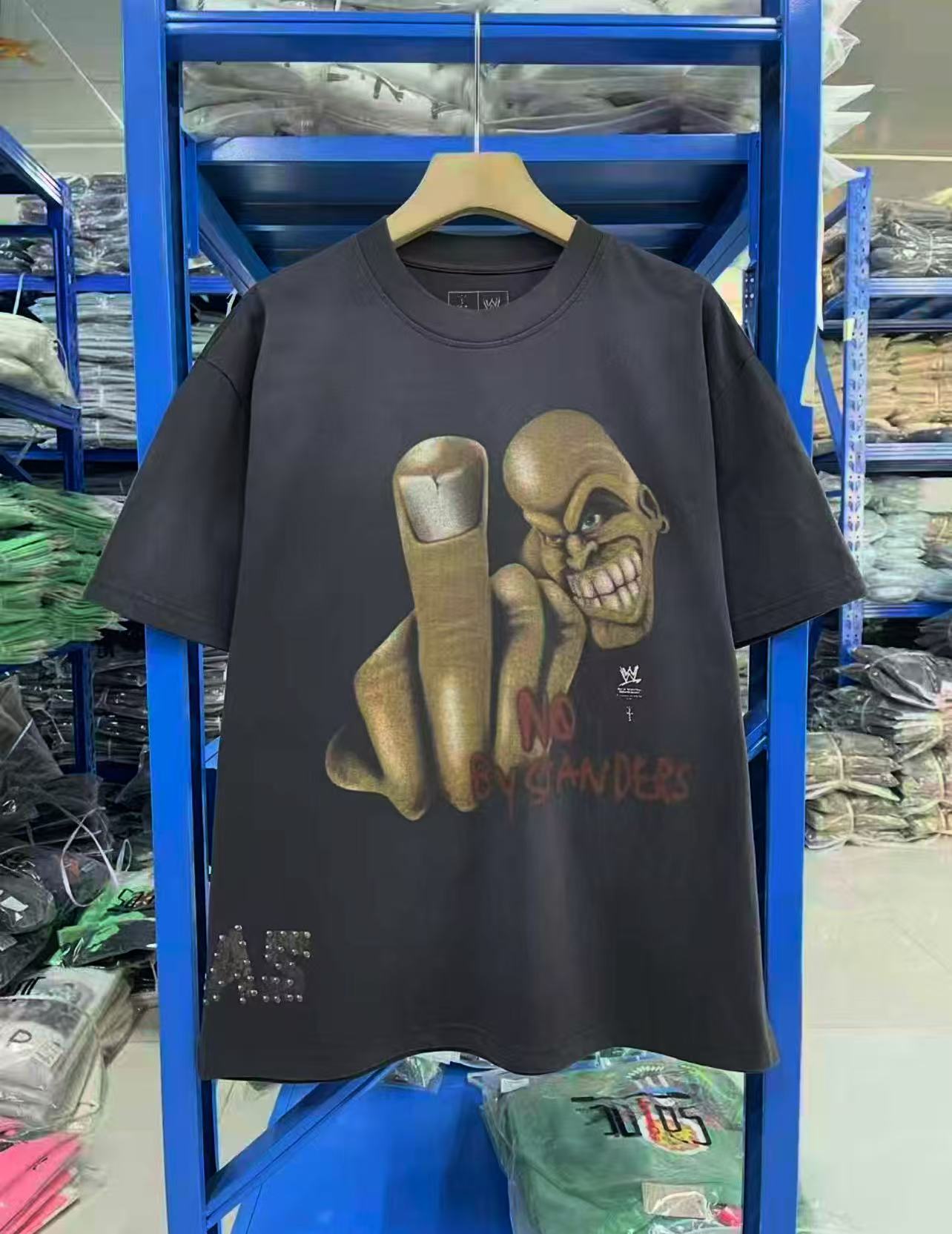 Travis Scott x WWE 联名款 SS26 人物骷髅头图案字母印花圆领休闲舒适短袖T恤