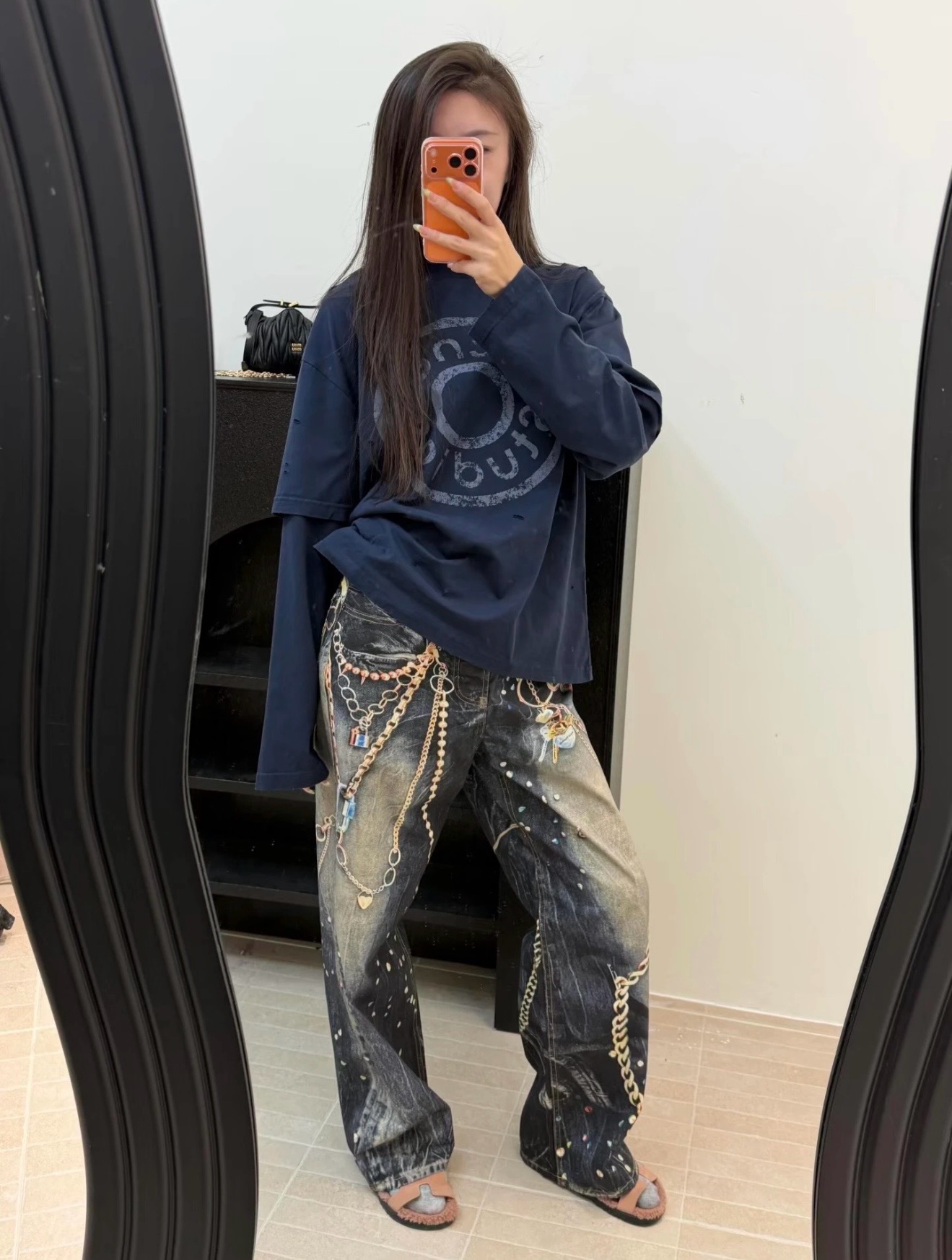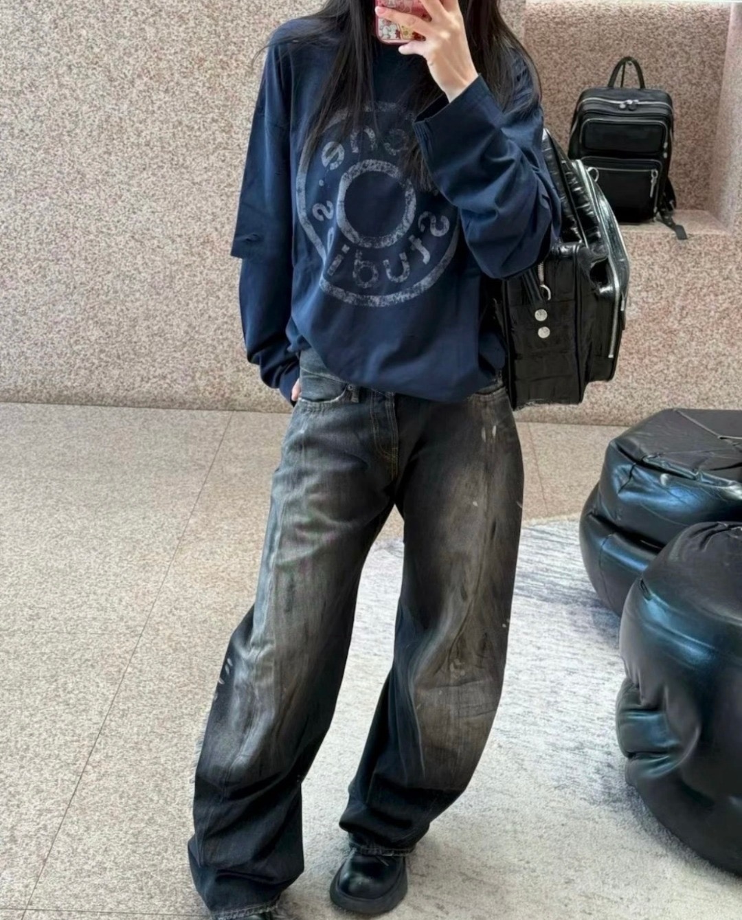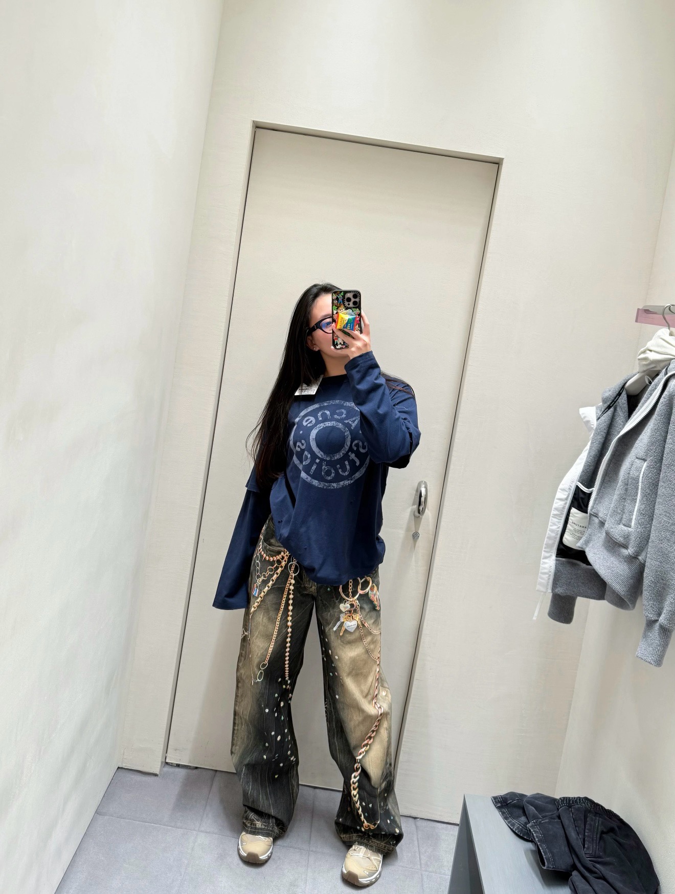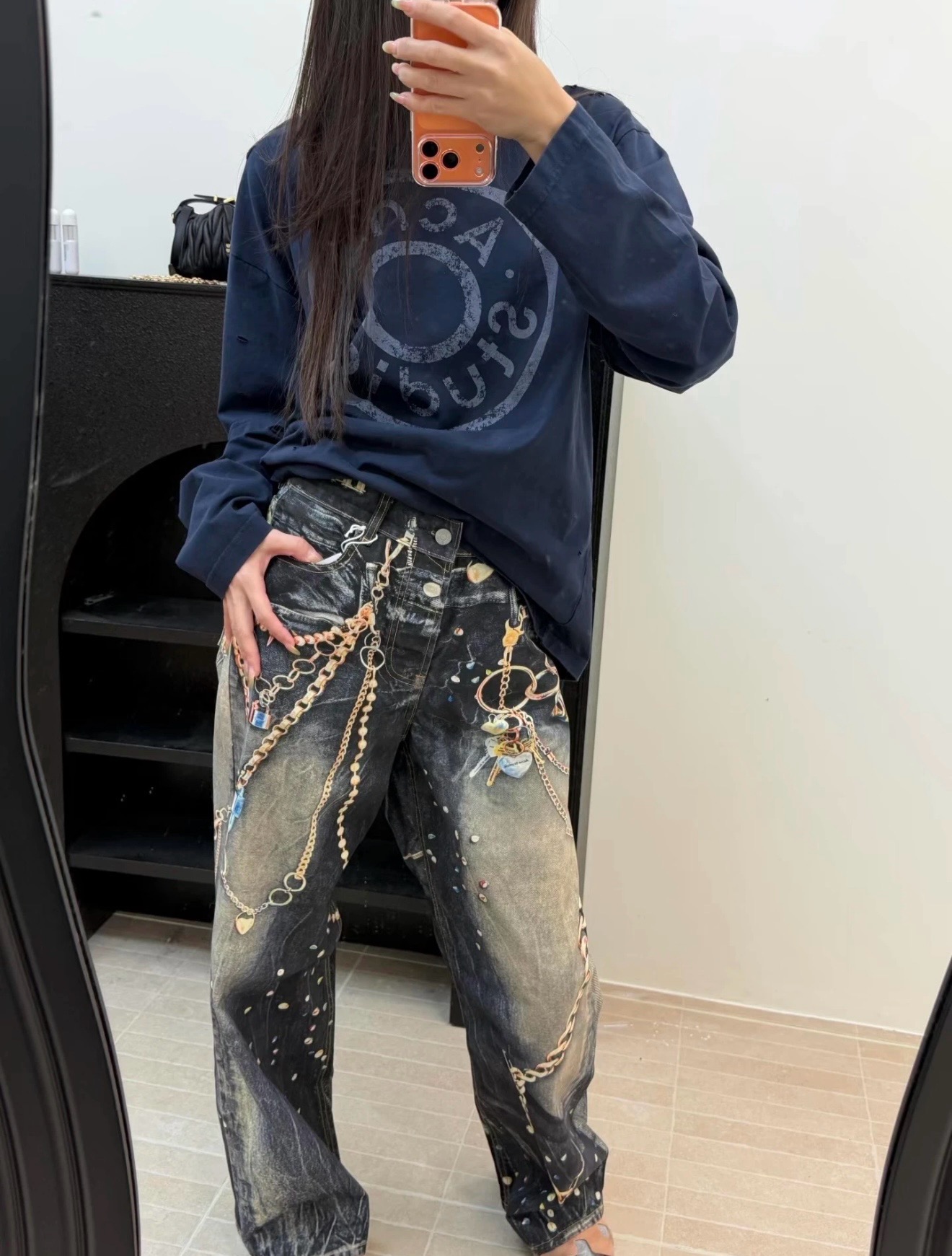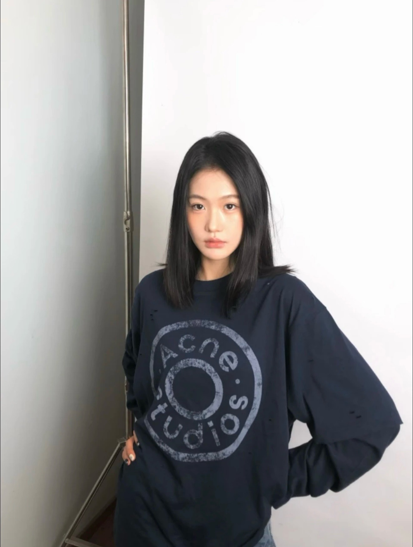 ACNE徽章破洞假两件长袖