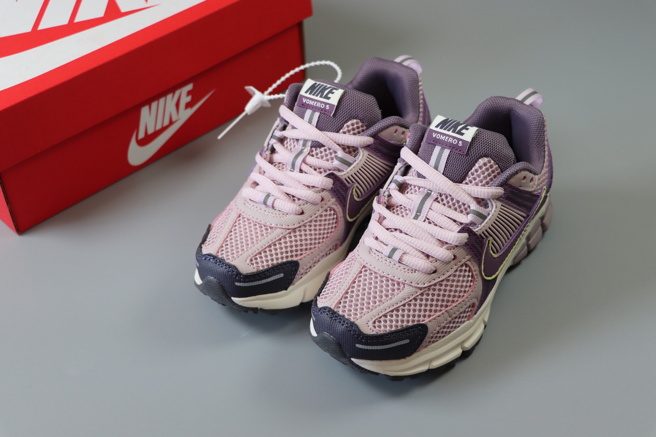 Nike Air Zoom Vomero5 童鞋定制 复古潮流运动鞋 鞋款采用多层设计 融入织物与合成材质 后跟网眼拼接和透气孔设计 轻盈透气Zoom Air缓震配置提供出色脚感