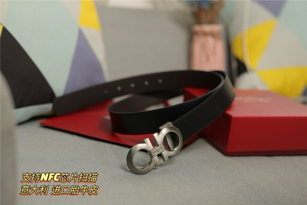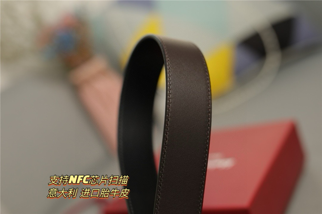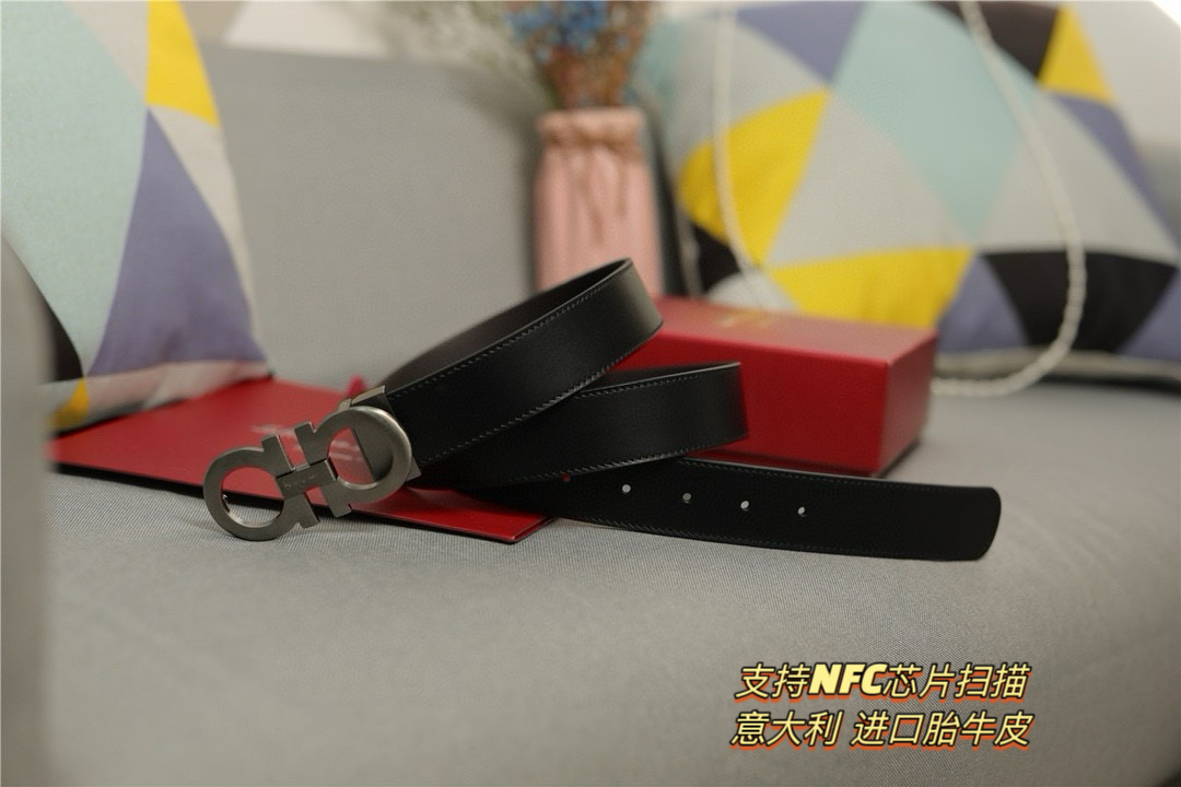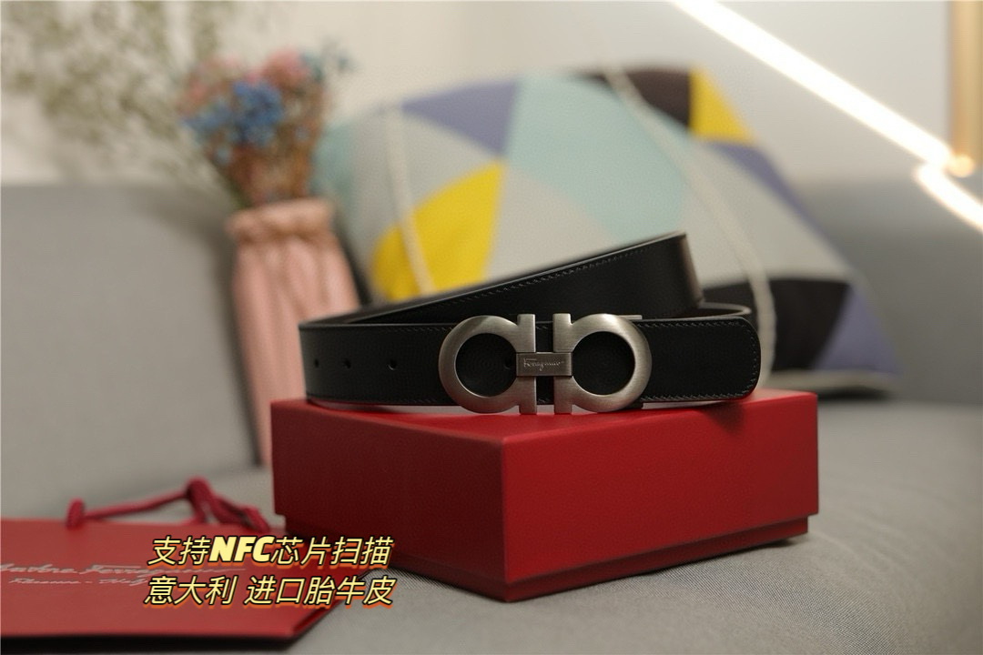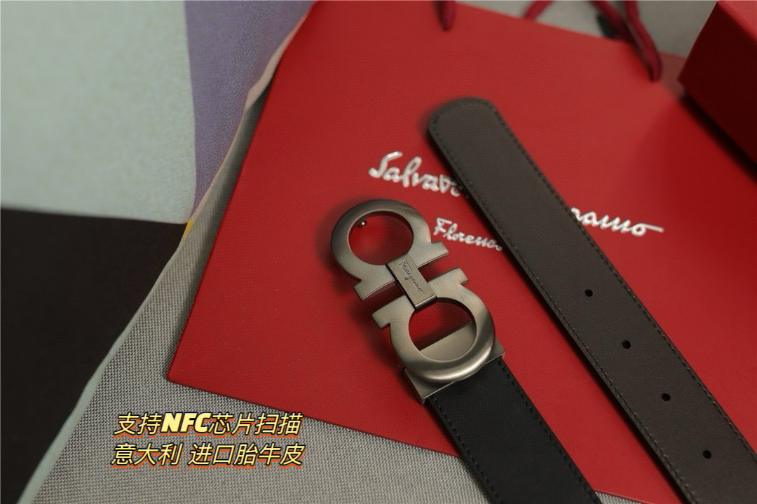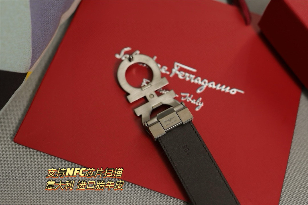 礼物首选Ferragamo菲拉格慕 皮带将摩登设计与精湛的手工技艺完美结合 打造出风格华贵典雅 实用性和款式并重 3 5cm宽 搭配最新原版真空电镀五金扣 不易掉色 奢华高贵 休闲百搭 支持NFC芯片扫描