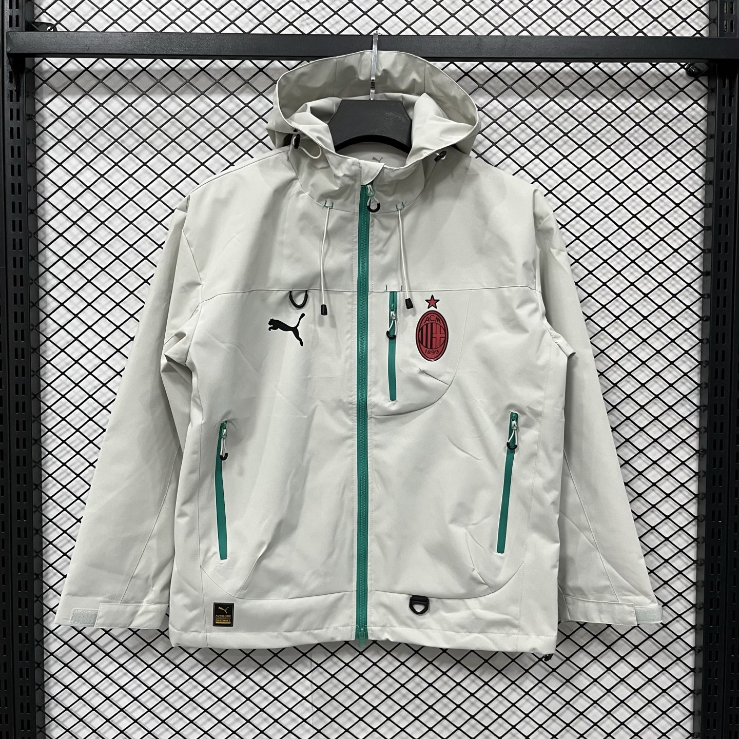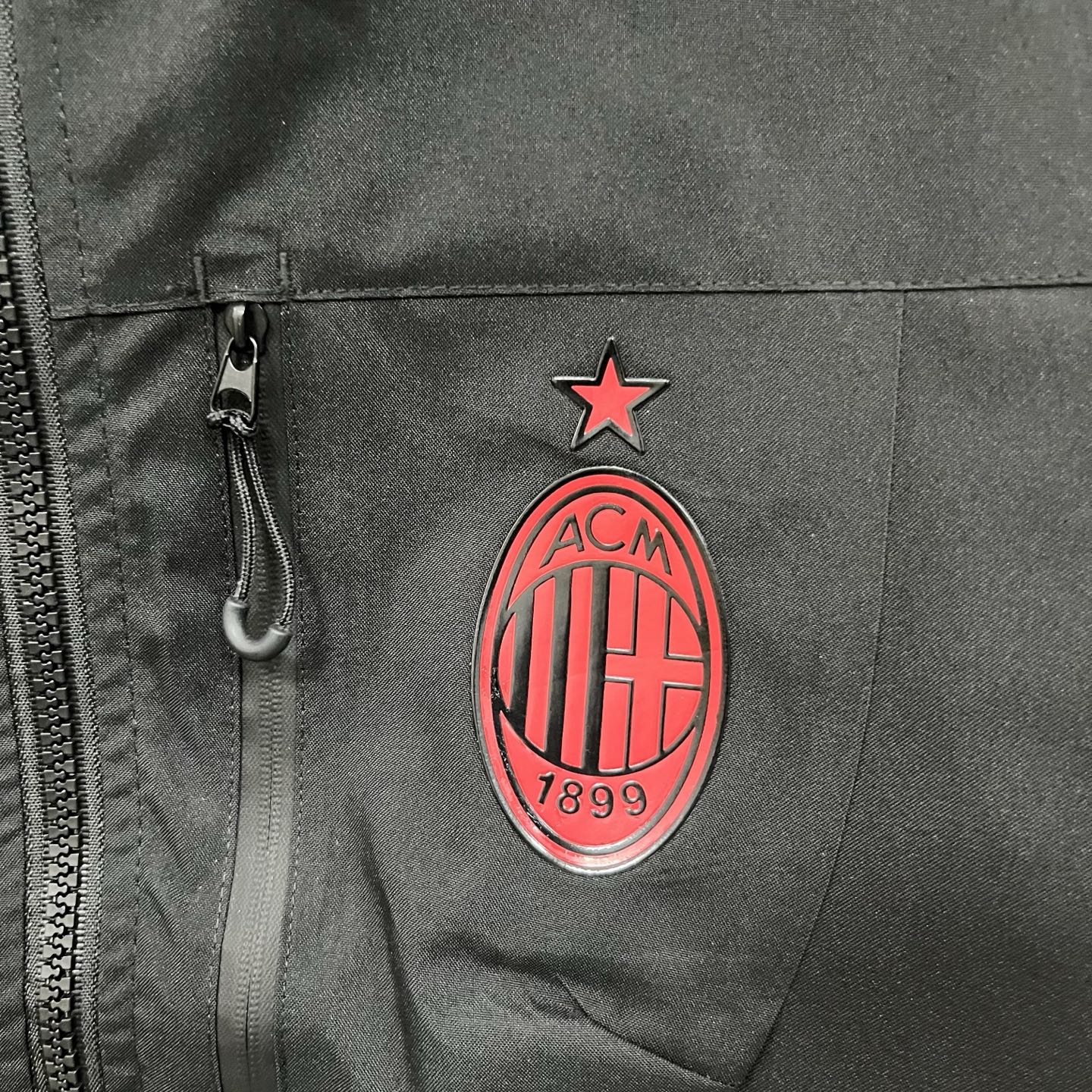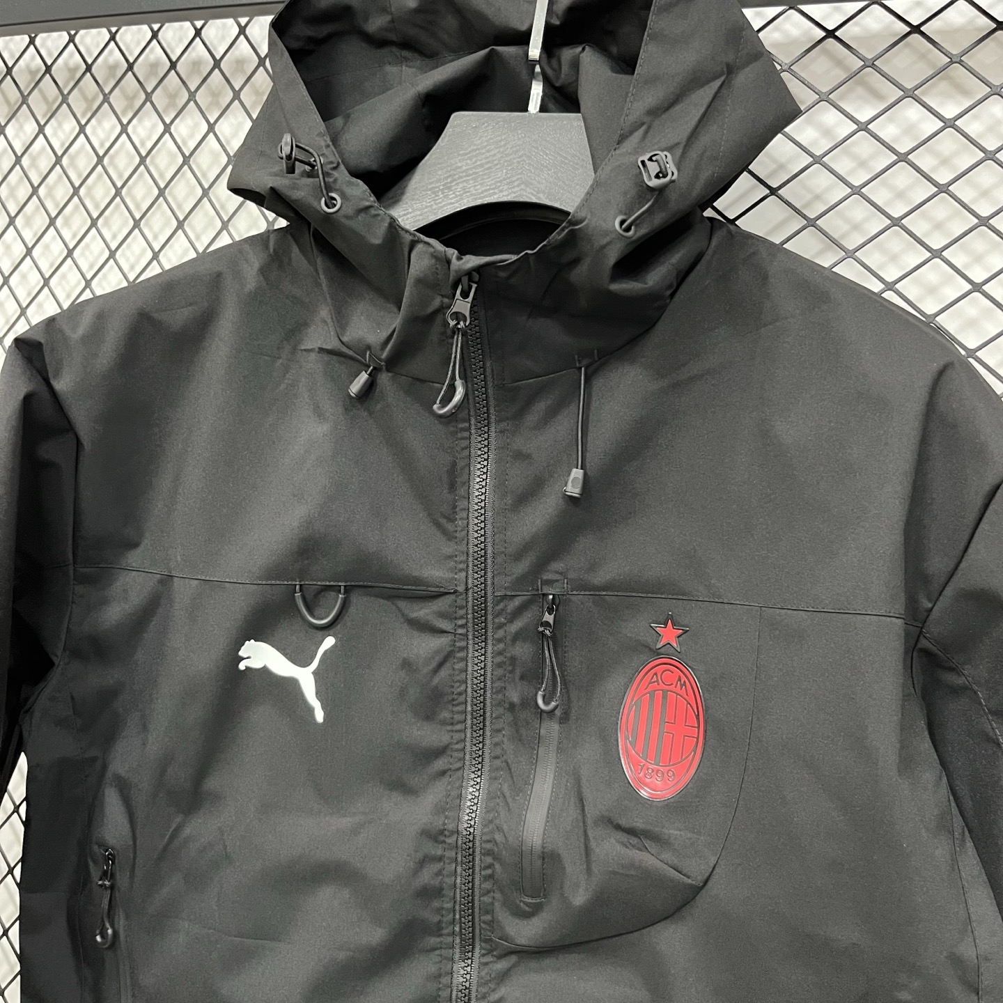 得物品质 彪马PUMA足球 AC米兰合身百搭球迷版 时尚休闲百搭连帽 SS25 防水防风冲锋衣 硅胶logo印花轻量连帽