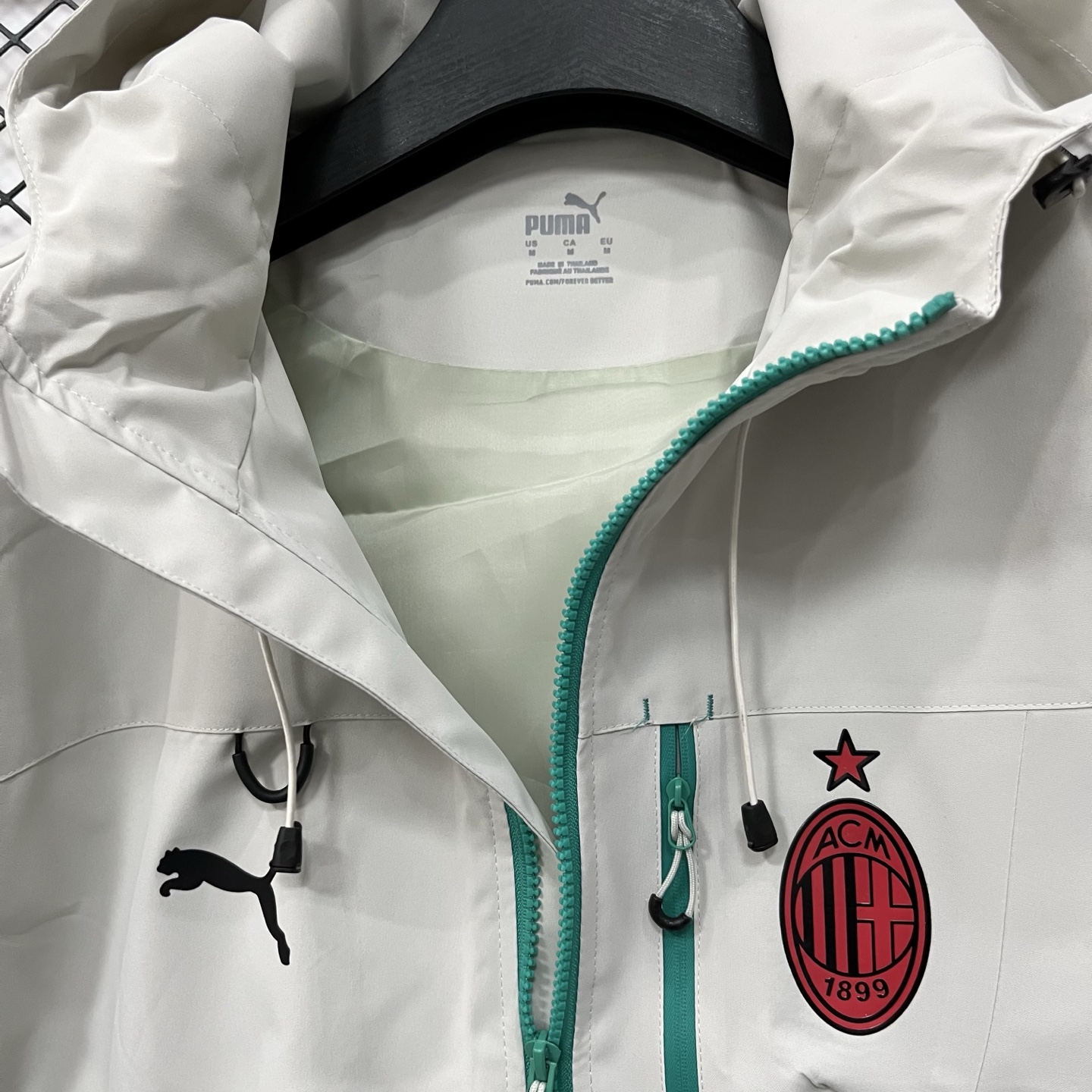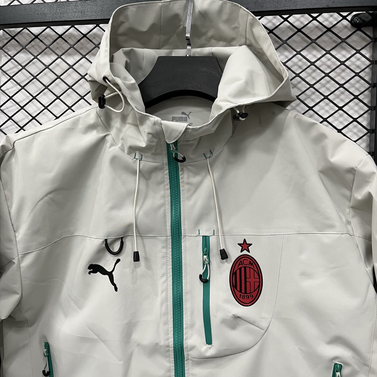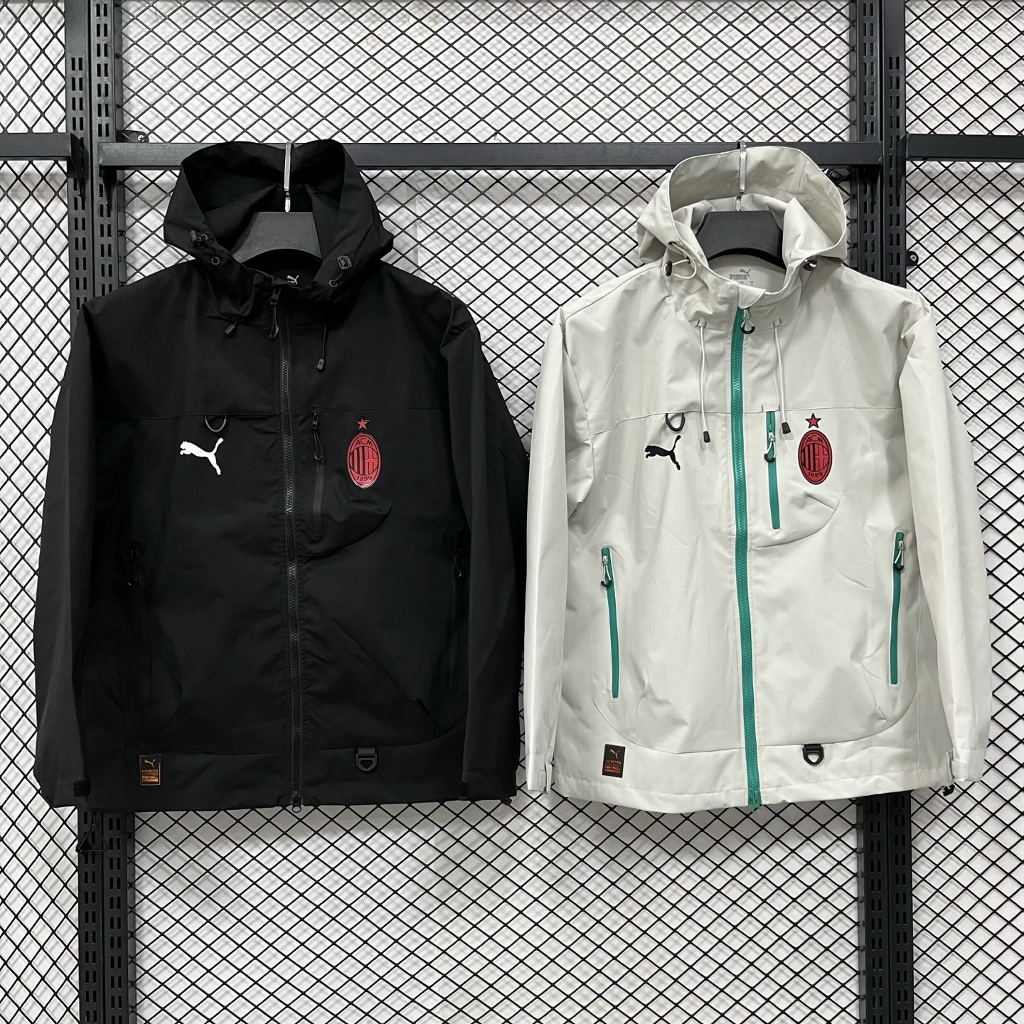 得物品质 彪马PUMA足球 AC米兰合身百搭球迷版 时尚休闲百搭连帽 SS25 防水防风冲锋衣 硅胶logo印花轻量连帽