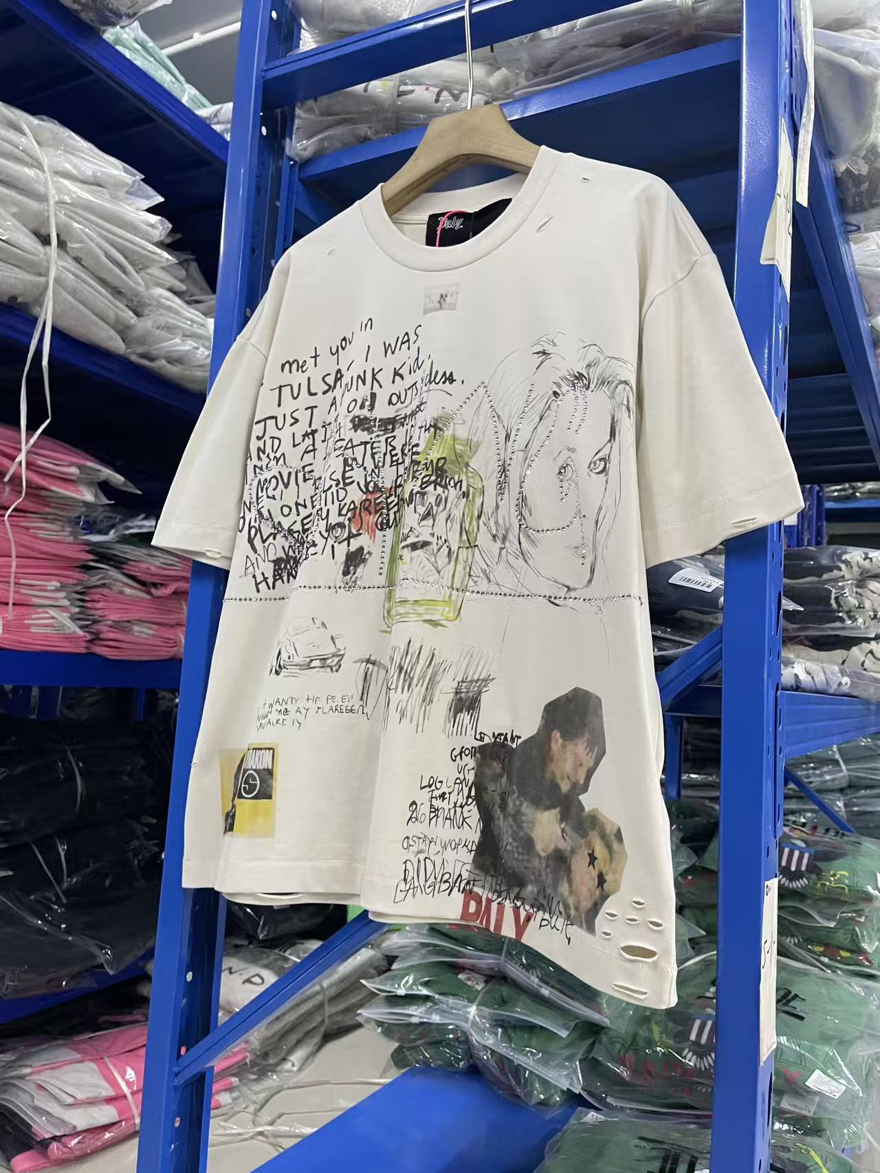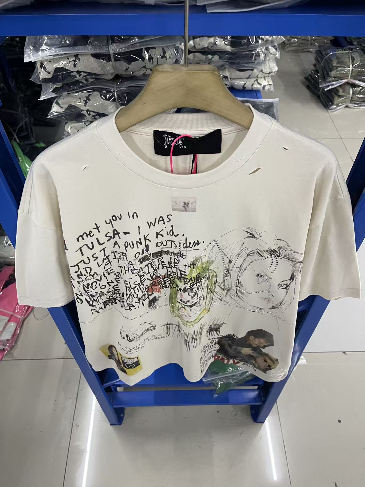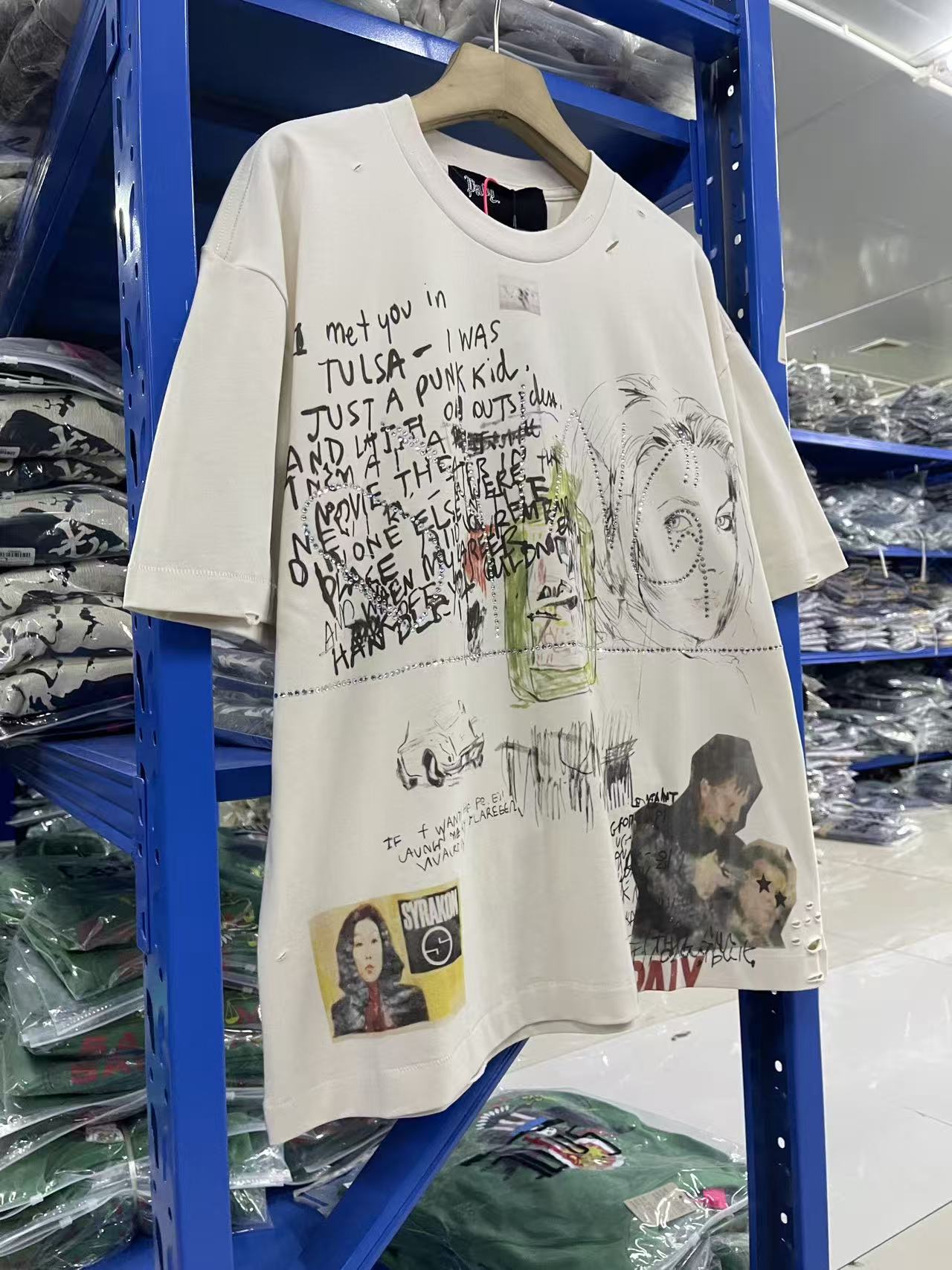 馬 现货 PH3937款 杏色 paly hollywood 26SS I met you in TULSA I was just a punk kid 涂鸦印花图案洗水做旧T恤 码数S M L XL