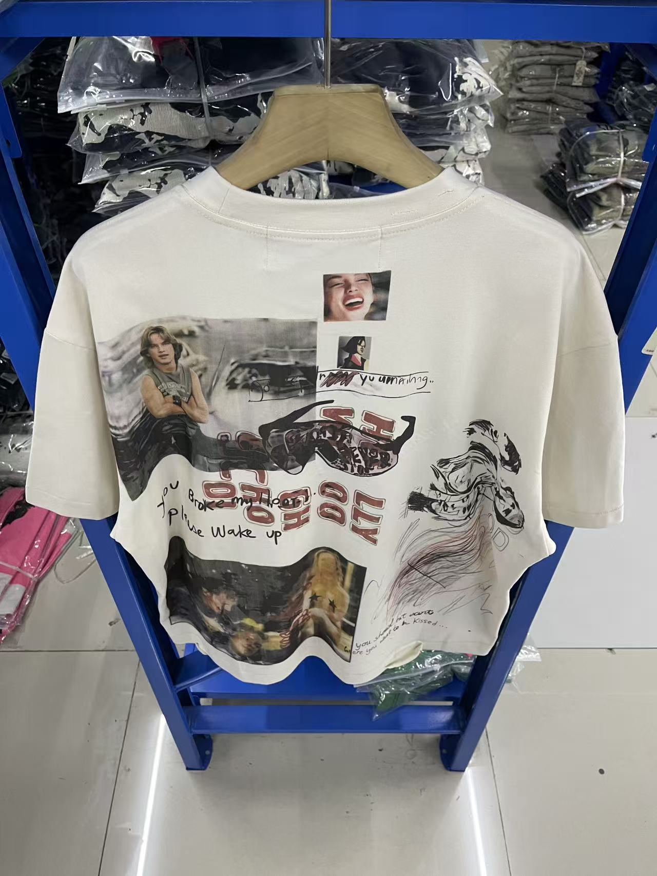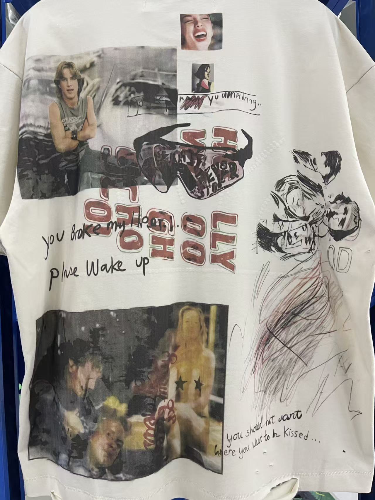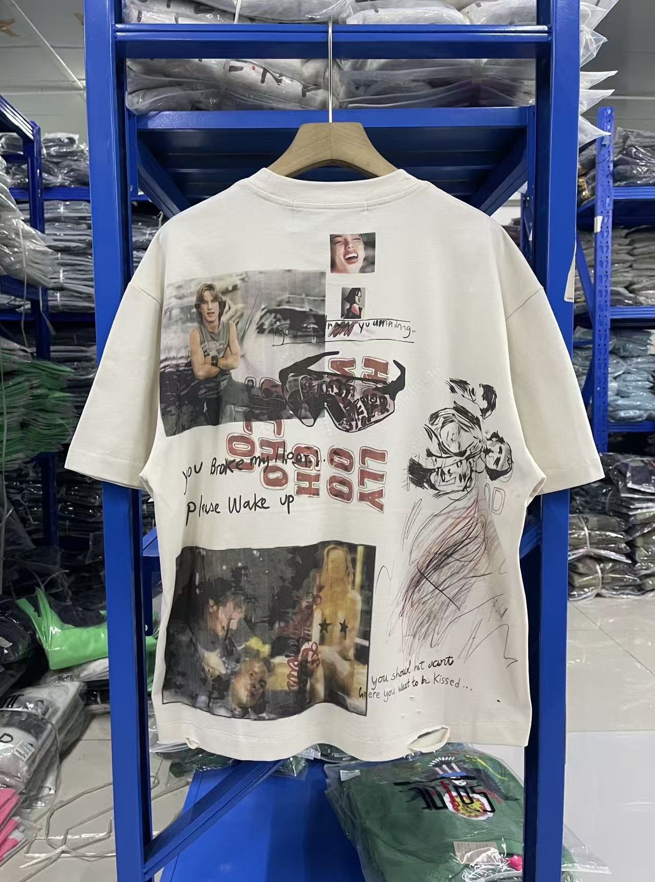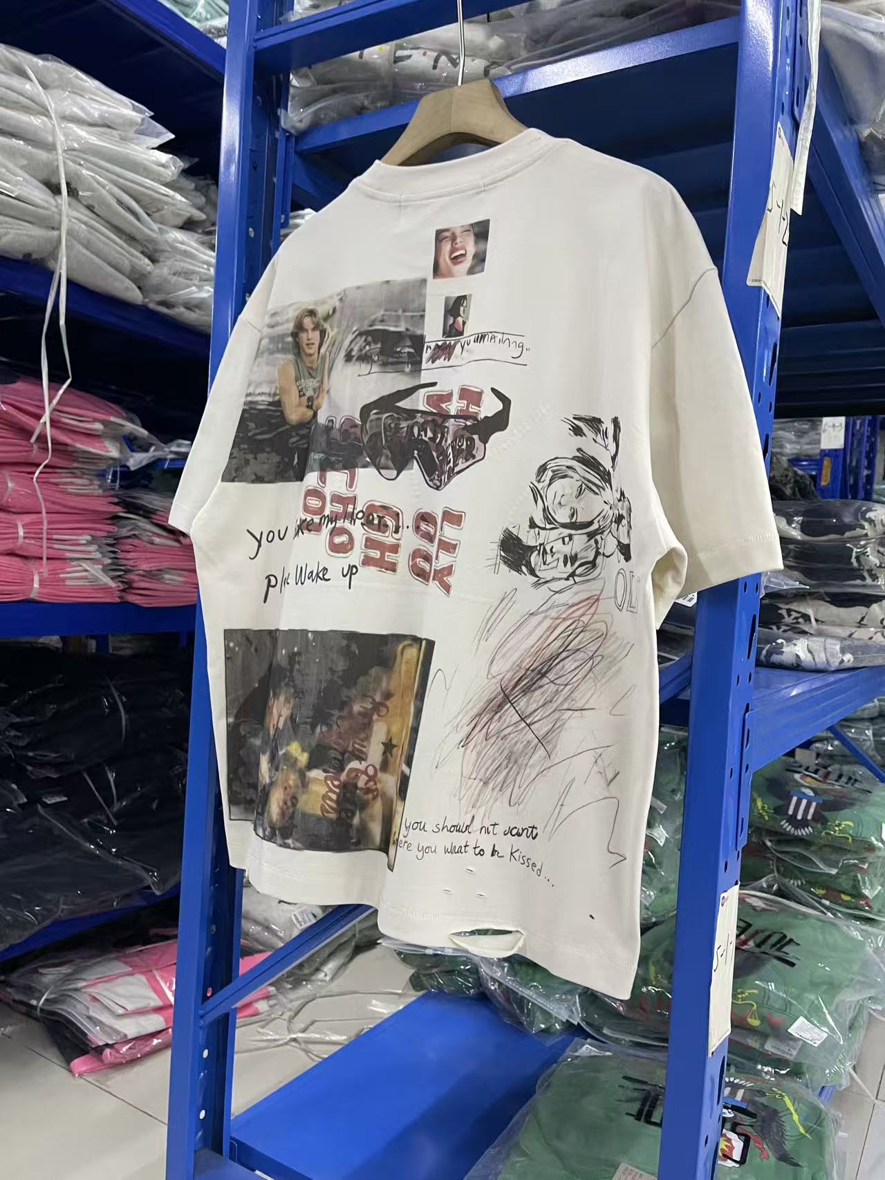 馬 现货 PH3937款 杏色 paly hollywood 26SS I met you in TULSA I was just a punk kid 涂鸦印花图案洗水做旧T恤 码数S M L XL
