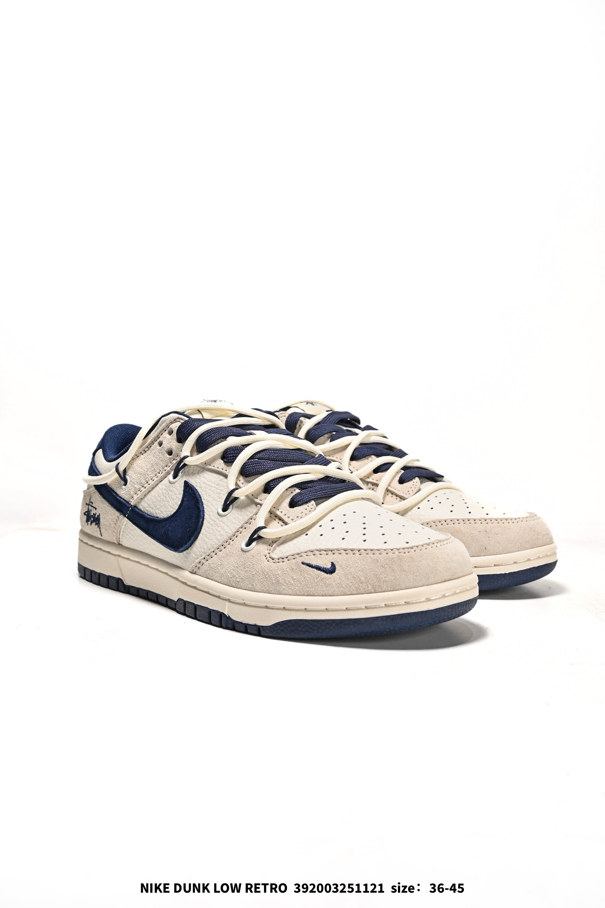 公司级 耐克 Nike Dunk Low Retro 运动鞋复古解构绑带板鞋 双鞋带 路易威登联名 作为 80 年代经典篮球鞋款 起初专为硬木球场打造 后来成为席卷街头的时尚标杆 现以经典细节和复古篮球风范再次归来 皮革与合成材质组合鞋面 经久耐穿 柔软非凡 泡绵中底 缔造轻盈回弹的缓震效果 橡胶外底搭配圆形支点设计 铸就非凡抓地力 尽显经典风范 从篮板到滑板 Nike Dunk 的影响力毋庸置疑 尽管 1985 年以篮球鞋形式亮相 但其平整而具有抓附力的鞋底闯入了滑板运动员的视野 堪称滑板鞋的理想之选 几十年来 Dunk 不断直击全球各地滑板手的灵魂 推出不计其数的配色方案 追求创造力和功能性兼得的理想境界 彰显亚文化风采