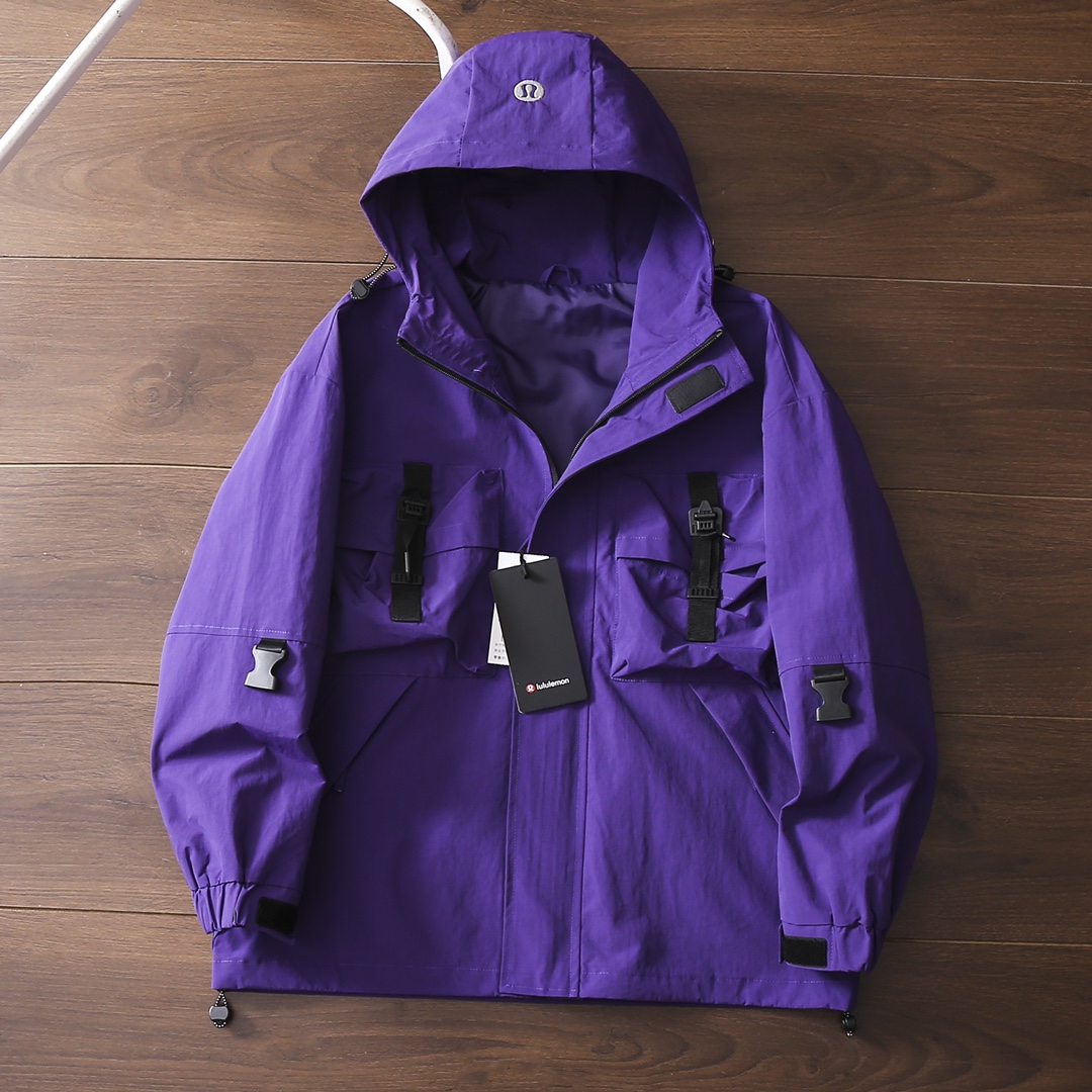 严选好货 lululemon新款男女连帽工装冲锋衣夹克外套 户外休闲都可驾驭 客供科技尼龙防风防水面料 多口袋3D立体裁剪 能装实用 双层拉链魔术贴门襟 帽檐小标logo刺绣 精致饱满 内里卡扣背带 帽檐 下摆松紧调节 做工细节都无可挑剔 上身效果一级棒 可配情侣 喜欢的不要错过 颜色 黑色 卡其色 紫色 尺码 S一3XL