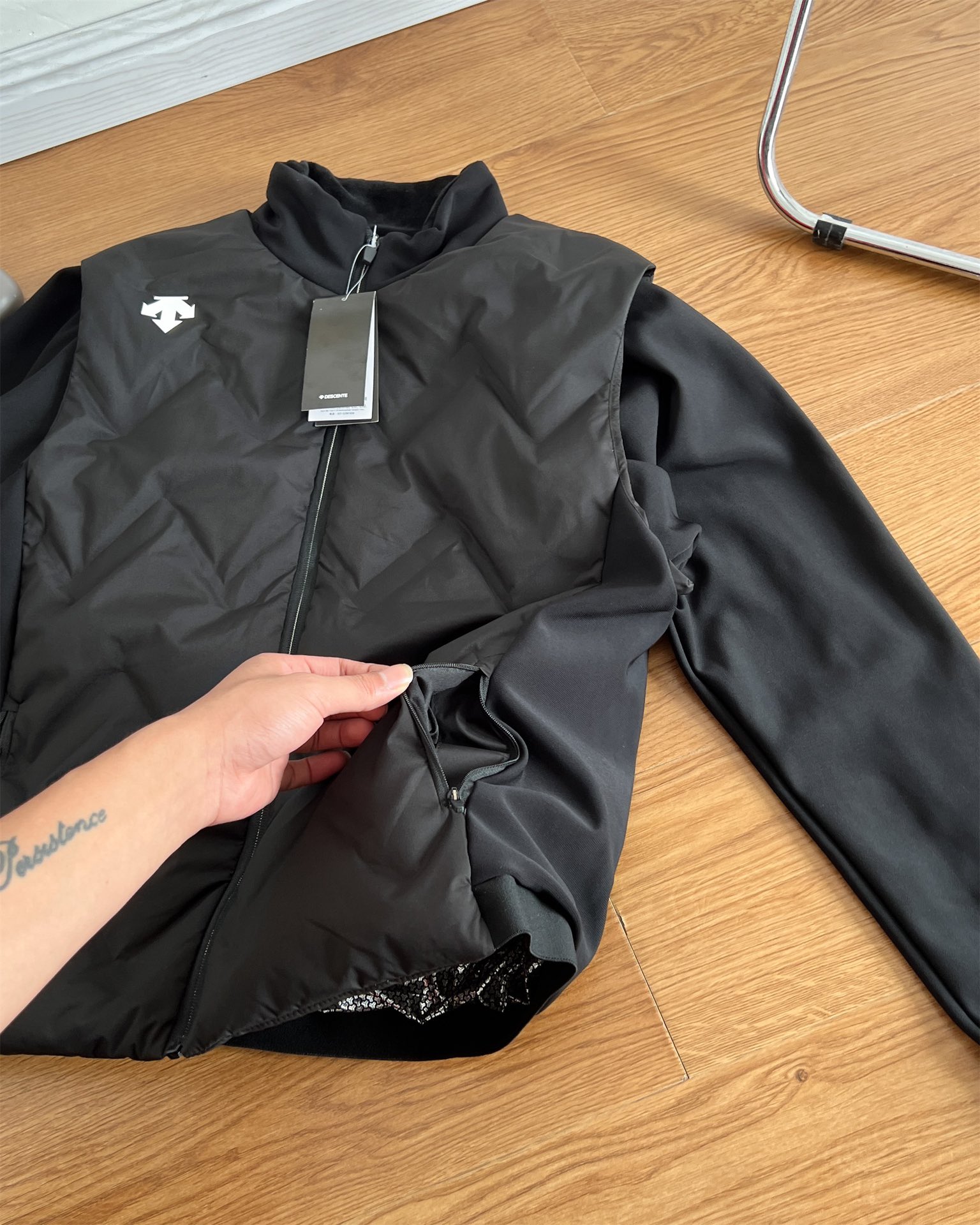 袖子采用360克新氧棉内里银狐绒面料 手感非常舒服 亲肤 结合高密度里衬质地紧密 防风放冷效果佳 跨度整个秋冬季 能够有效的锁温聚温
