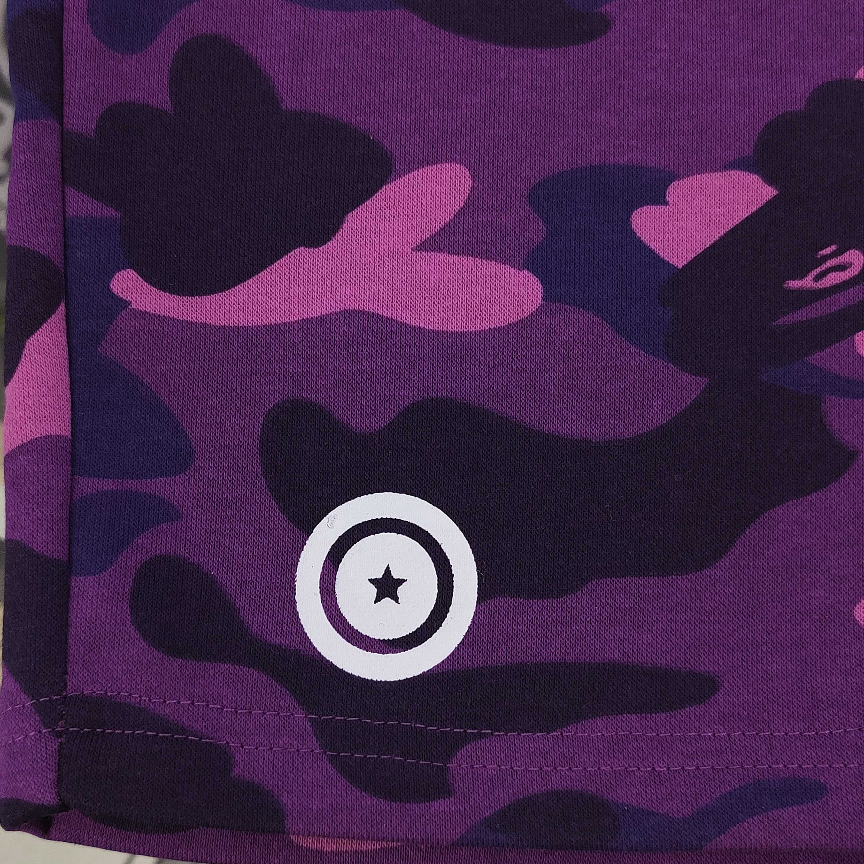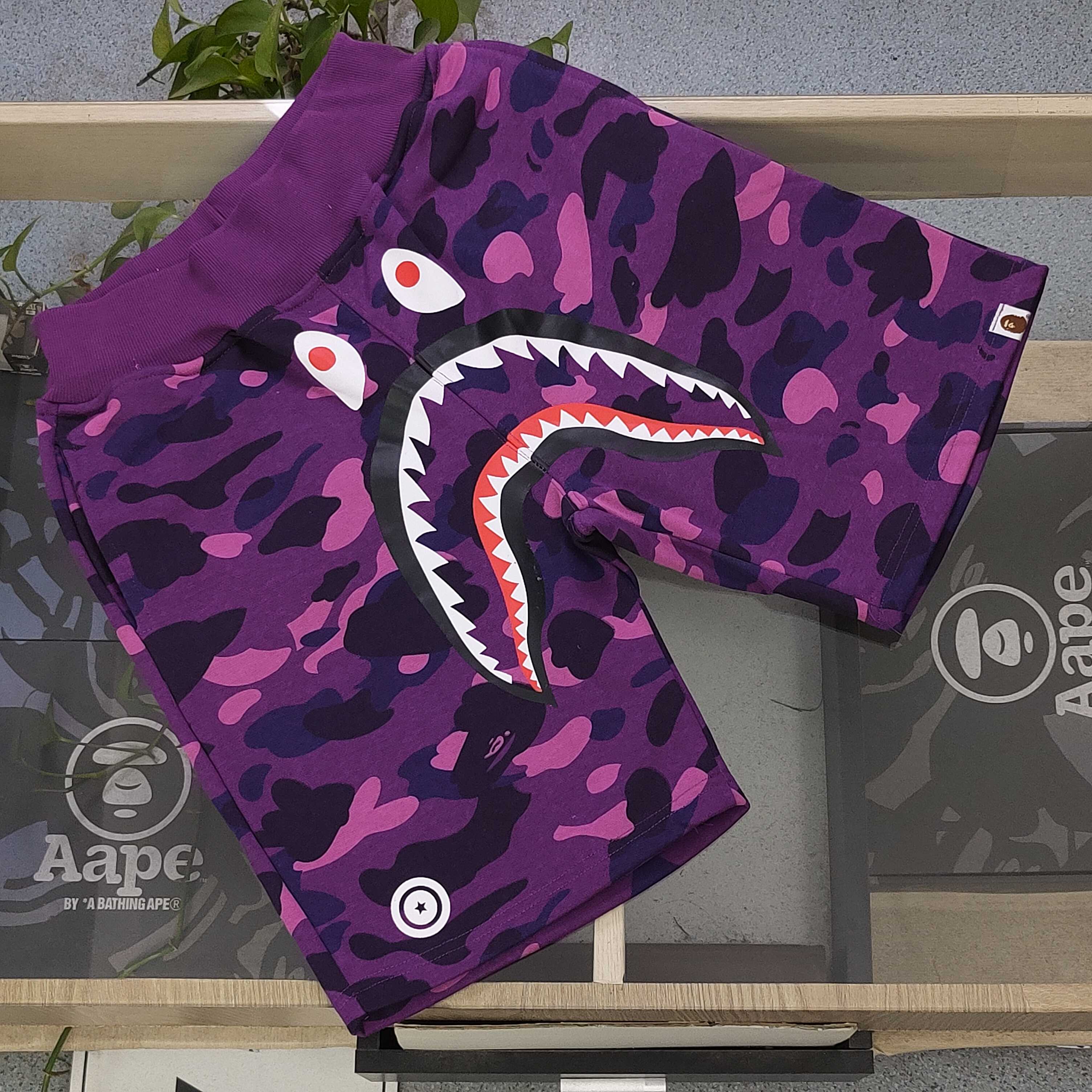 2025新款Bape猿人头联名鲨鱼ABC大迷彩图案logo休闲情侣毛圈短裤五分裤 潮人出街 怎能少了这款吸睛神器 迷彩交织 碰撞出不羁的时尚火花 搭配正面霸气侧漏的鲨鱼嘴图案 红齿白目 张力十足 每一针每一线都在诉说着独特与个性 浅蓝裤腰设计 舒适与潮流兼具 穿上它 即刻化身街头焦点 轻松驾驭潮流风向 释放属于你的独特魅力 让每一步都踏响时尚的鼓点 男女同款