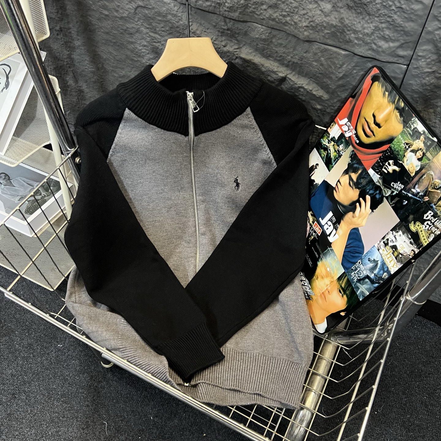 RALPH LAUREN 拉夫劳伦 RL Vintage中古经典战马小标刺绣拉链毛衣外套