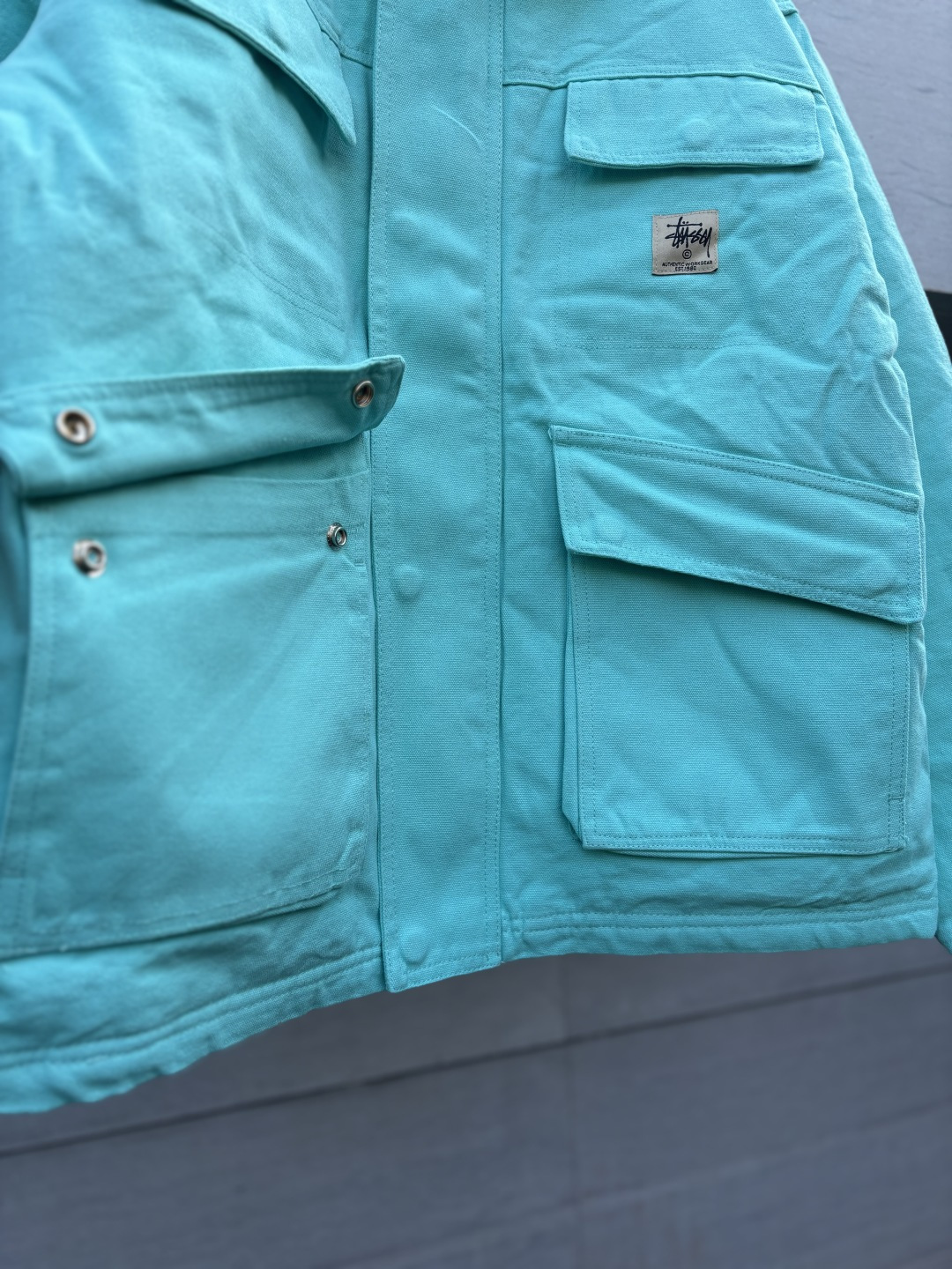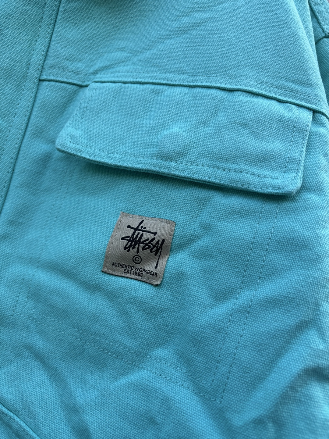 全棉斜纹面的帆布质地结合符合潮人街头的春秋搭配需求精细饱满厚实的造型灵感启发来自于𝘀𝘁𝘂𝘀𝘀𝘆不同时期的文化体现左胸前小标设计是点睛之笔所有辅料定制还原度完美 两次水洗造价不菲完美做旧如此个性鲜明的色彩与设计必定成为时尚先锋和潮流达人狂热追求的单品情侣款推荐