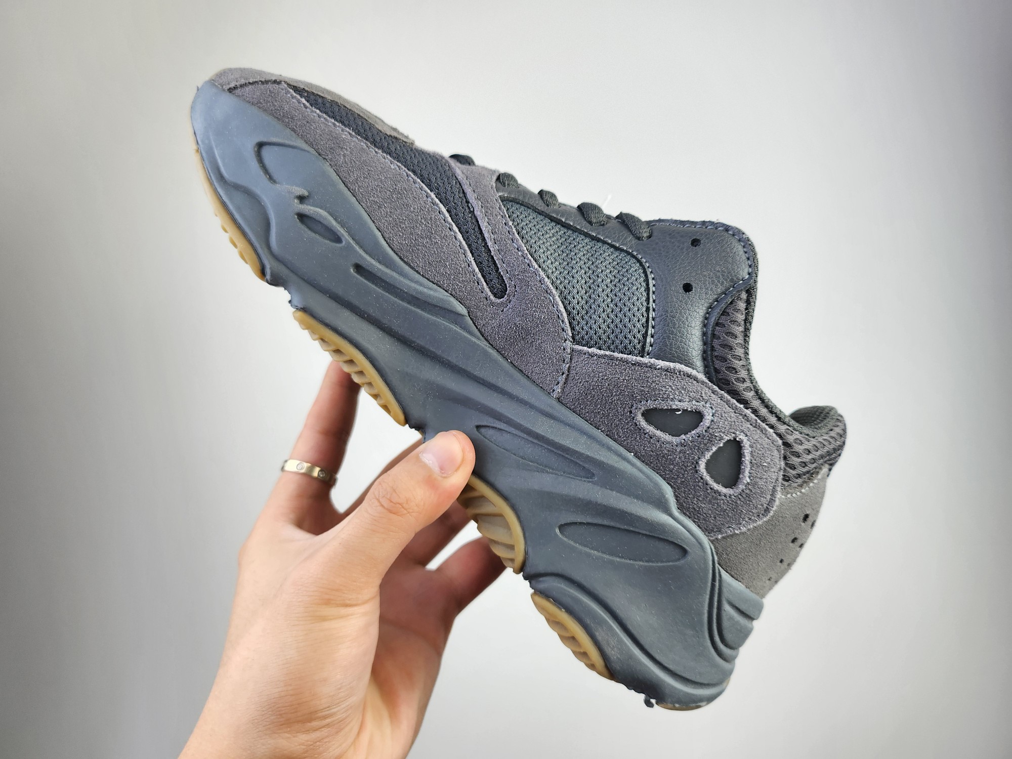 采用麂皮 皮革 网布三种材质组成 鞋面置有反光元素 鞋身非常纯粹 轮廓十分复古优雅 YEEZY BOOST 700的鞋底厚度提升了不少 因为中底藏有全掌Boost科技加持 提供了舒适的脚感