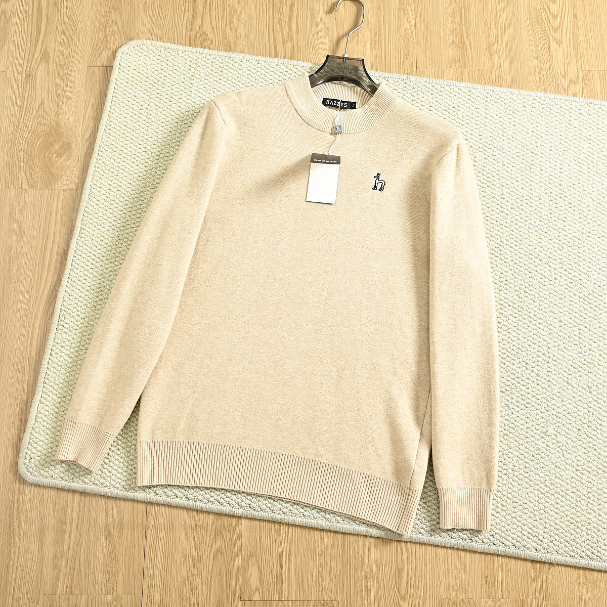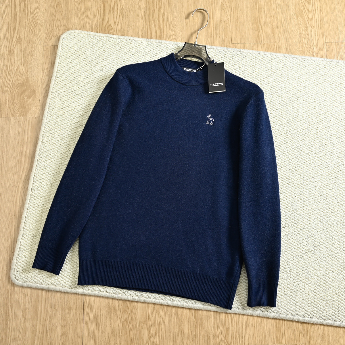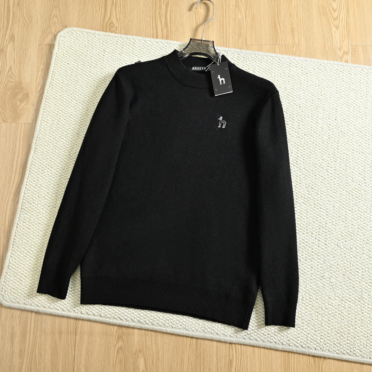 hazzys哈吉斯2025秋冬新款男款刺绣小狗水貂绒圆领打底毛衣