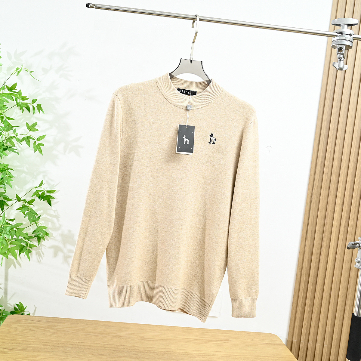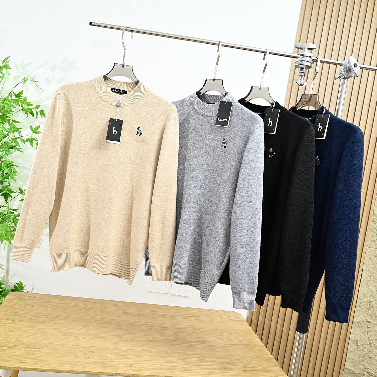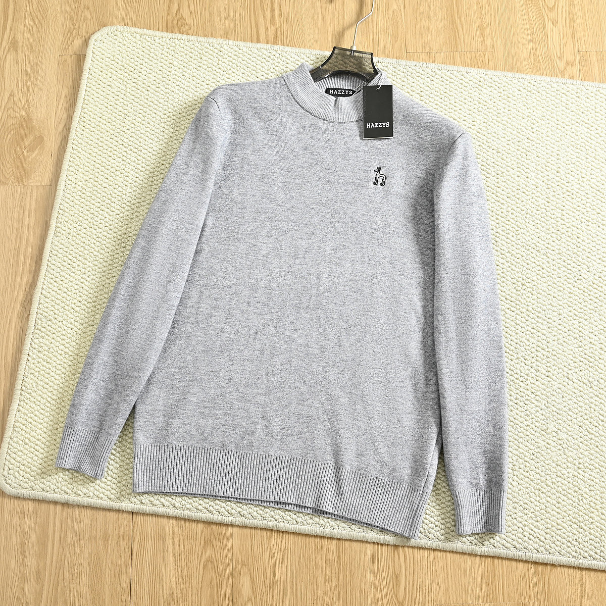 hazzys哈吉斯2025秋冬新款男款刺绣小狗水貂绒圆领打底毛衣